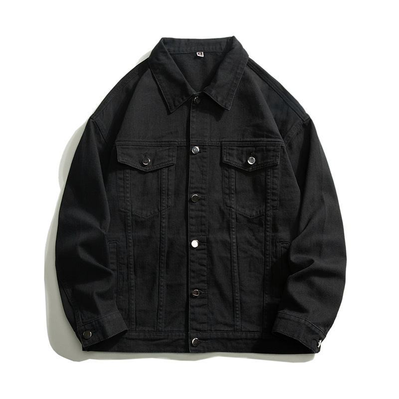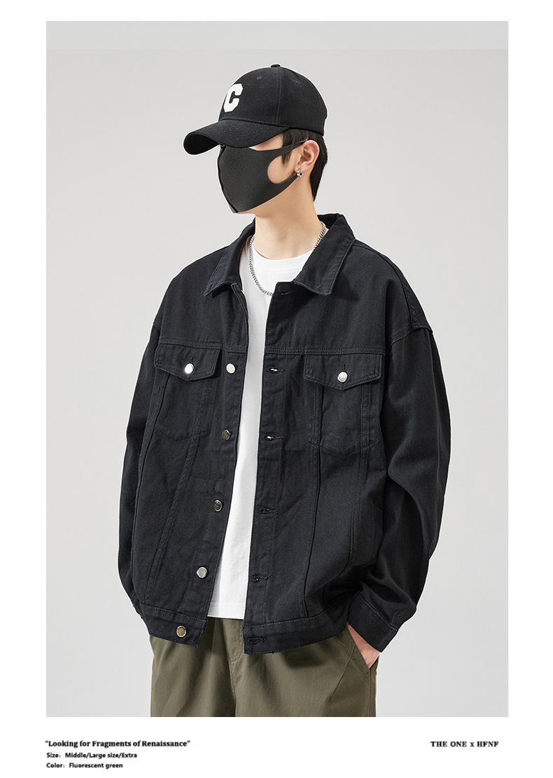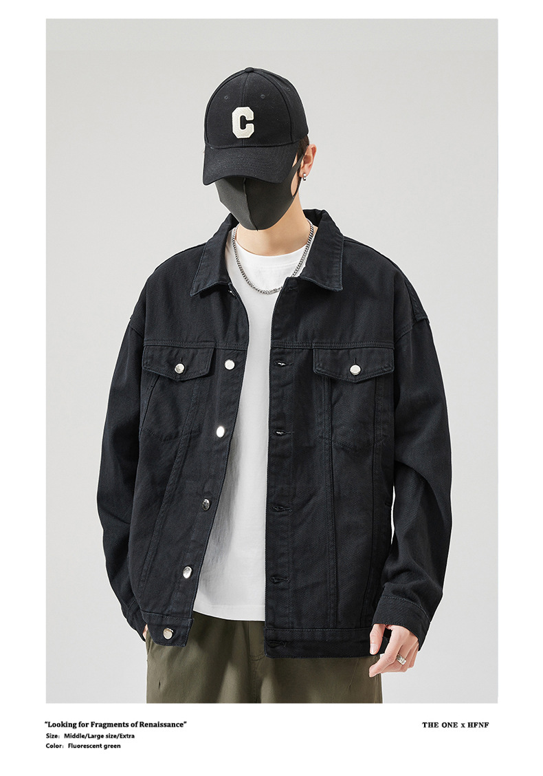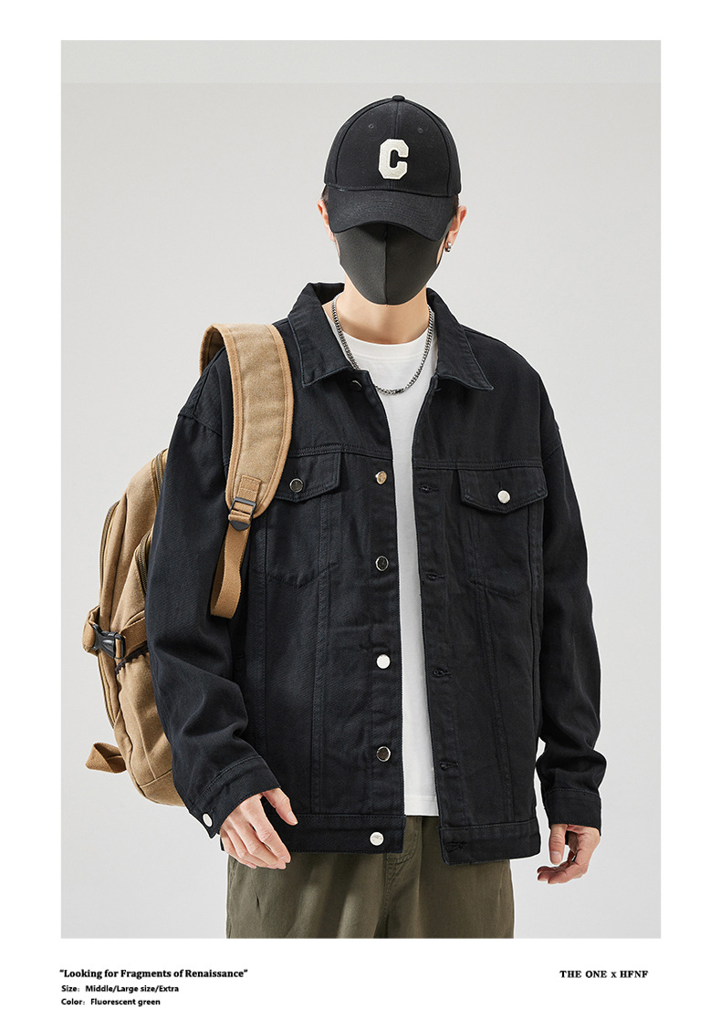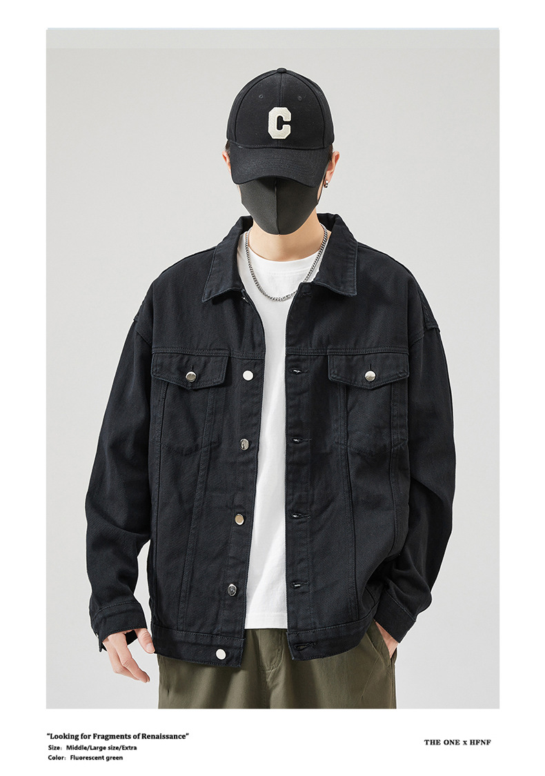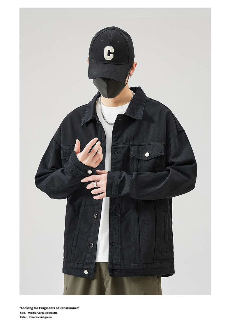 Muqiu 남성복 ∠ 트렌디 브랜드 단색 천 캐주얼 데님 자켓 남성용 아메리칸 스타일 루즈한 플러스 사이즈 모든 매치 탑 재킷스토어 가기