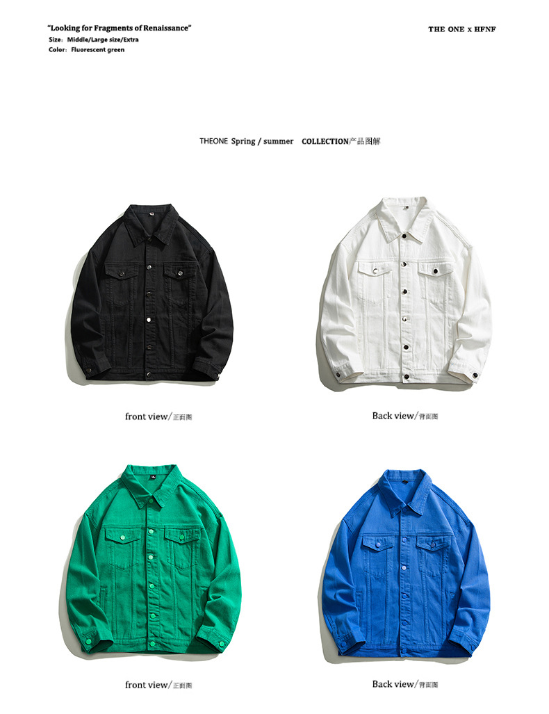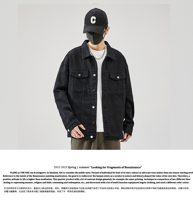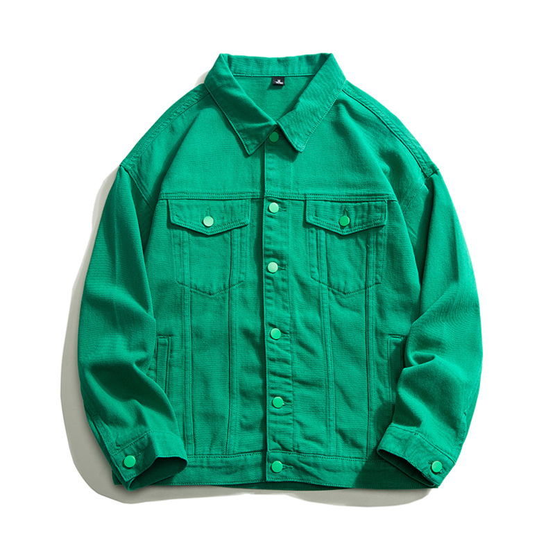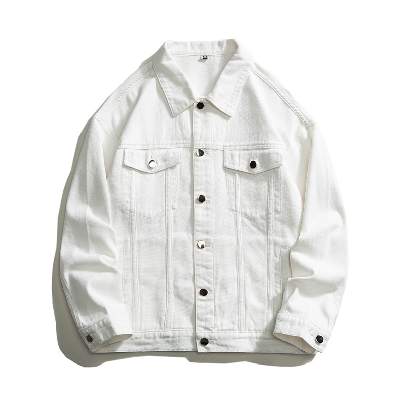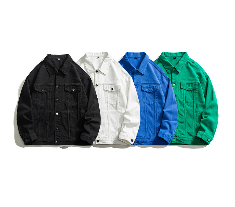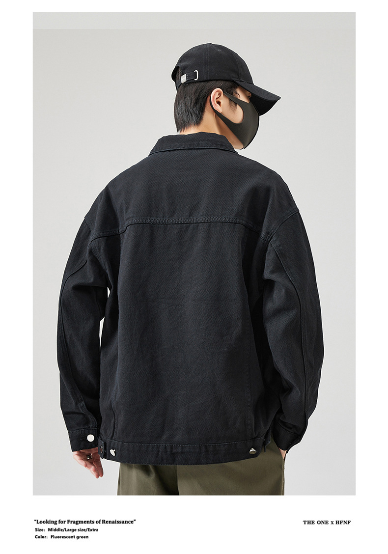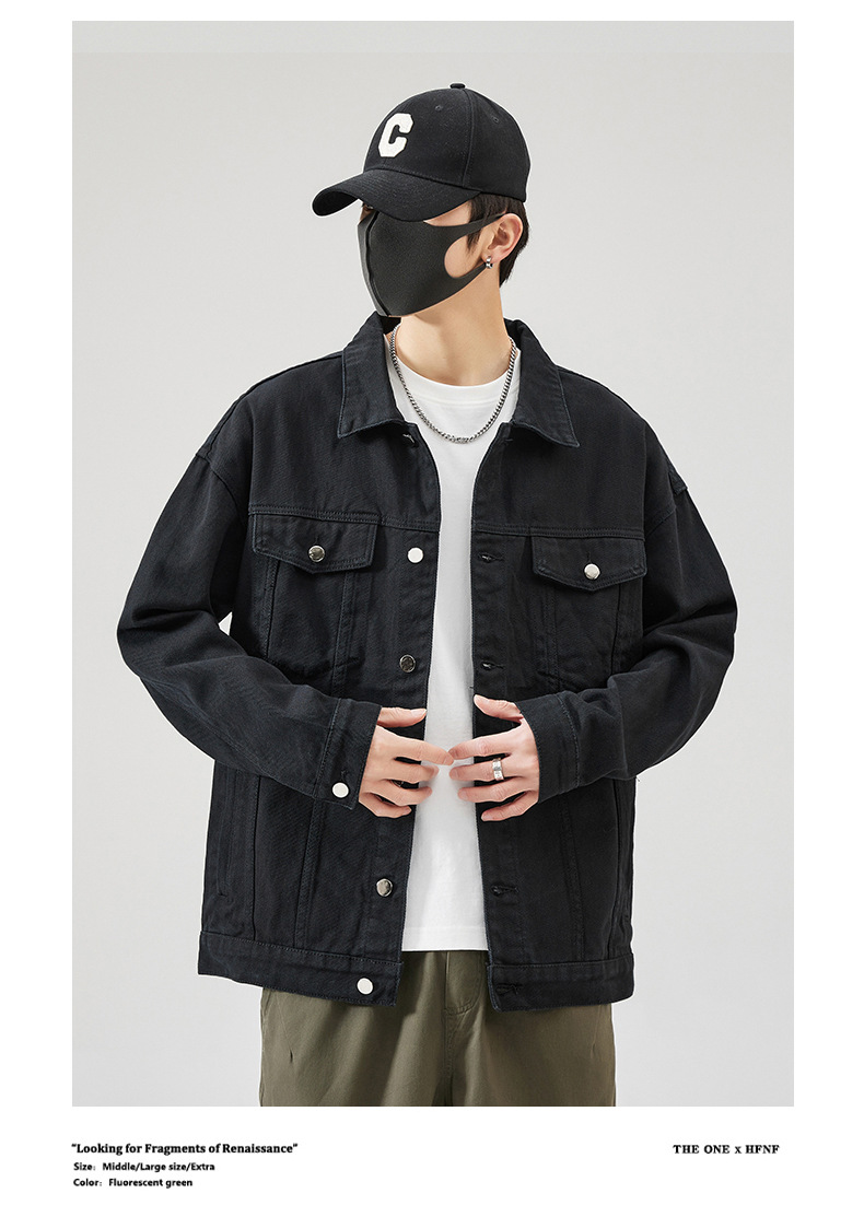 Muqiu 남성복 ∠ 트렌디 브랜드 단색 천 캐주얼 데님 자켓 남성용 아메리칸 스타일 루즈한 플러스 사이즈 모든 매치 탑 재킷스토어 가기