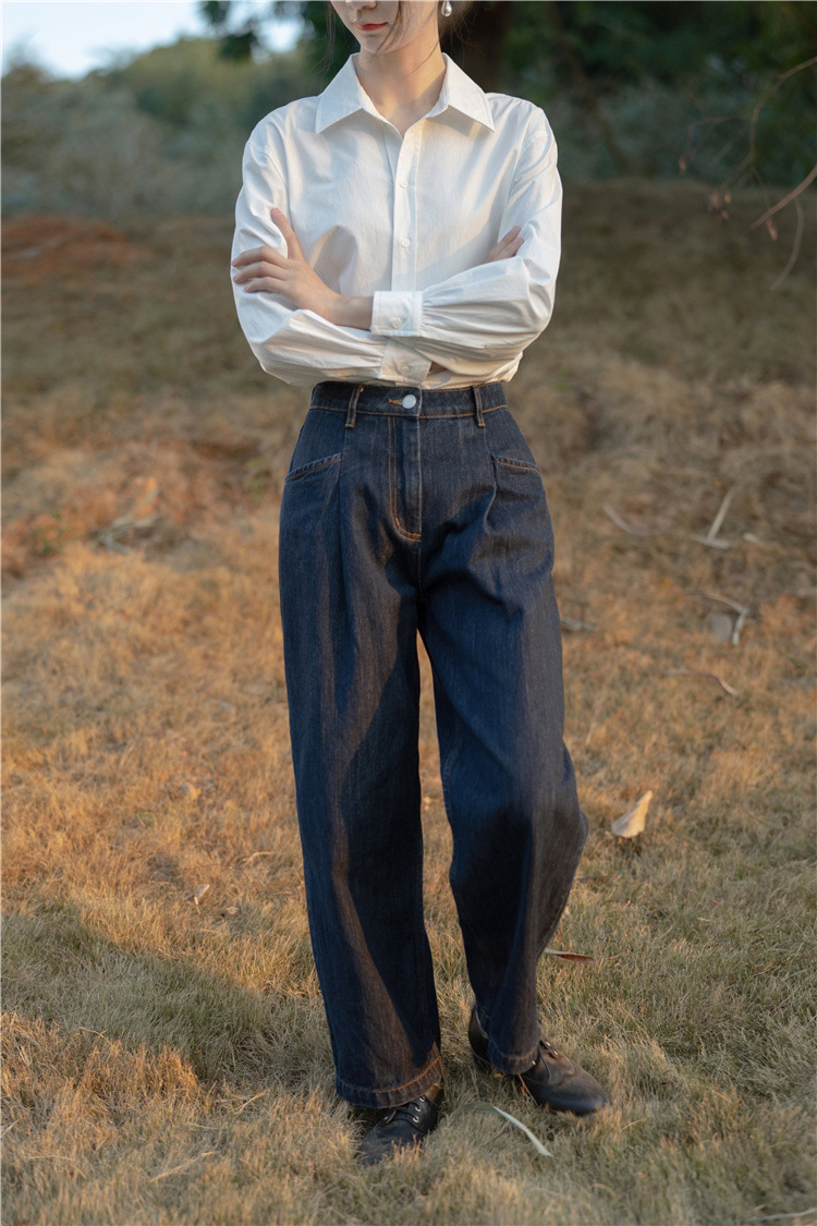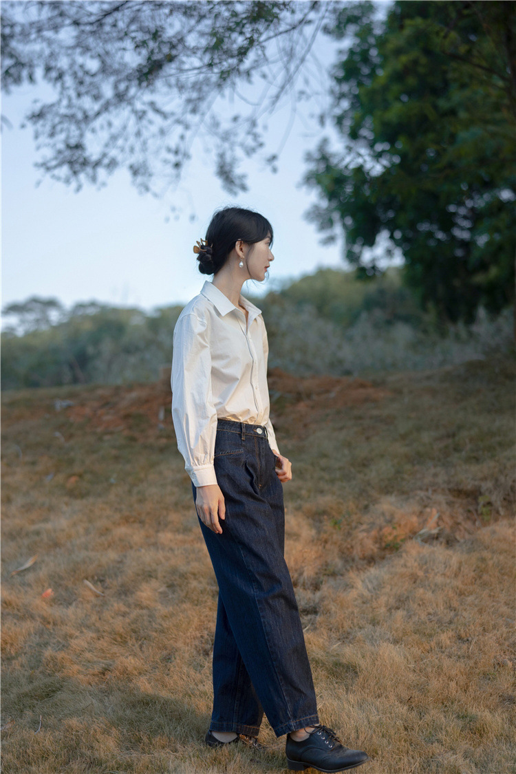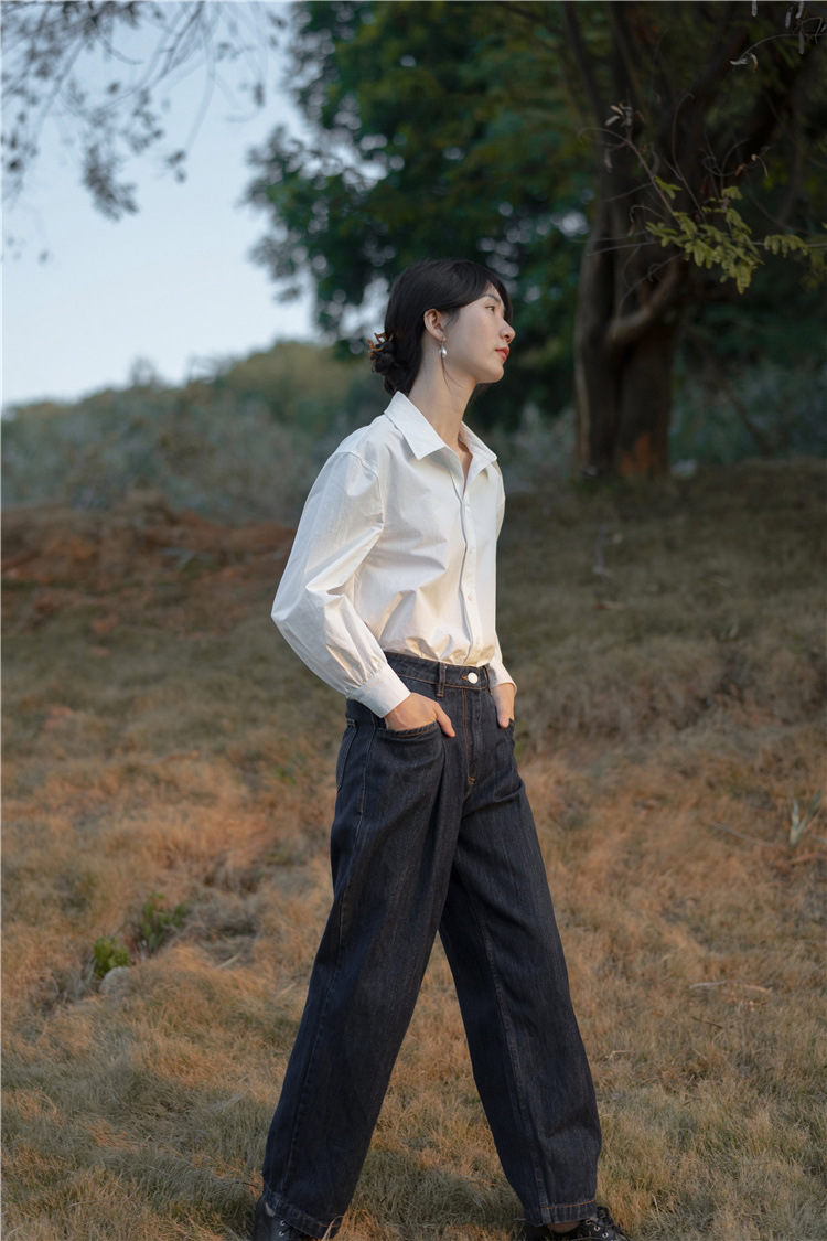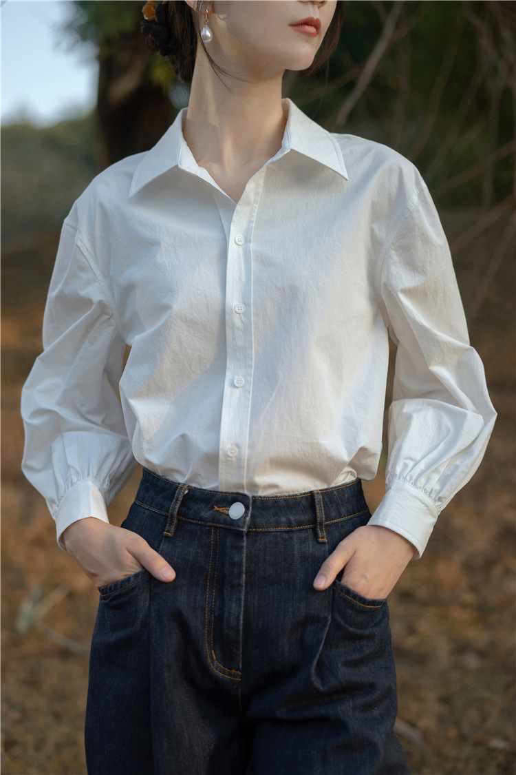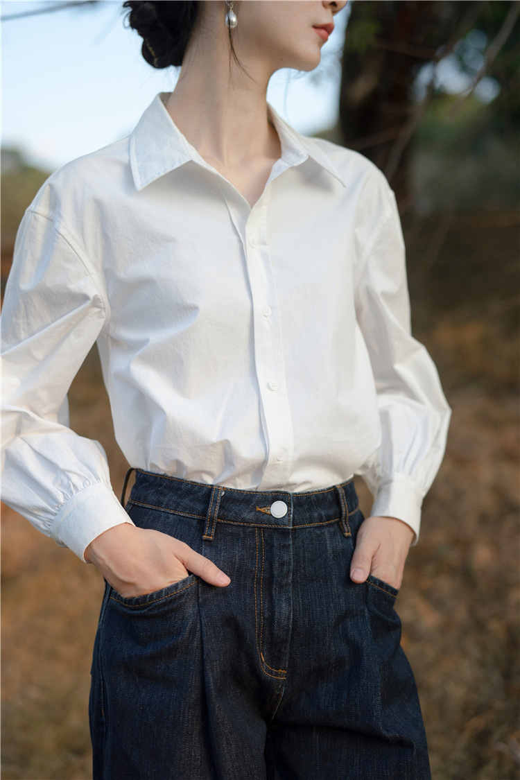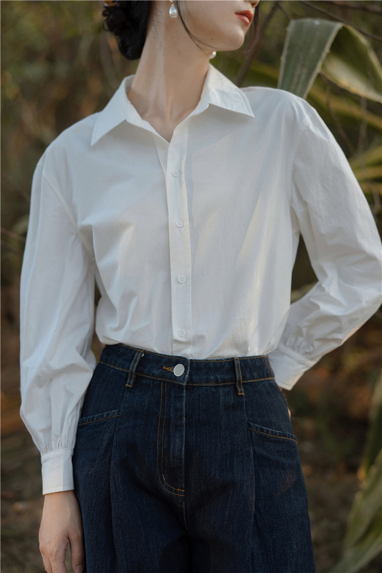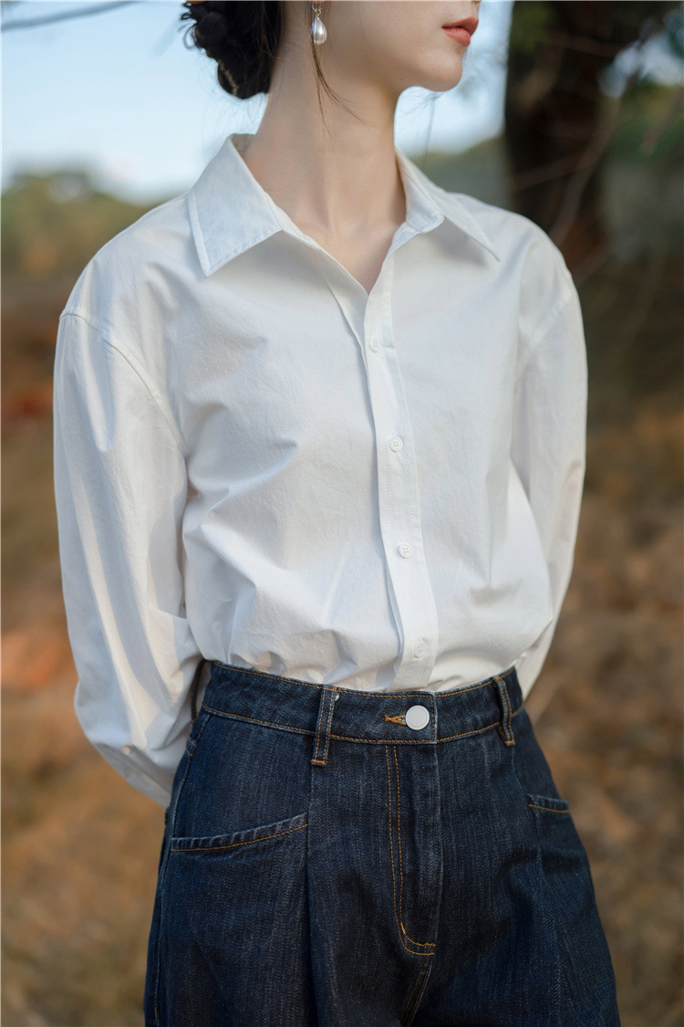 C708 봄 가을 캐주얼 화이트 셔츠 여성용 한국식 루즈한 셔츠 쁘띠를 위한 올매치 슬림핏 우아한 디자인 셔츠