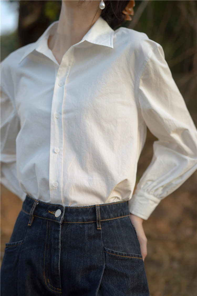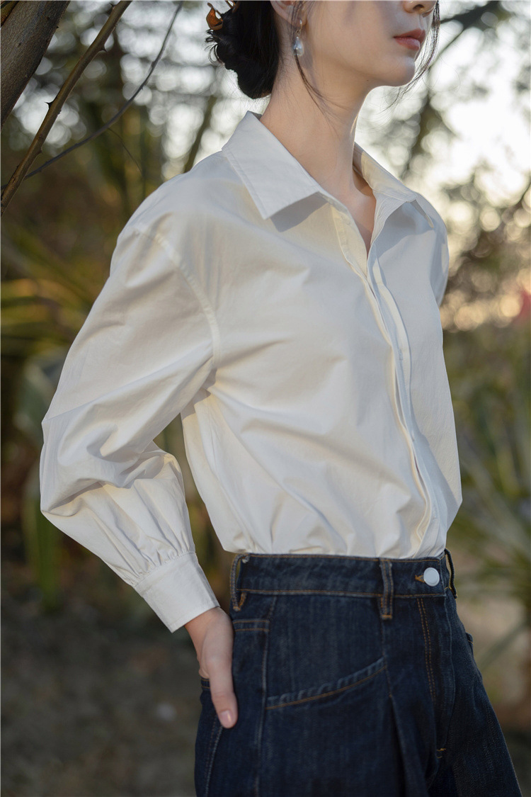 C708 봄 가을 캐주얼 화이트 셔츠 여성용 한국식 루즈한 셔츠 쁘띠를 위한 올매치 슬림핏 우아한 디자인 셔츠스토어 가기