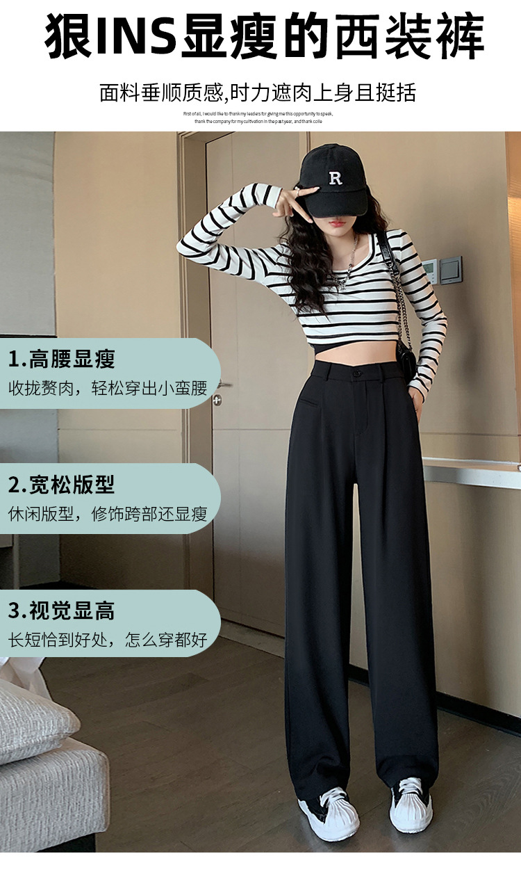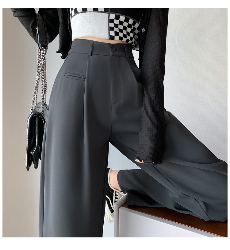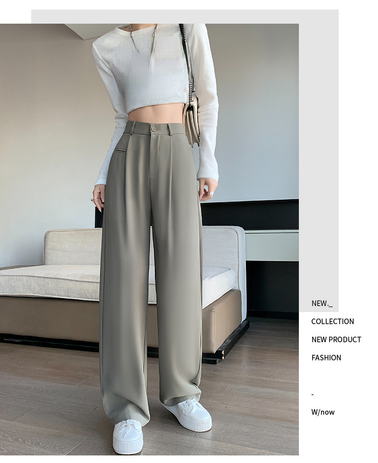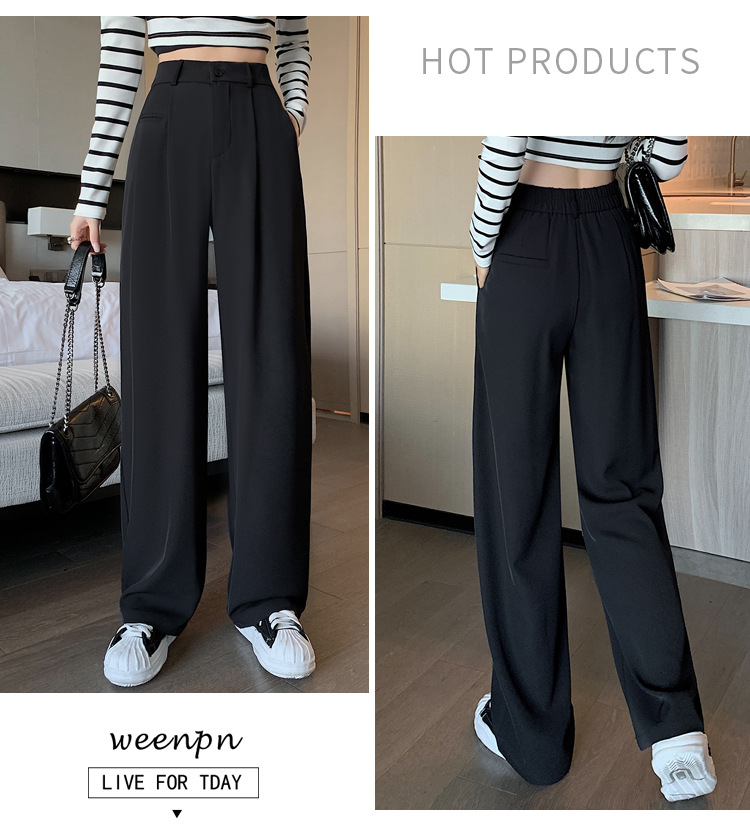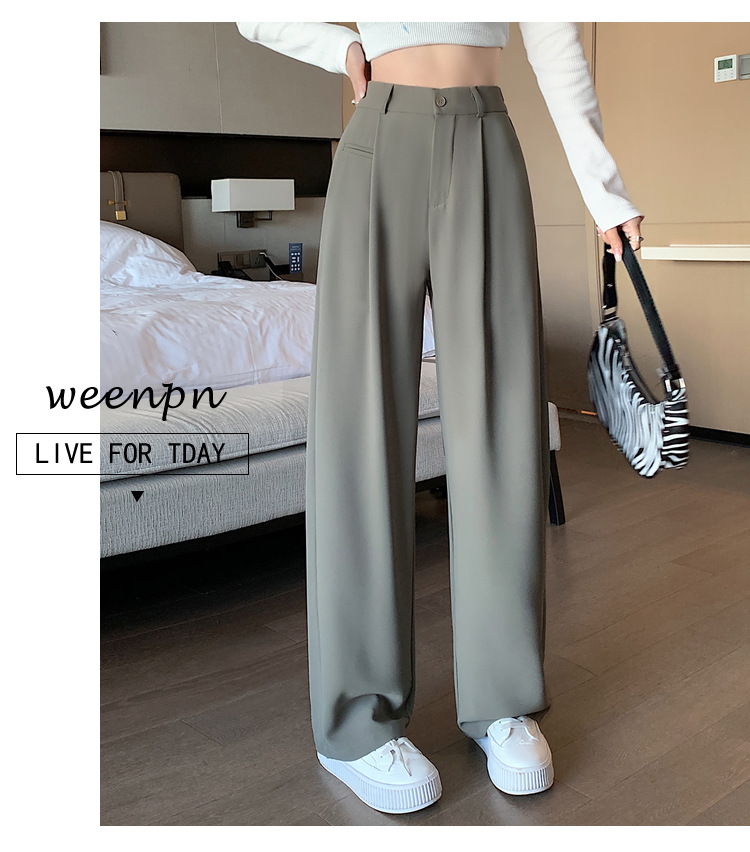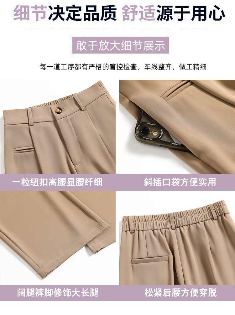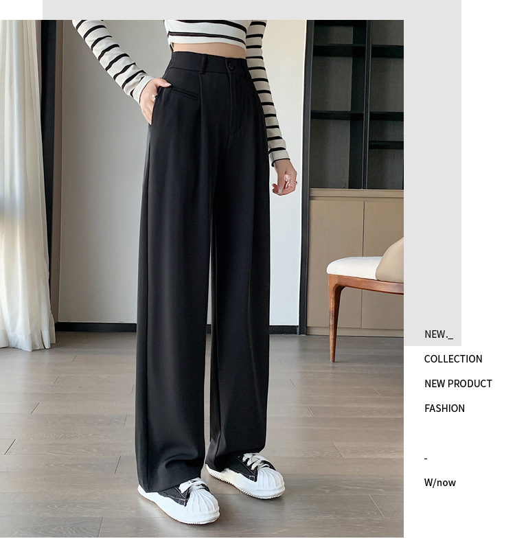 2025년 봄 여름 여성을 위한 고급 정장 바지 새로운 스타일의 하이웨이스트 와이드 팬츠 루즈하고 슬림한 좁은 버전 바닥 길이 바지스토어 가기