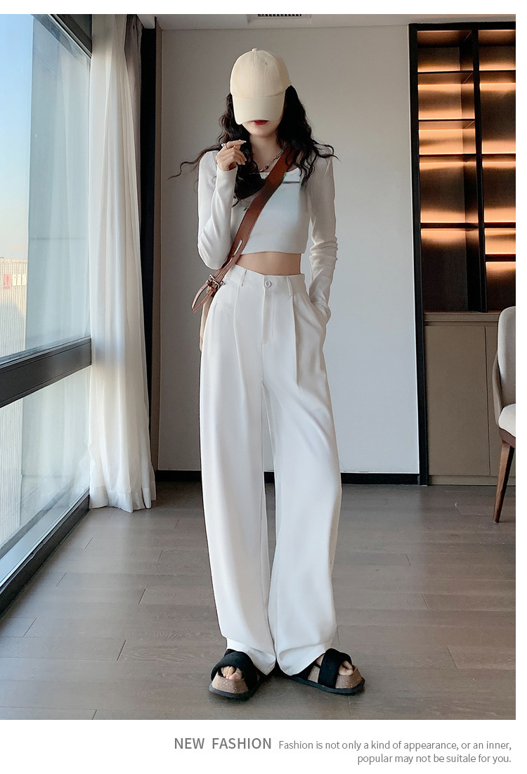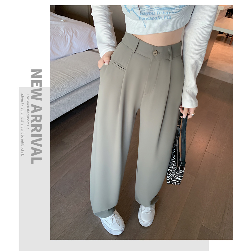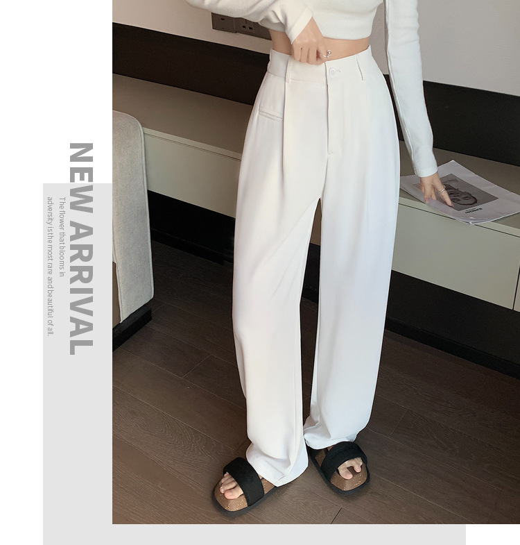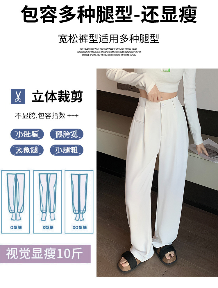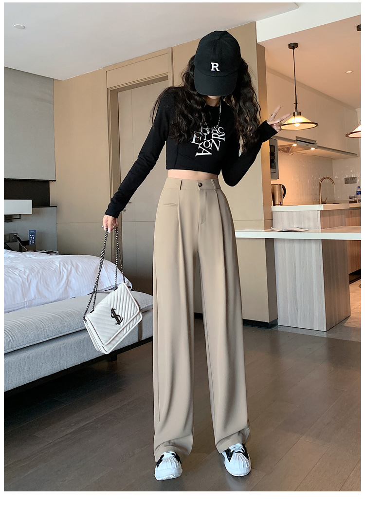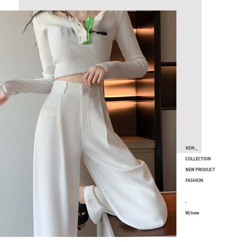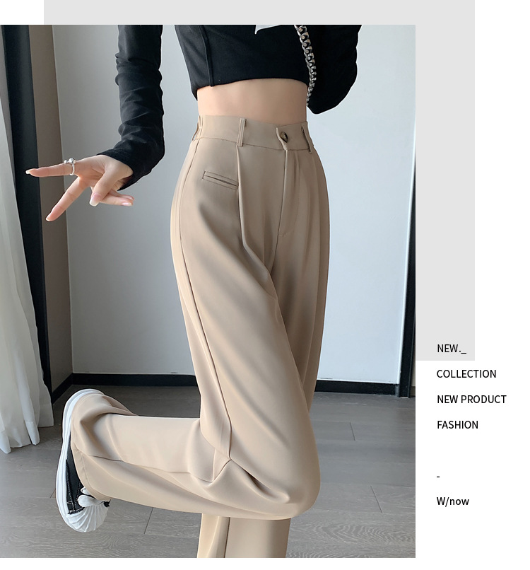 2025년 봄 여름 여성을 위한 고급 정장 바지 새로운 스타일의 하이웨이스트 와이드 팬츠 루즈하고 슬림한 좁은 버전 바닥 길이 바지스토어 가기