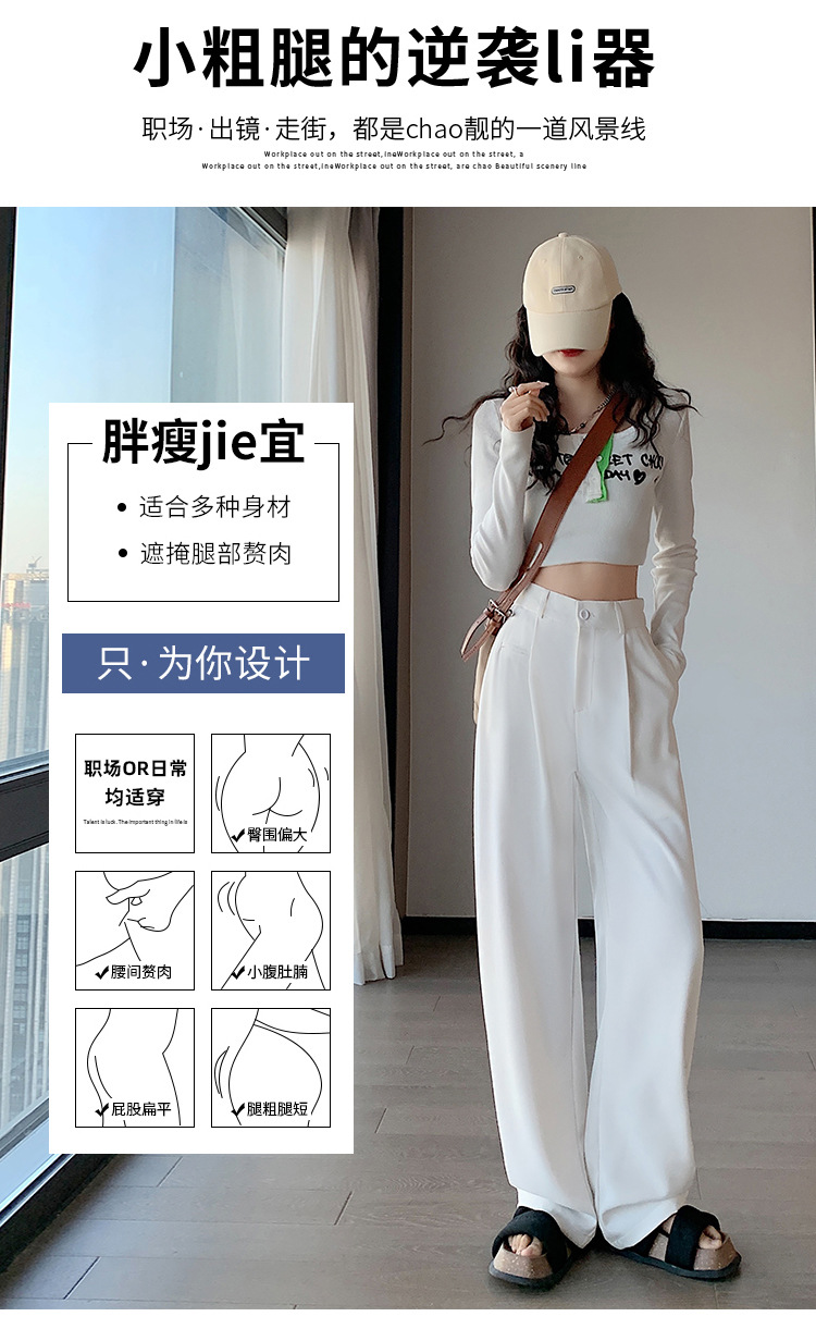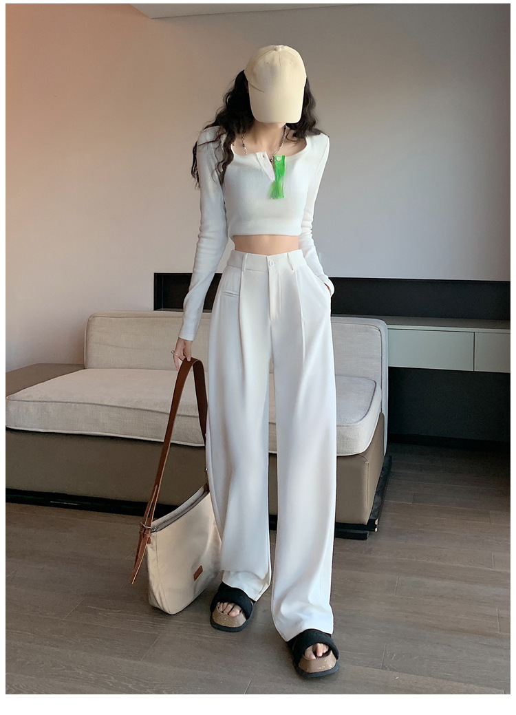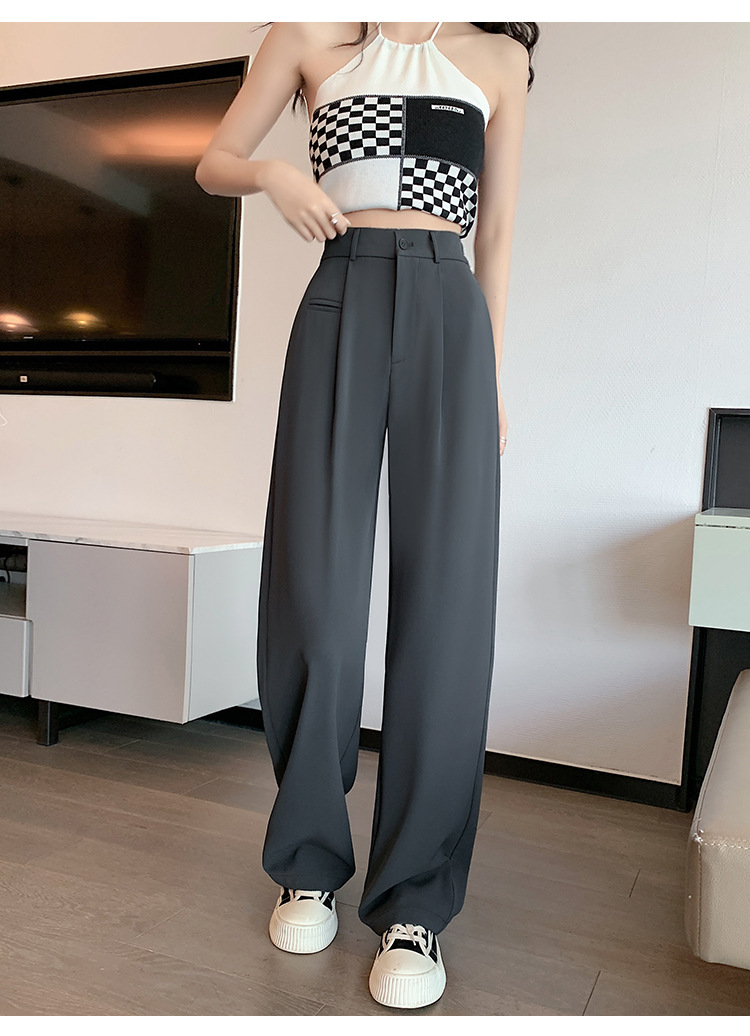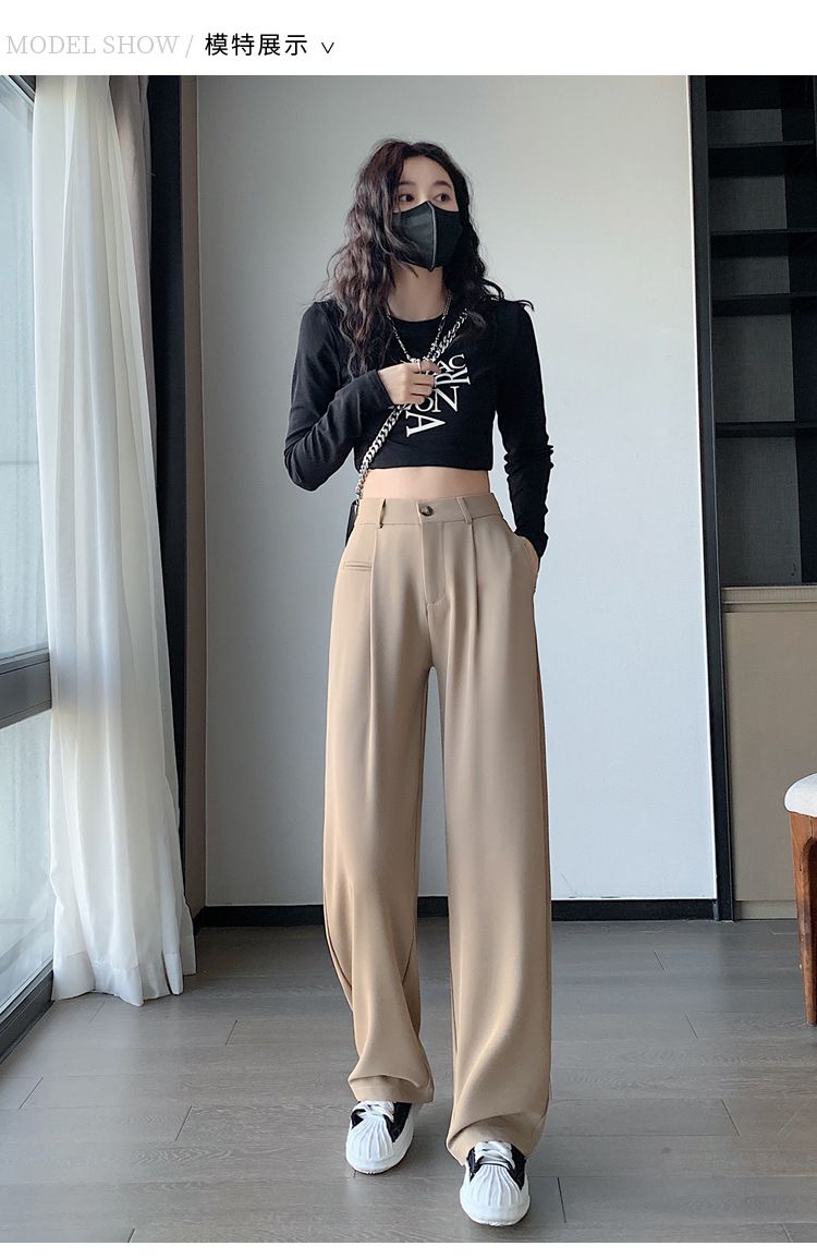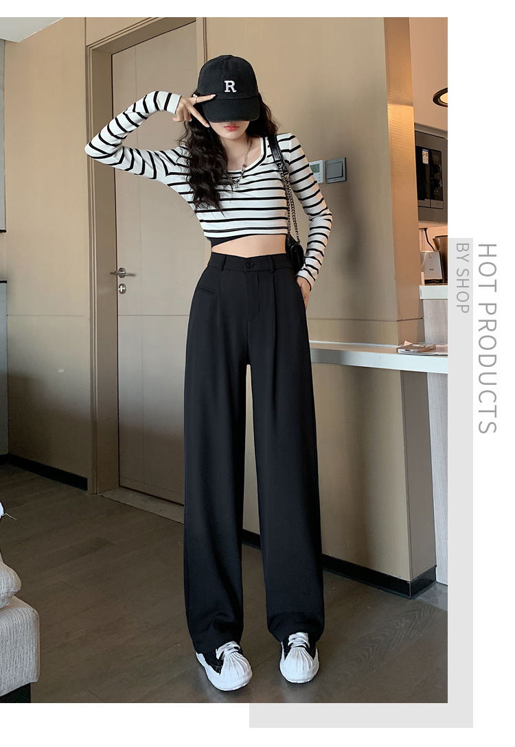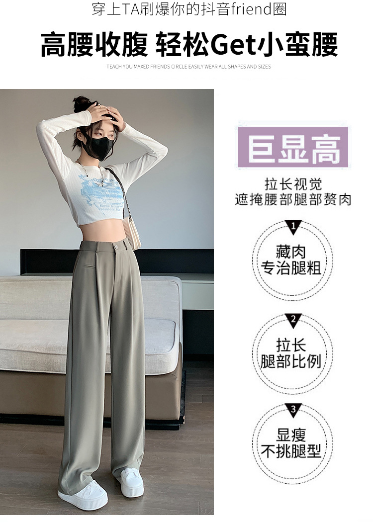 2025년 봄 여름 여성을 위한 고급 정장 바지 새로운 스타일의 하이웨이스트 와이드 팬츠 루즈하고 슬림한 좁은 버전 바닥 길이 바지스토어 가기