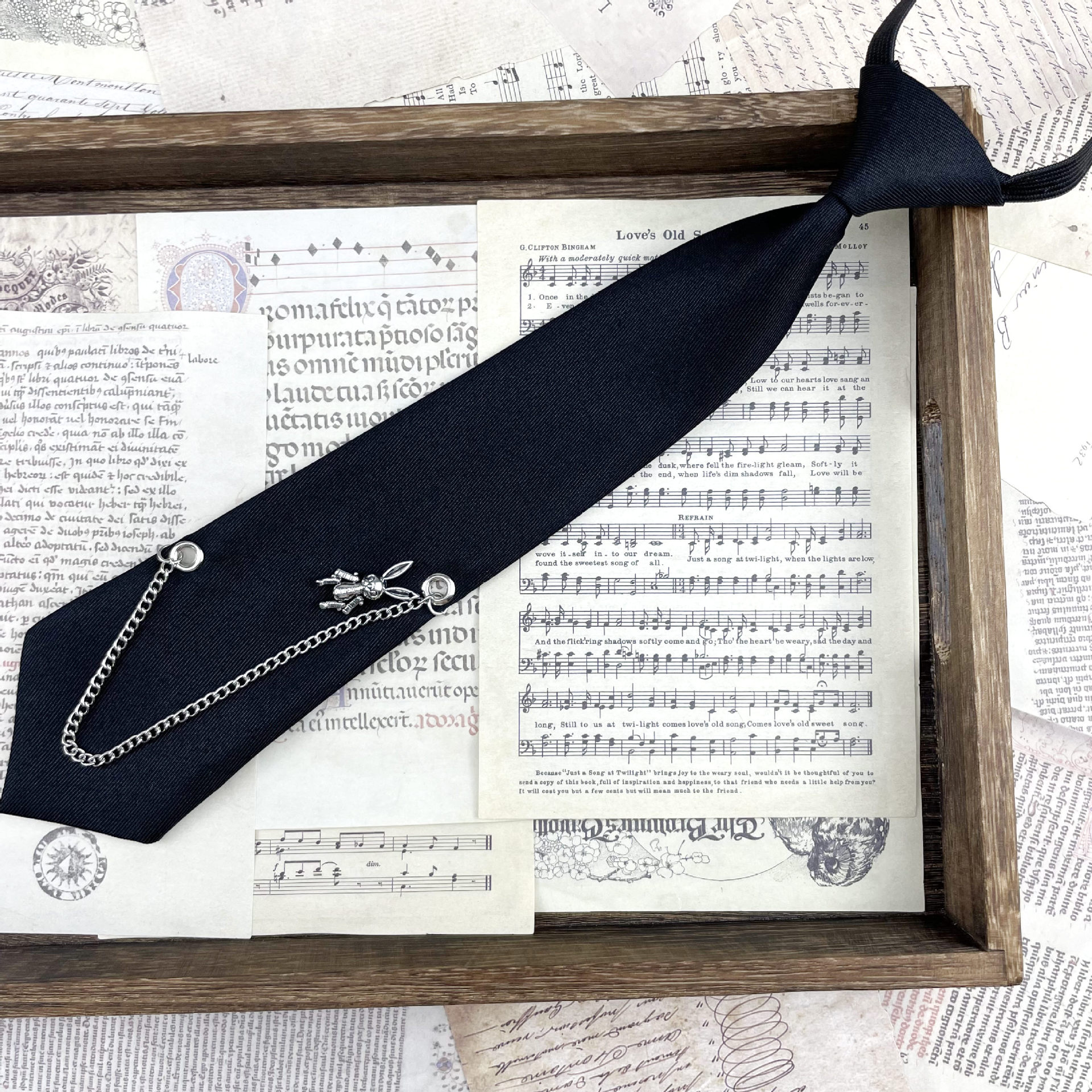 • 넥타이가 필요 없는 작은 나비 체인 타이(검은색 벨트) *35cm