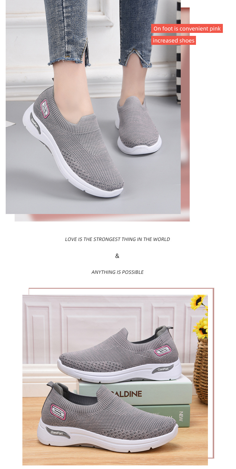 여성용 봄 캐주얼 신발, 부드러운 밑창, 가벼운 엄마 신발, 크로스보더 대형 여성 신발, 수출용 플라이 니트 양말 신발, 천 신발