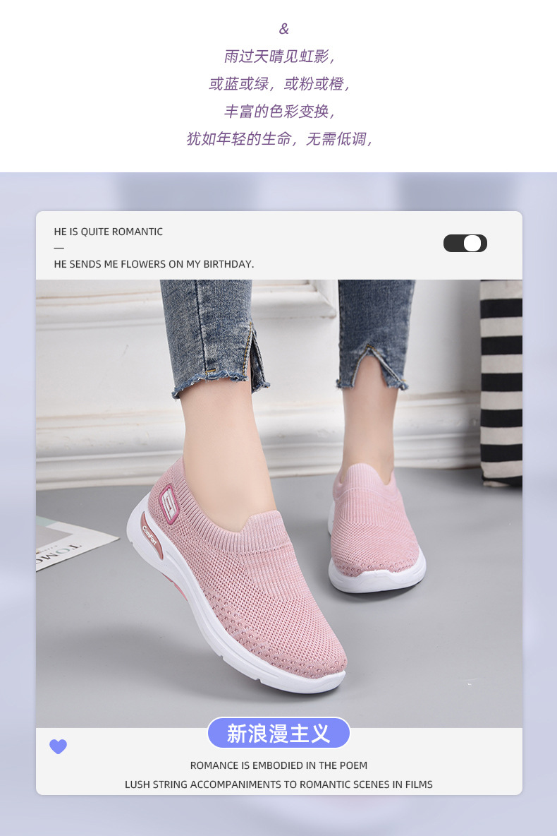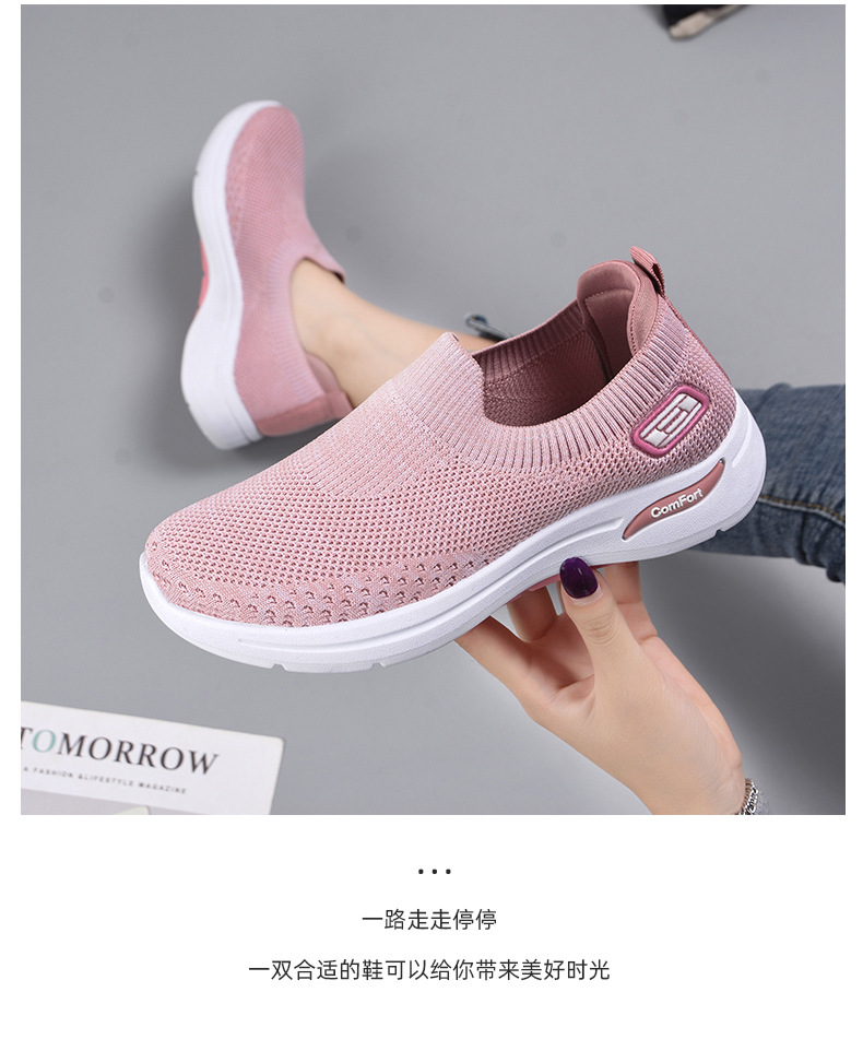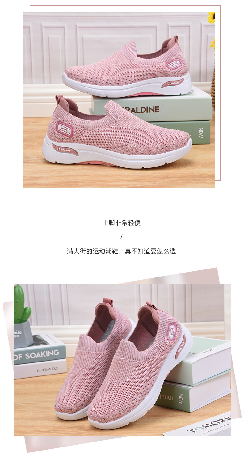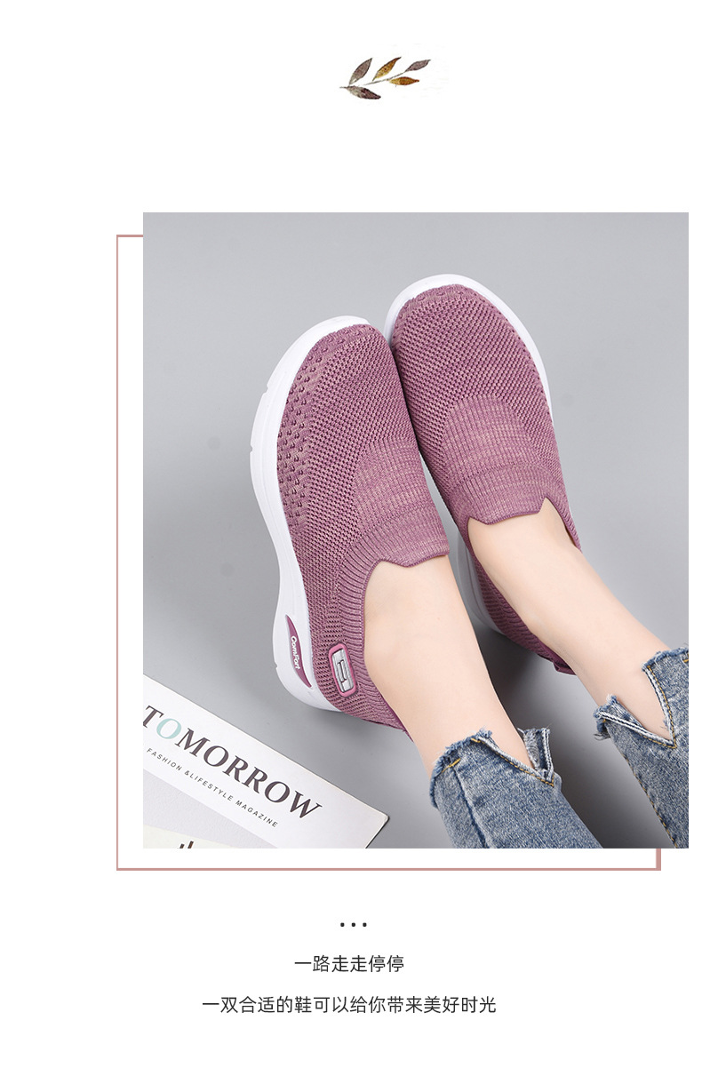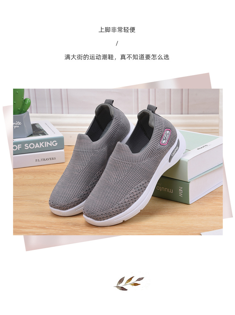 여성용 봄 캐주얼 신발, 부드러운 밑창, 가벼운 엄마 신발, 크로스보더 대형 여성 신발, 수출용 플라이 니트 양말 신발, 천 신발스토어 가기