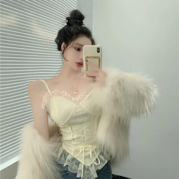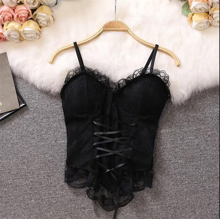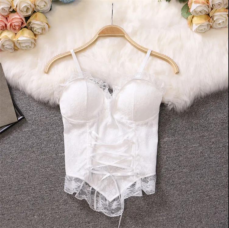 프렌치 스타일 레이스 캐미솔 여성용 겉옷 원피스 비 스틸 링 아름다운 등 가슴 패드가있는 모든 경기 짧은 탑