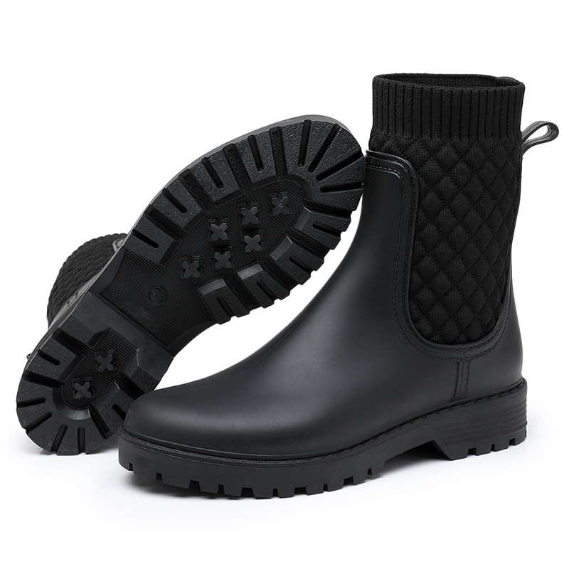 여성용 숏 레인부츠, 패셔너블한 양용(비 오는 날에도 사용 가능) 워터 슈즈, 플라이 니트 여성화, 플라스틱 안감 레인부츠