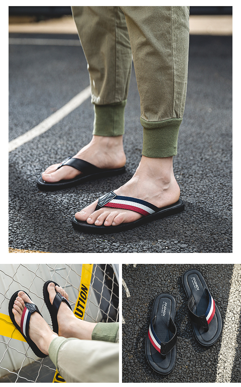 슬리퍼 남성 유행 개인 미끄럼 방지 탈취제 남성 슬리퍼 여름 야외 여름 가죽 한국 유행 하이 엔드