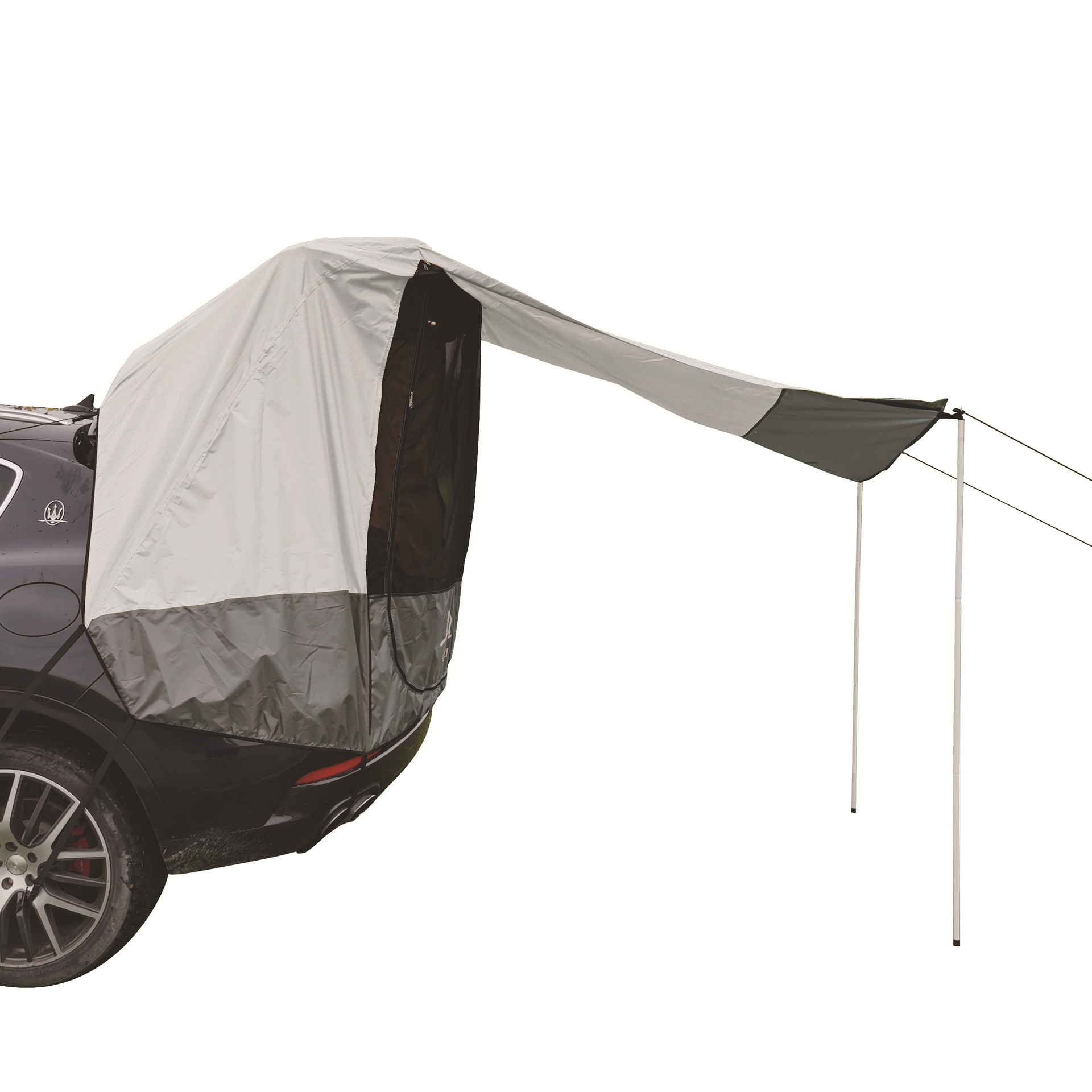 2.将帐篷套在掀起的车尾门上