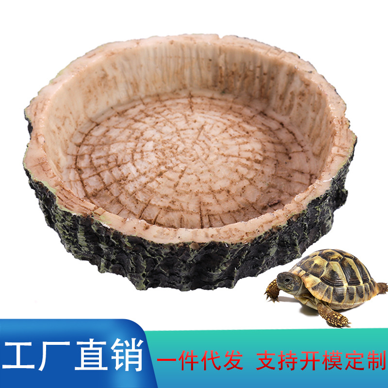 • 跨境厂家水族馆爬宠箱造景用品仿真木头乌龟蜥蜴水碗树脂食盆