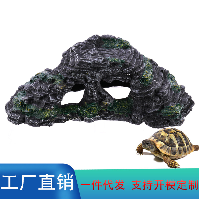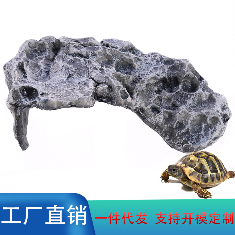 • 厂家跨境水族造景装饰爬宠箱躲避晒台大号仿真树脂石头乌龟晒台