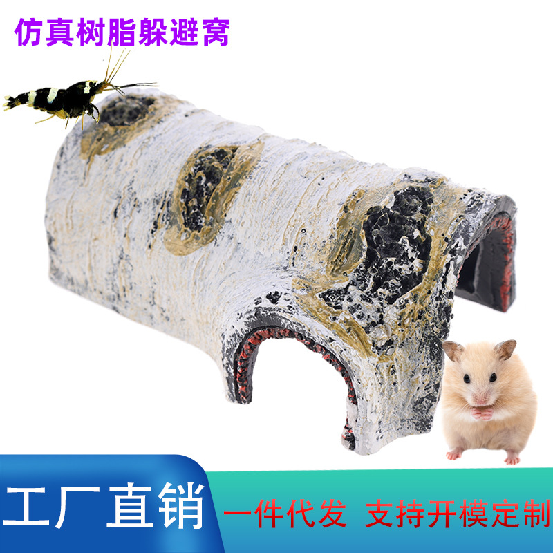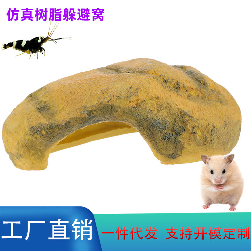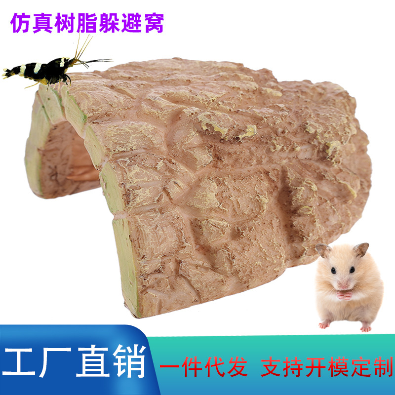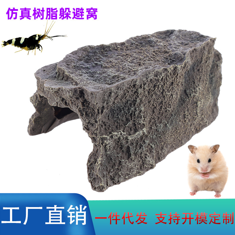 • 跨境树脂躲避洞 鱼缸造景装饰仿真树脂爬宠箱仓鼠躲避岩石洞穴屋