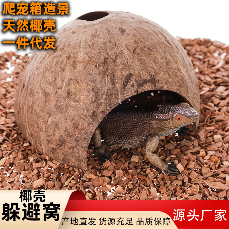 • 椰壳躲避窝 爬宠箱造景装饰鬃师蜥蜴蛇龟仓鼠寄居蟹攀爬躲避窝