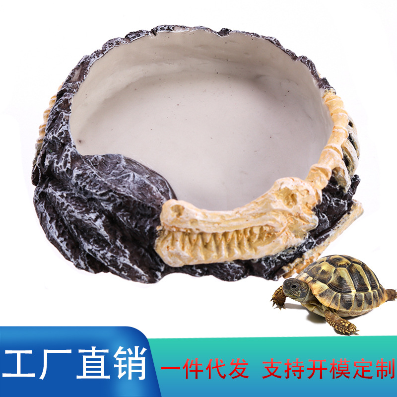 • 厂家跨境水族馆爬宠箱大号仿真树脂龙骨化石食盆乌龟蜥蜴喂食盆