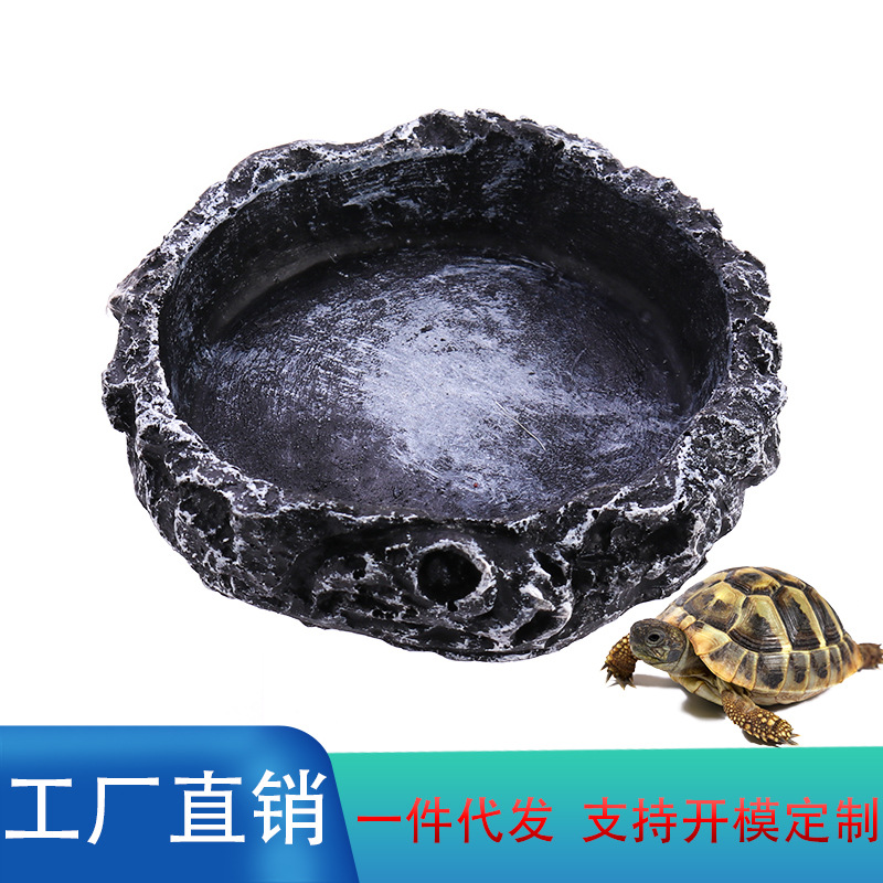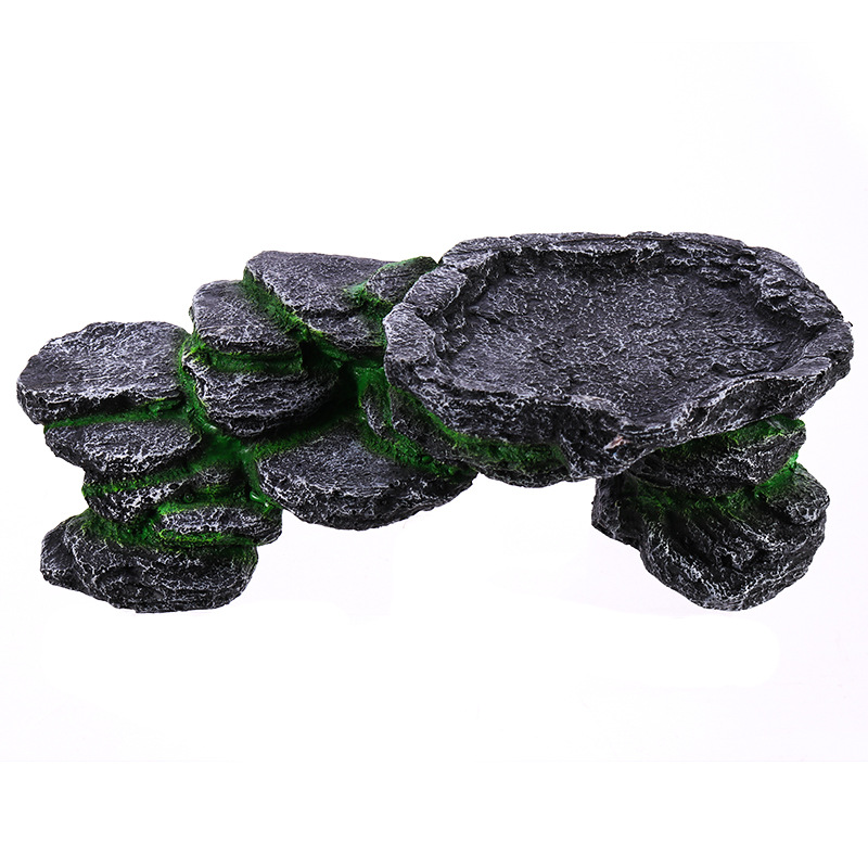 • 厂家跨境水族馆鱼缸乌龟晒台仿真石头树脂食盆乌龟蜥蜴树脂食盆