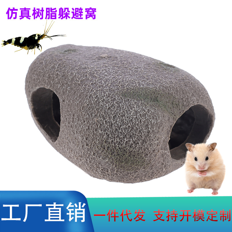 • 跨境树脂躲避窝 爬宠箱仓鼠躲避岩石洞穴屋仿真树脂鱼缸造景装饰