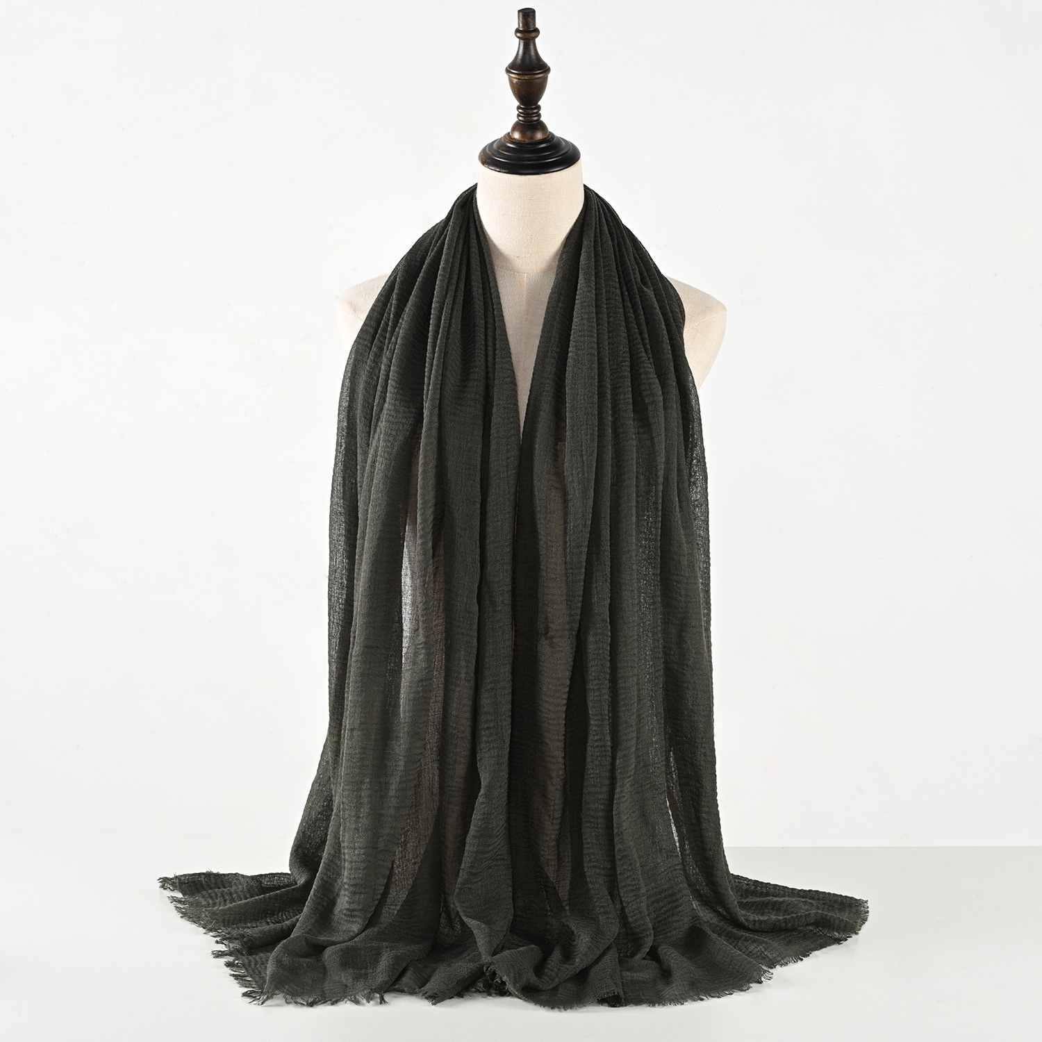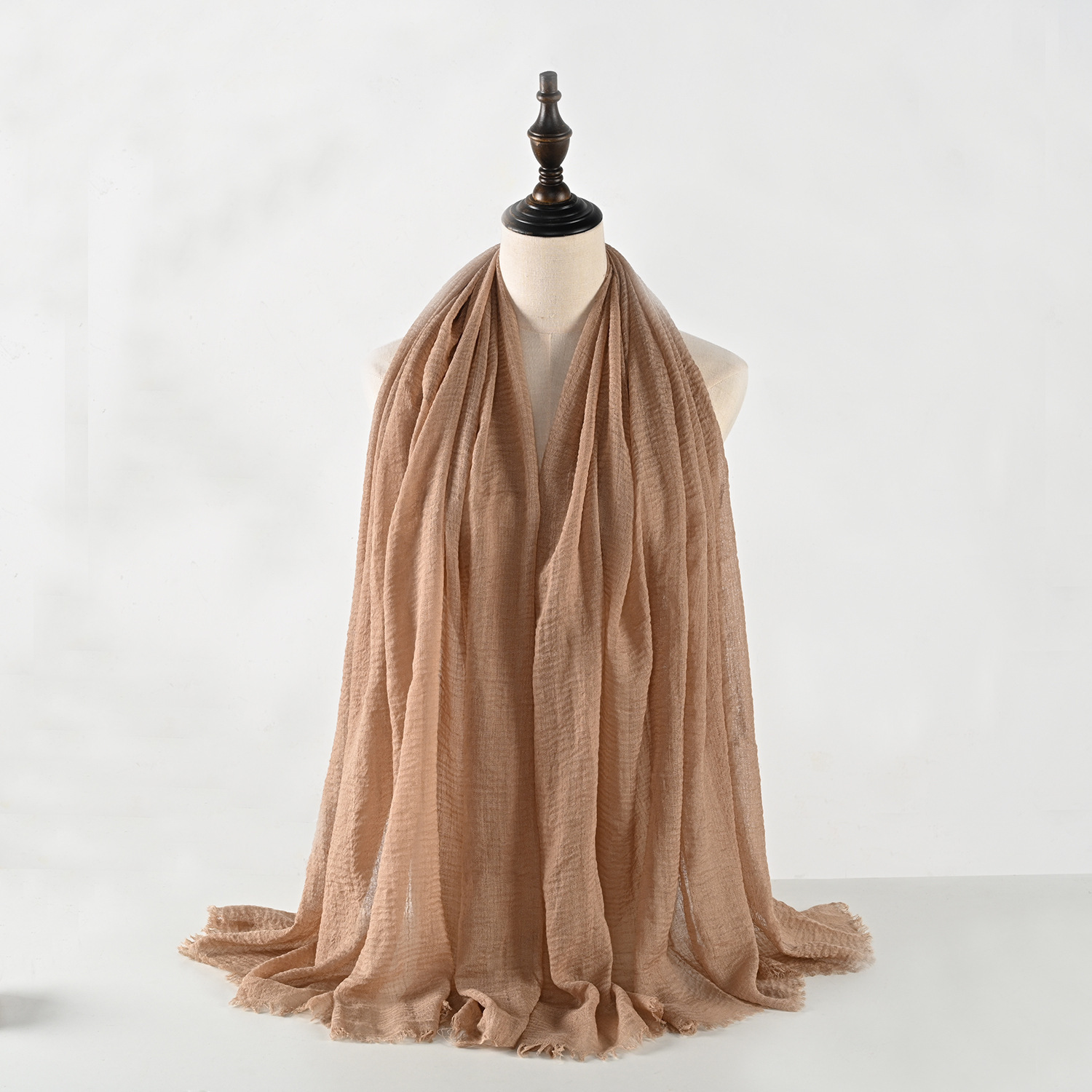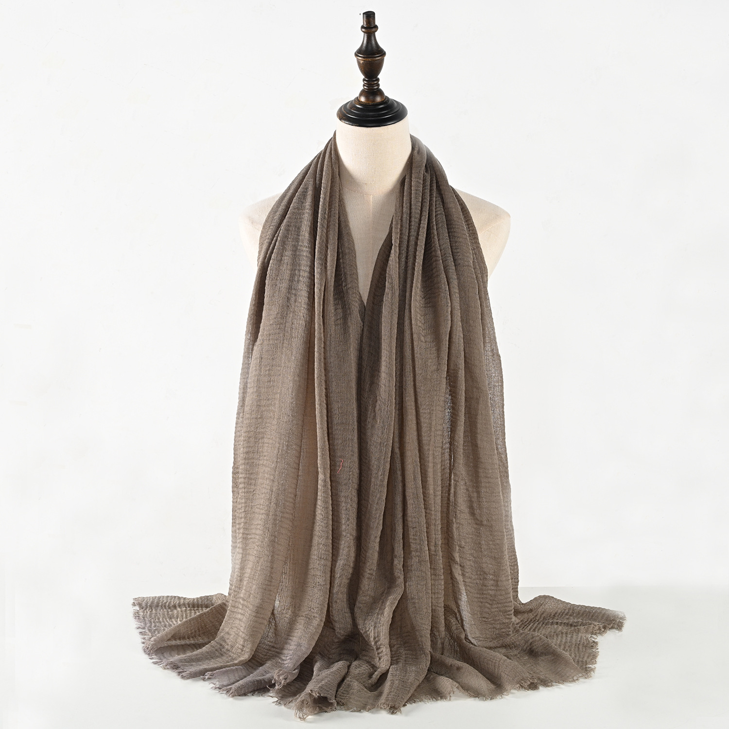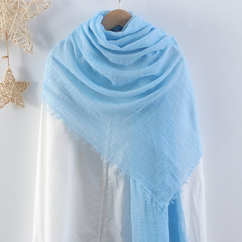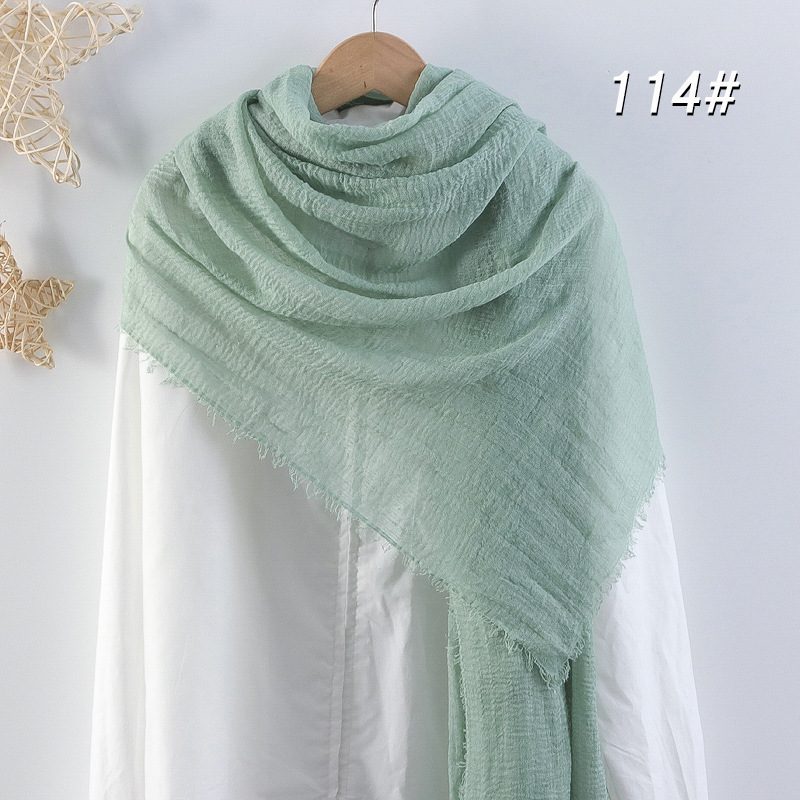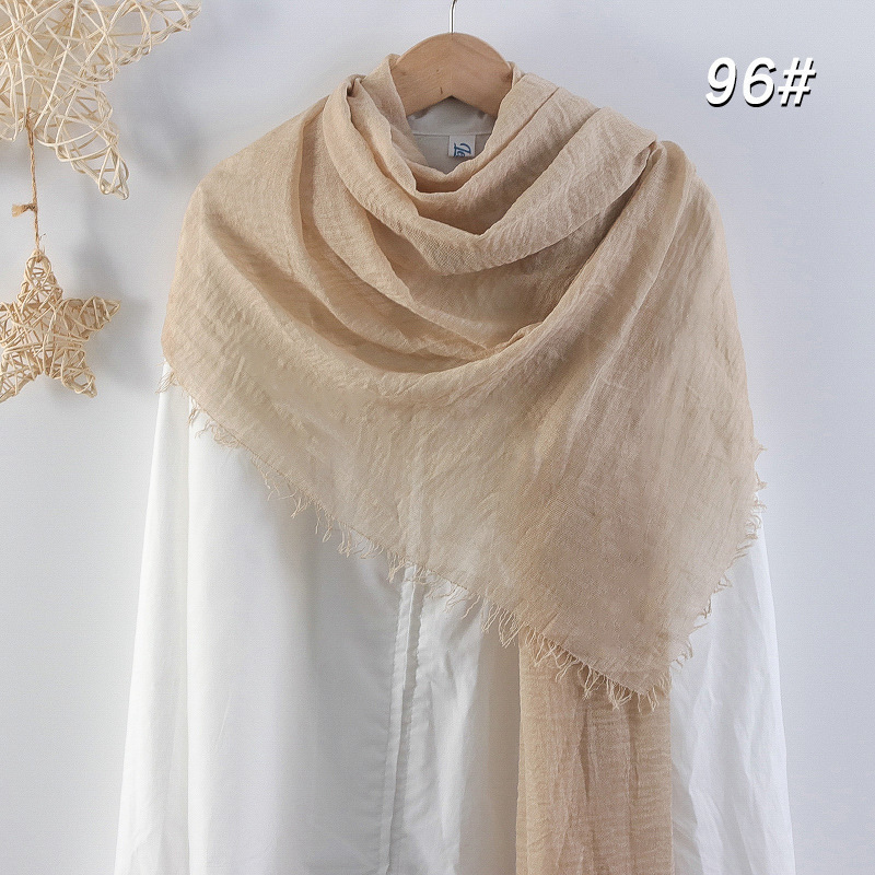 주름진 단색 면 및 린넨 스카프, 주름진 모피 가장자리, 대형 거즈 스카프, 자외선 차단 터번, 제조업체 도매, 다용도스토어 가기