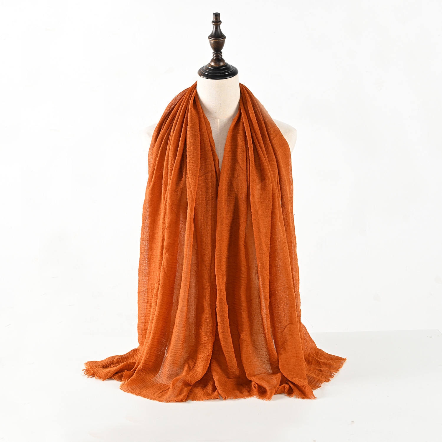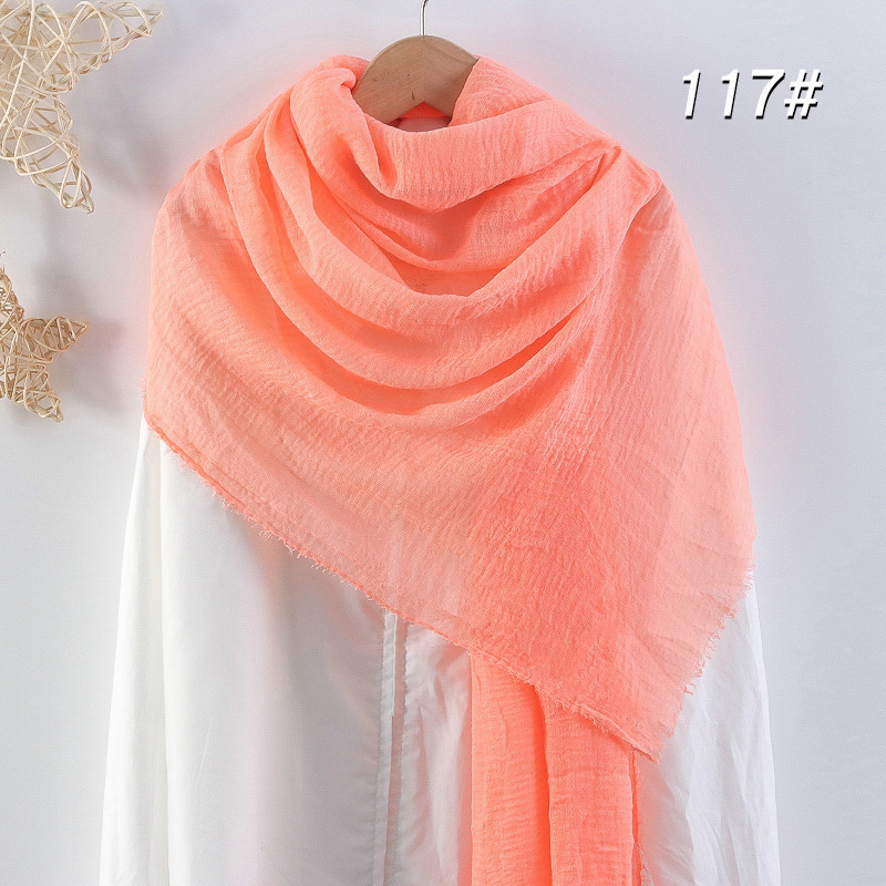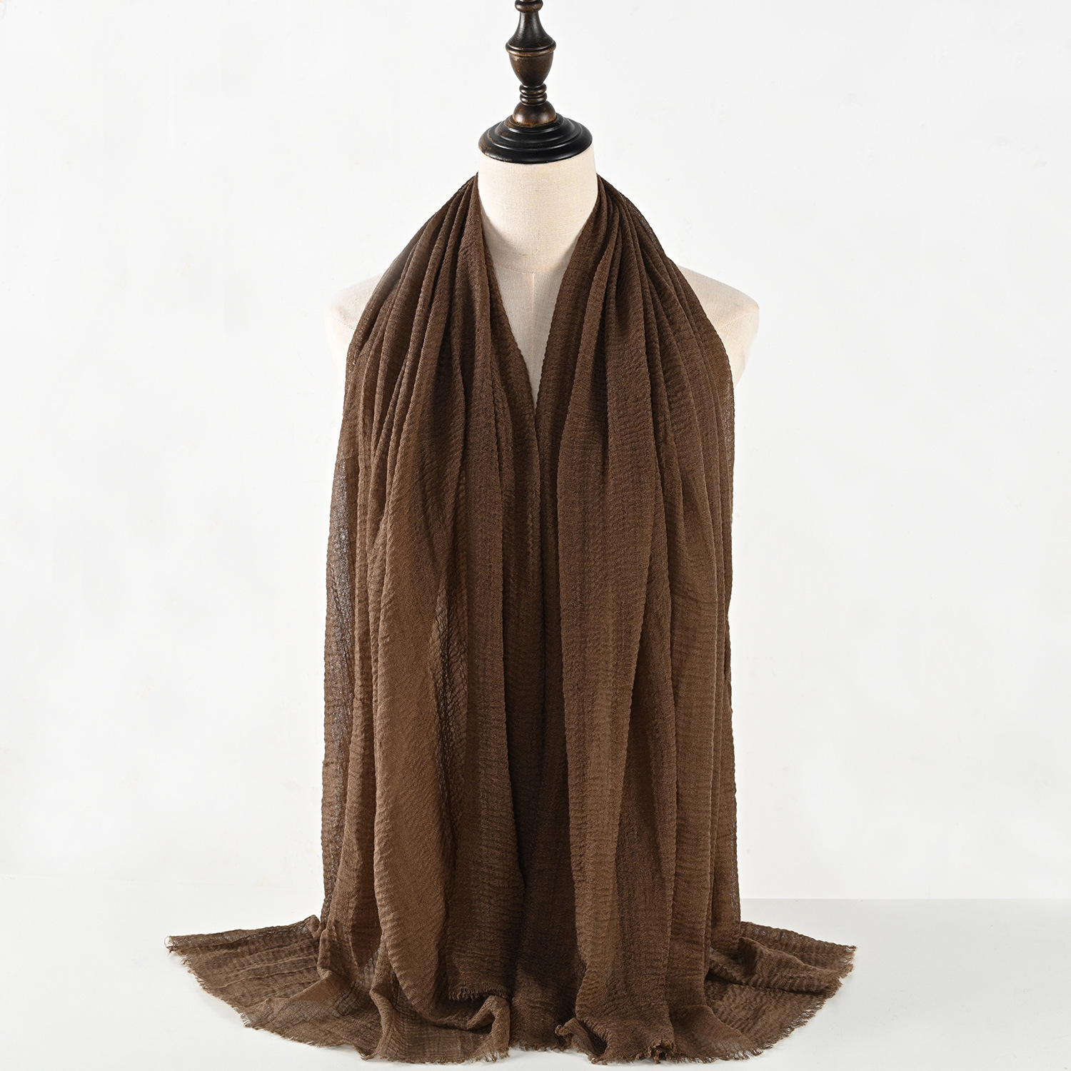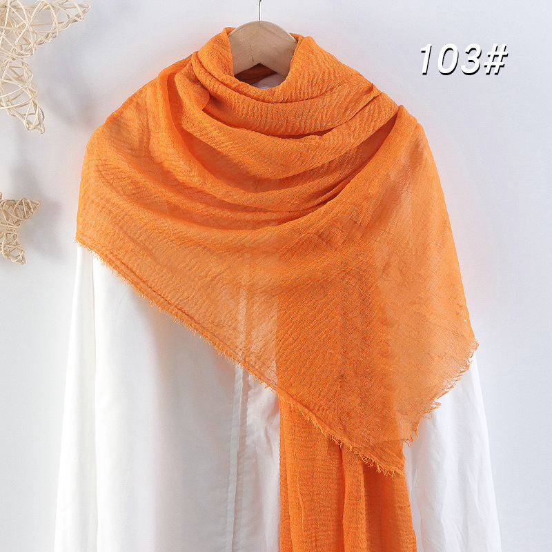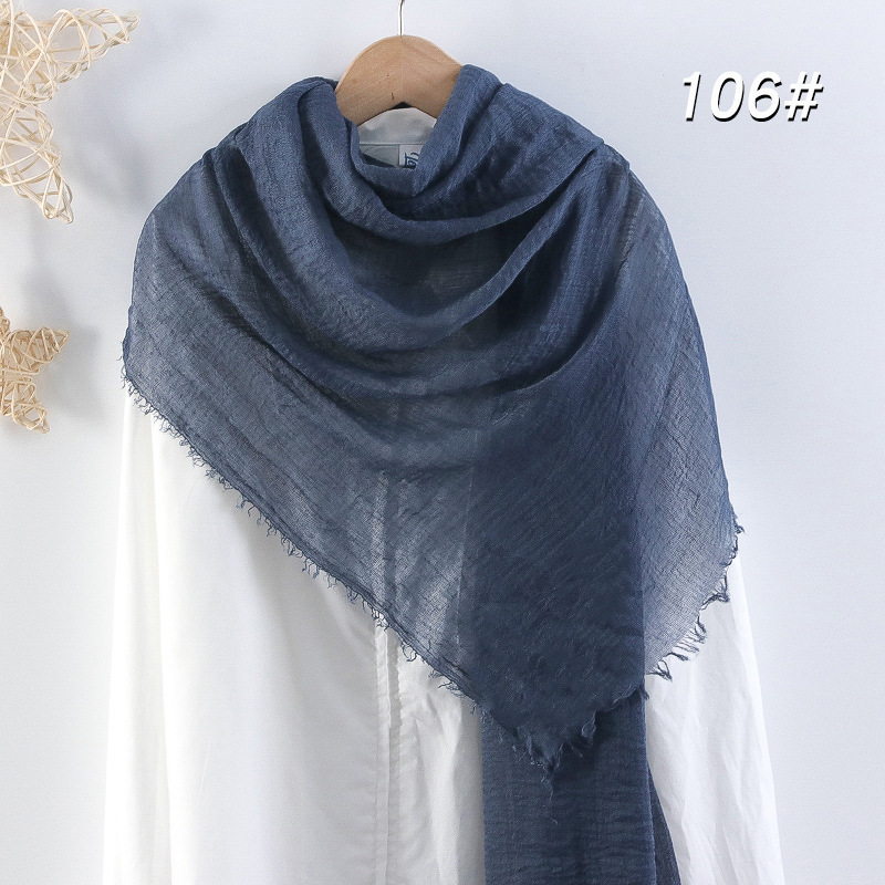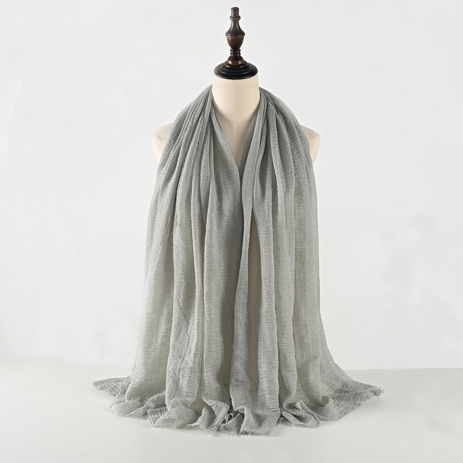 주름진 단색 면 및 린넨 스카프, 주름진 모피 가장자리, 대형 거즈 스카프, 자외선 차단 터번, 제조업체 도매, 다용도스토어 가기