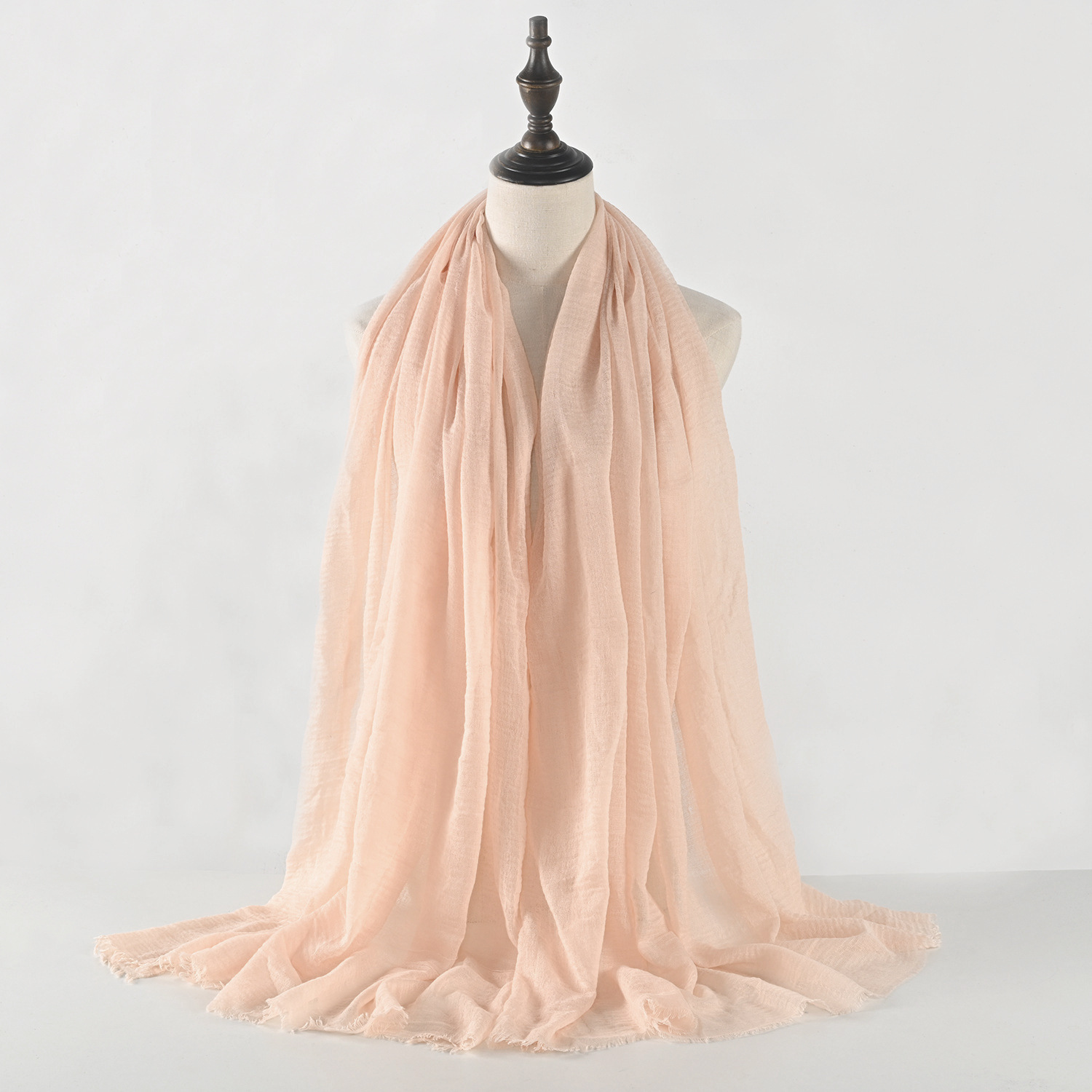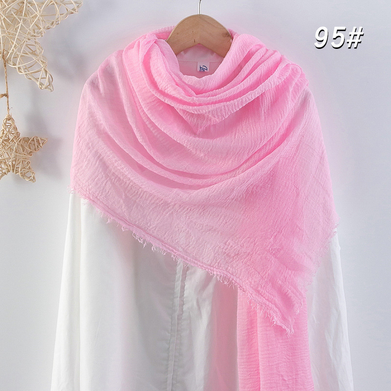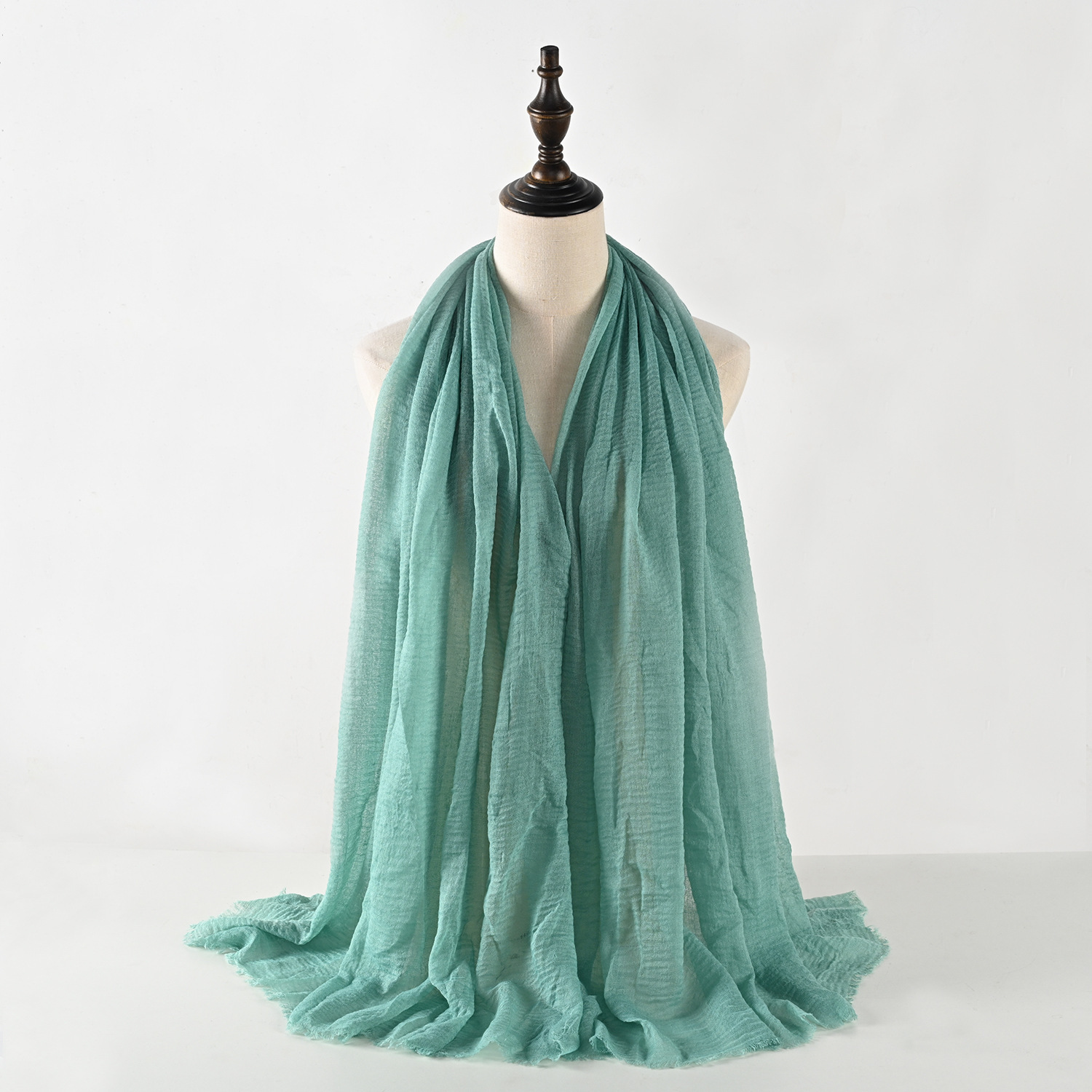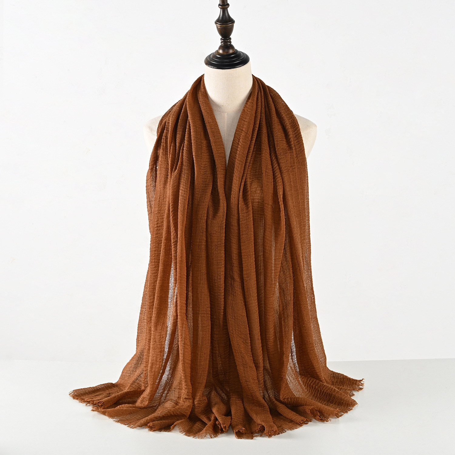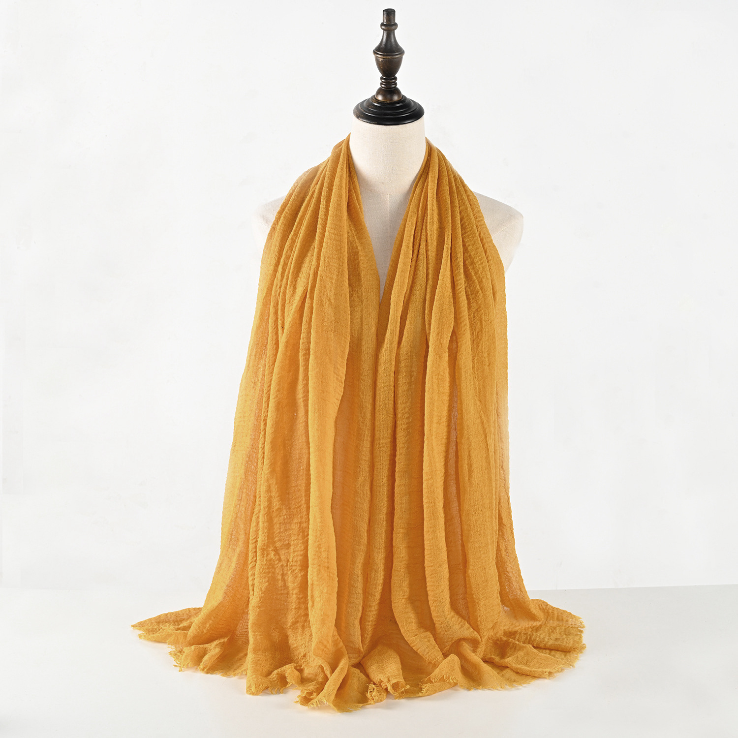 주름진 단색 면 및 린넨 스카프, 주름진 모피 가장자리, 대형 거즈 스카프, 자외선 차단 터번, 제조업체 도매, 다용도스토어 가기