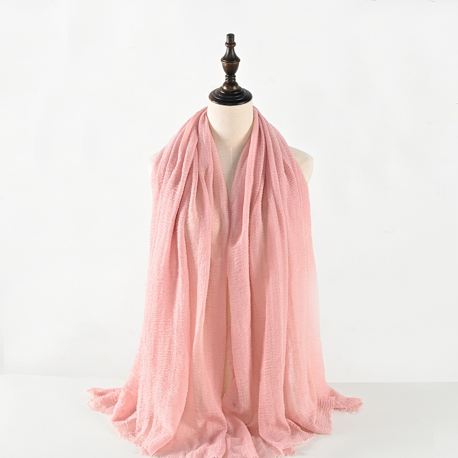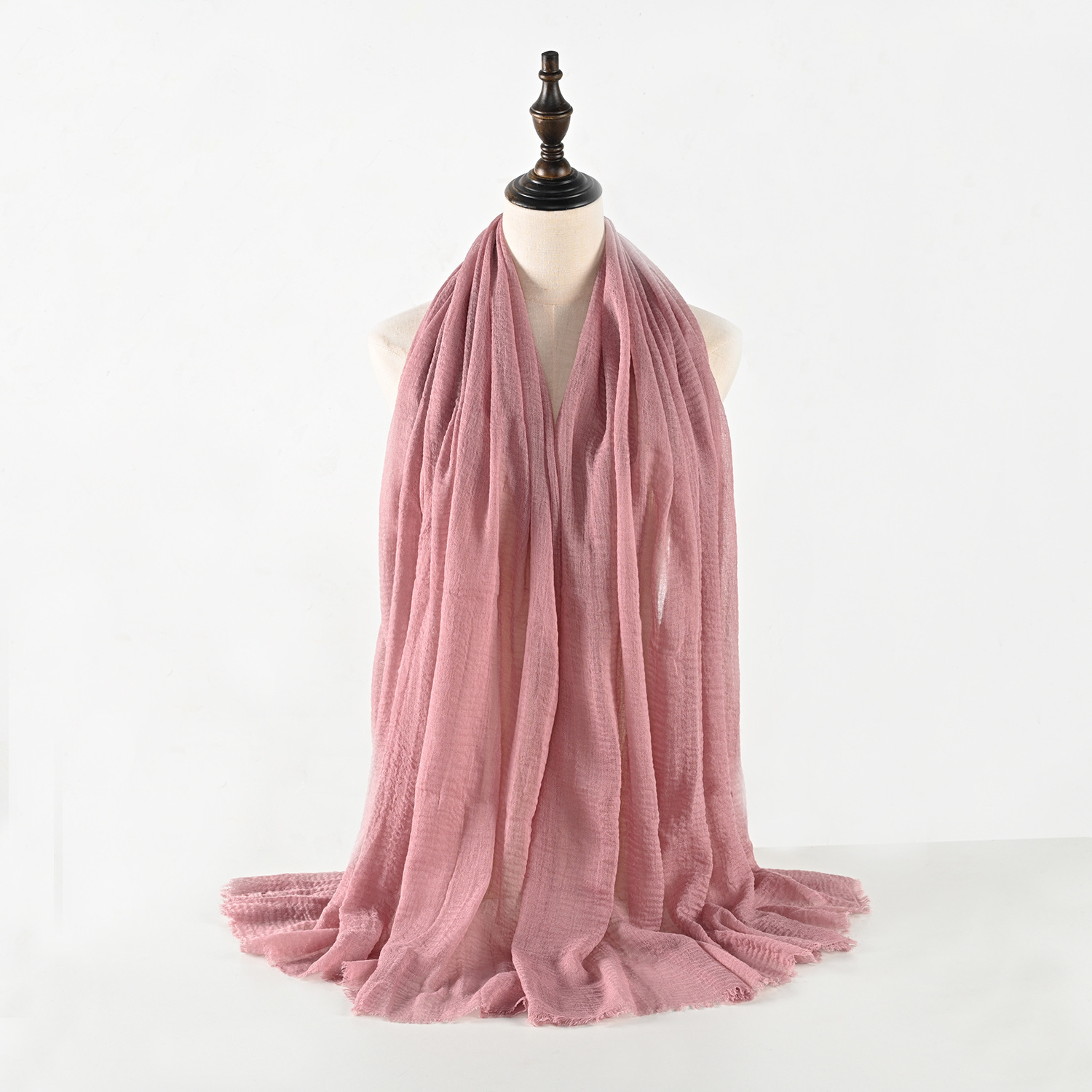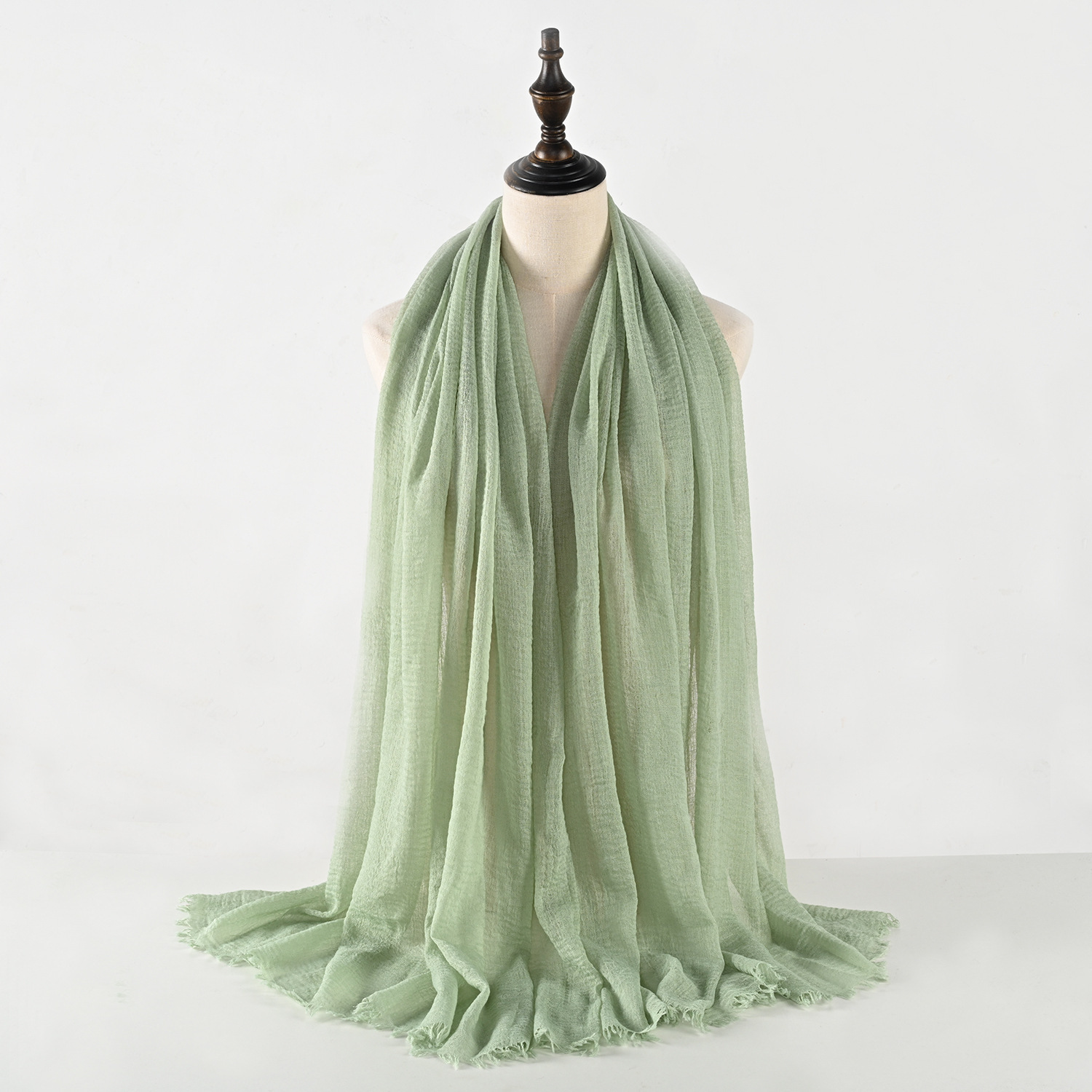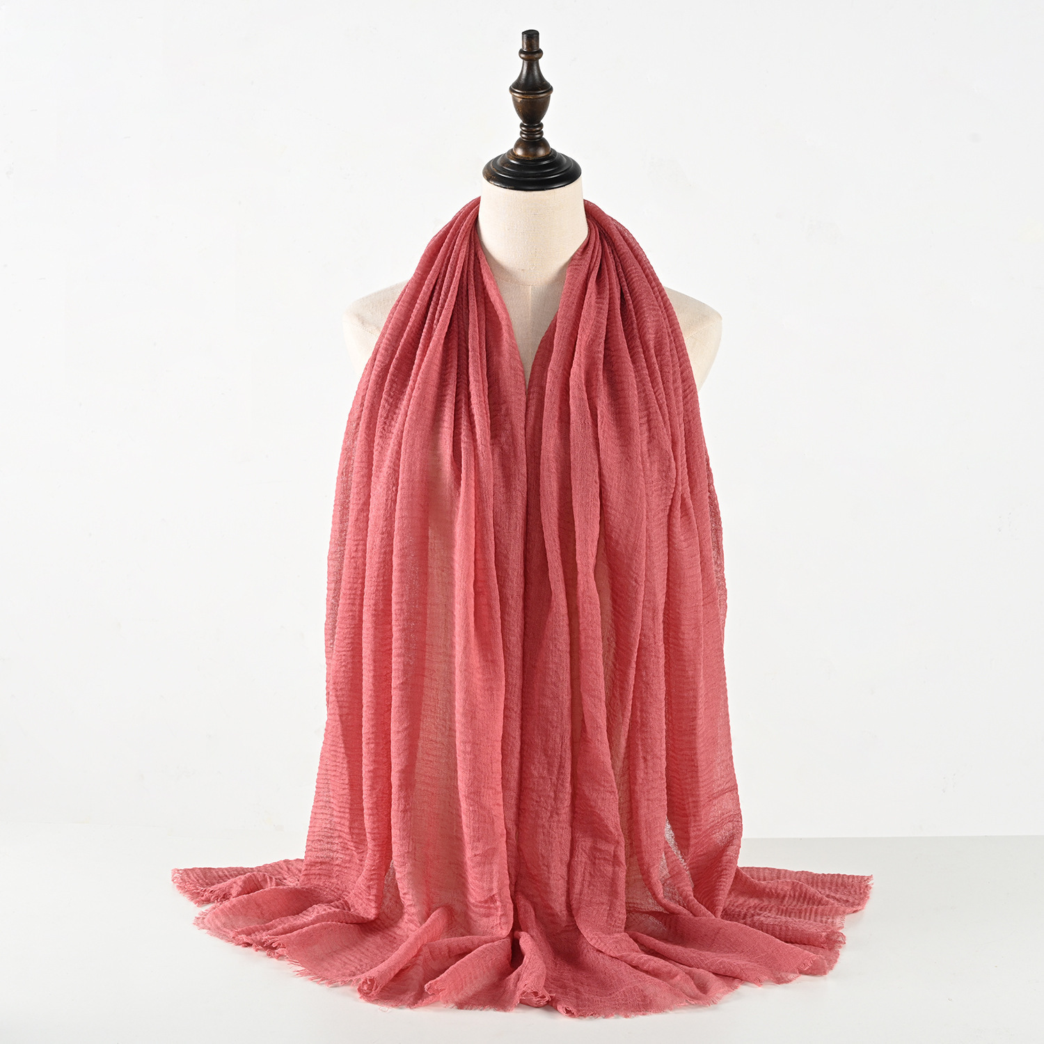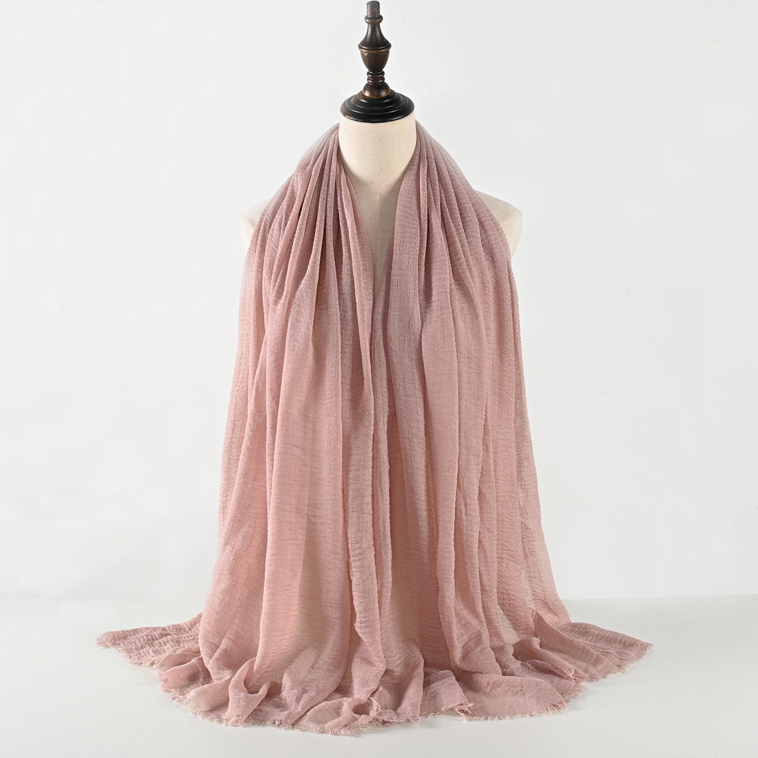 주름진 단색 면 및 린넨 스카프, 주름진 모피 가장자리, 대형 거즈 스카프, 자외선 차단 터번, 제조업체 도매, 다용도스토어 가기