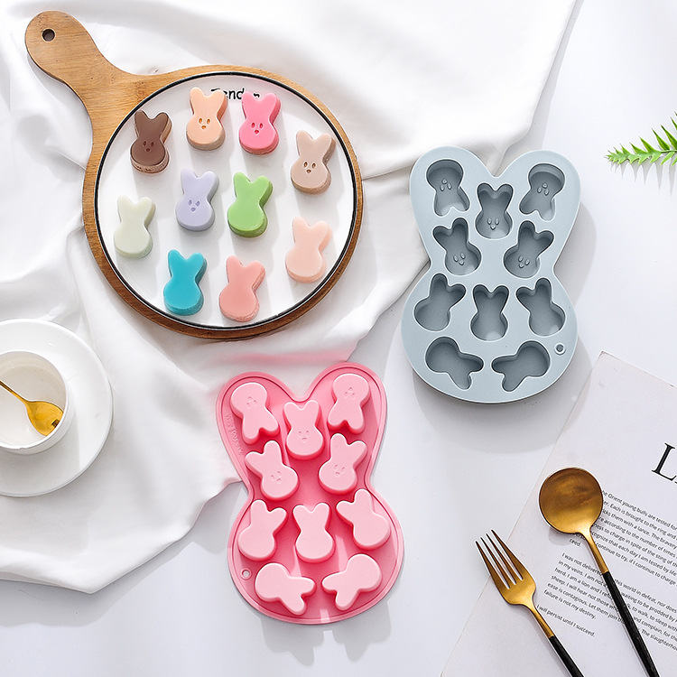 재고 10 심지어 2 다른 토끼 실리콘 케이크 몰드 베이킹 장식 사탕 드롭 접착제 초콜릿 몰드스토어 가기