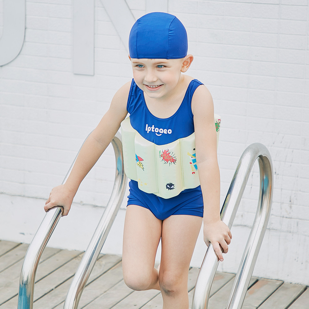 2023 새로운 소년 부력 수영복 맞춤형 중소 어린이 반팔 반바지 친환경 트레이닝 어린이 수영복스토어 가기