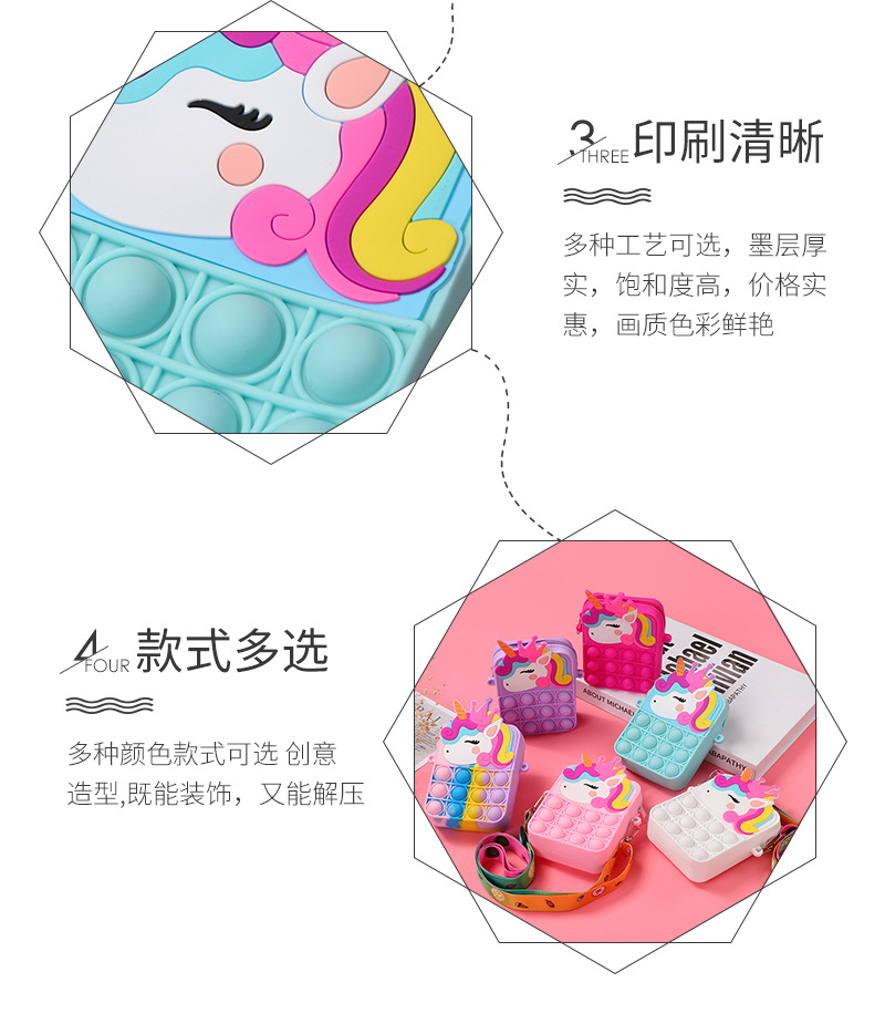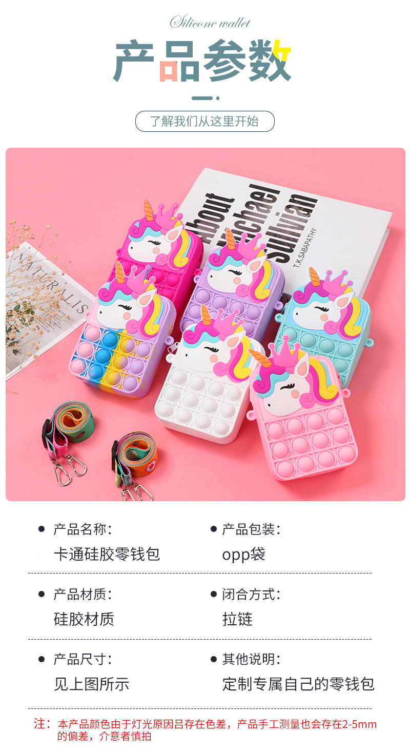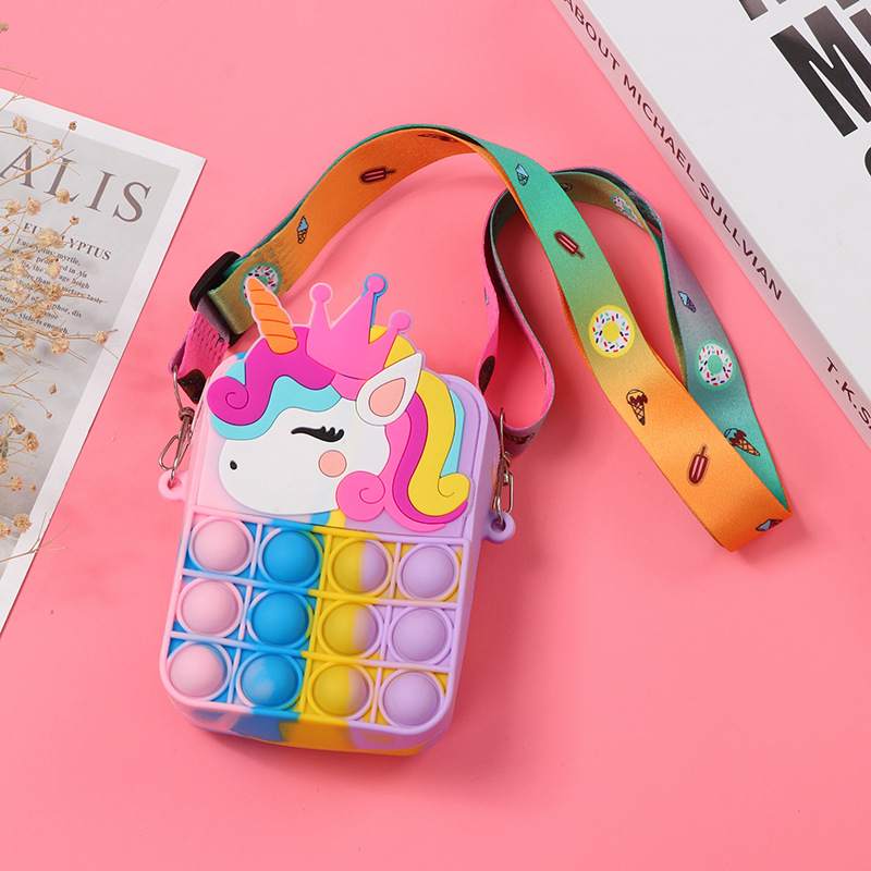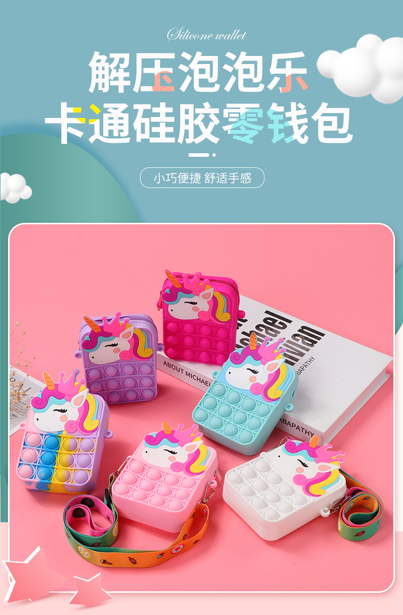 뱅가드 백 새로운 어린이 실리콘 가방 눌러 유니콘 어린이 동전 지갑 귀여운 소녀 숄더백