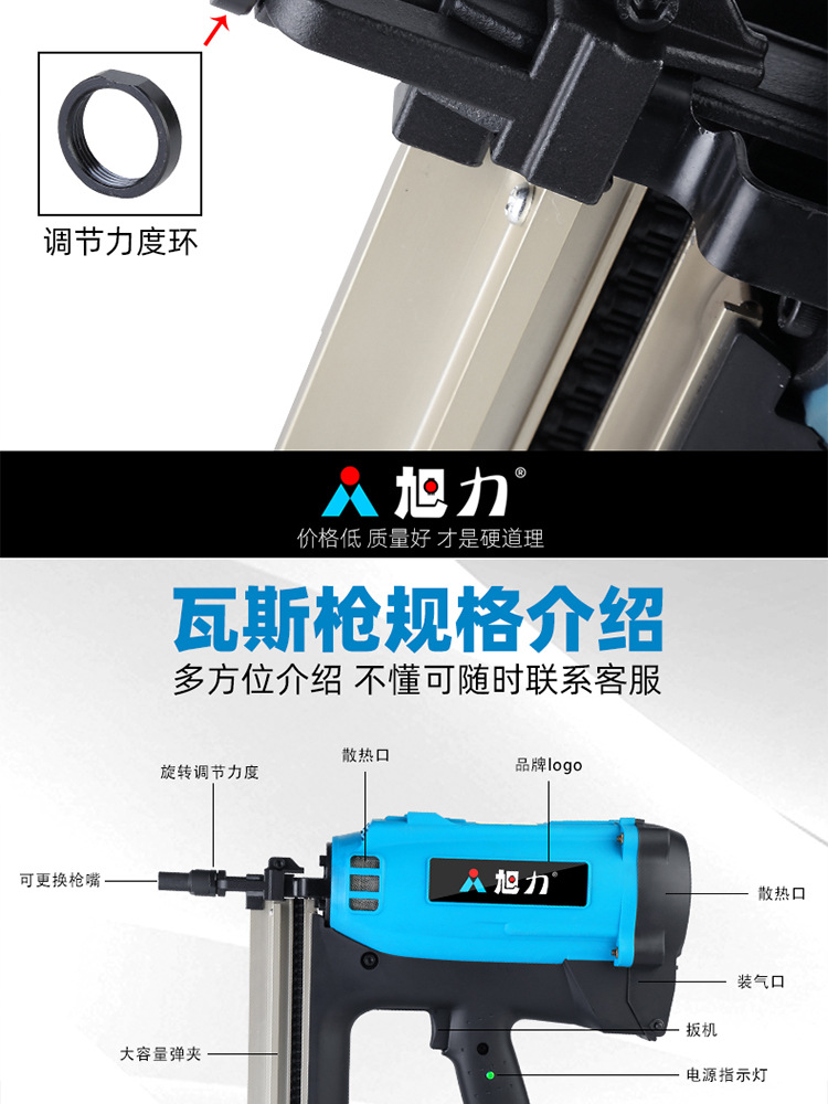 Xuli 다목적 가스 네일 건 물 및 전기 도어 및 창문 콘크리트 천장 공압 네일 건용 특수 전기 스틸 네일 건