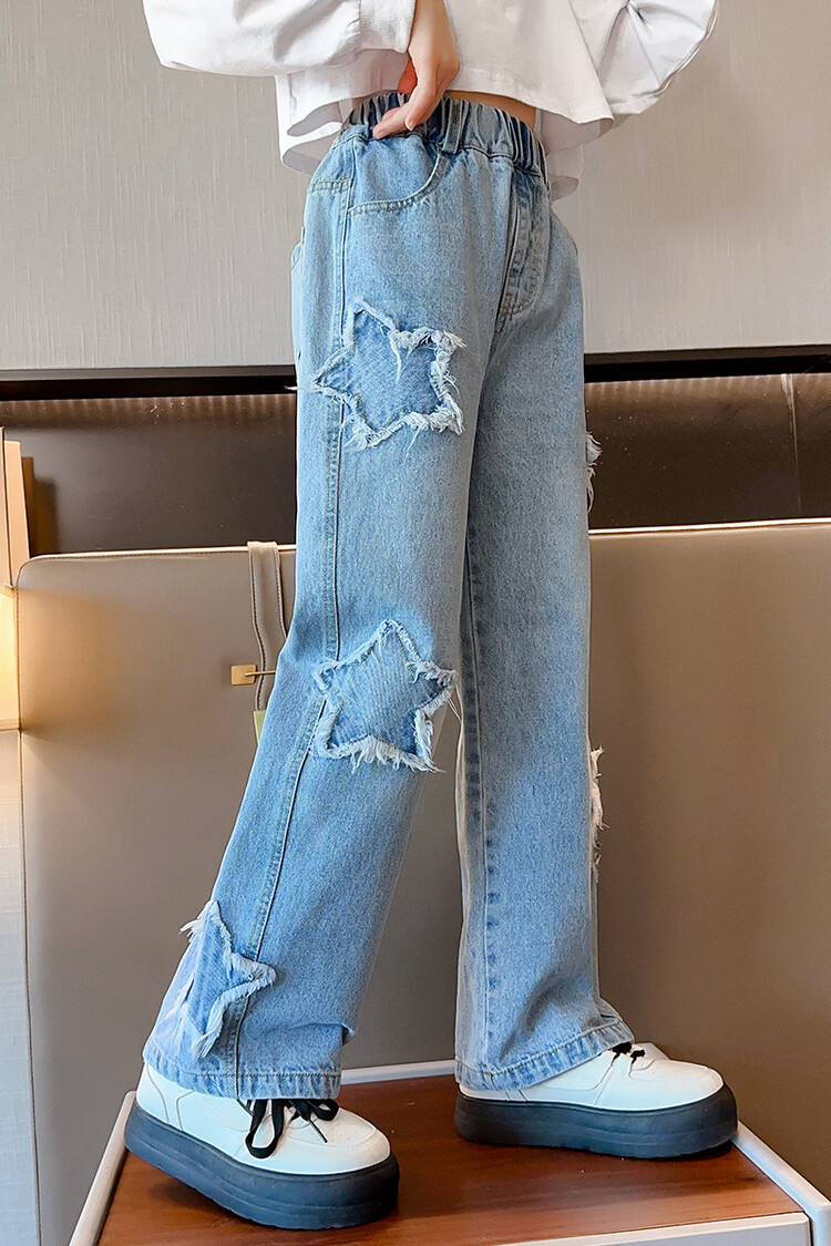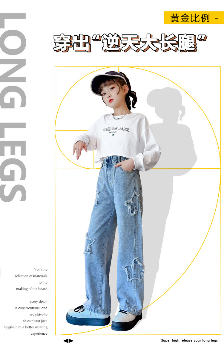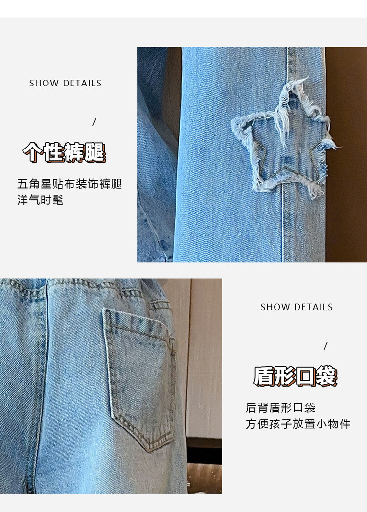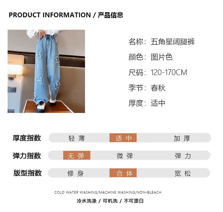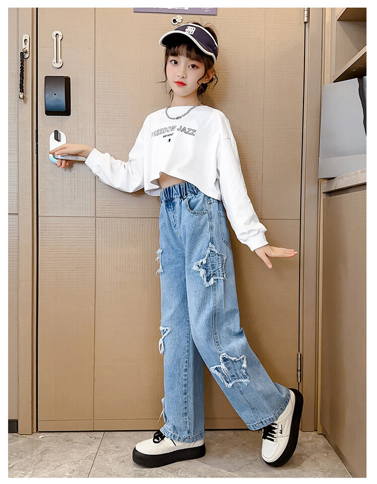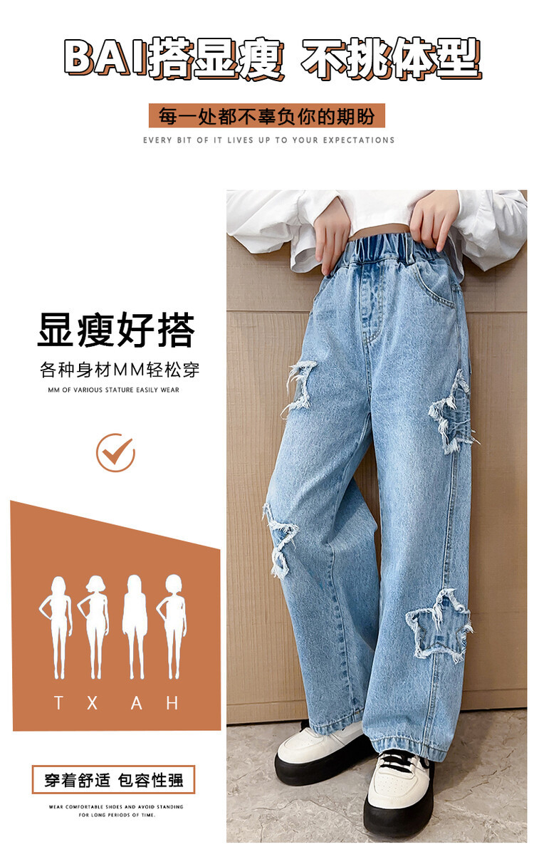 여아 와이드 팬츠 2023 스트레이트 캐주얼 롱 팬츠 아동용 중대형 어린이 별무늬 인기 데님 팬츠 한국 스타일 아동복스토어 가기