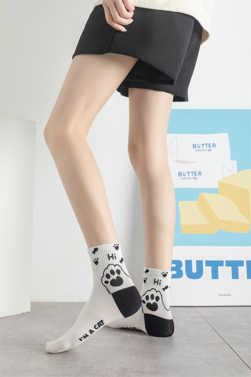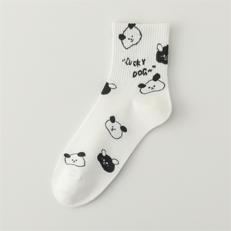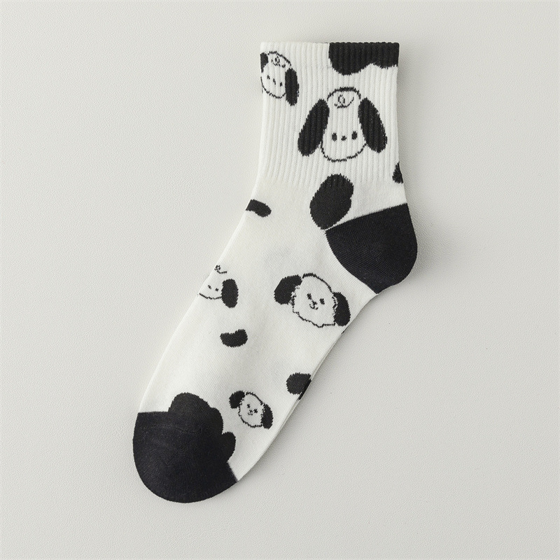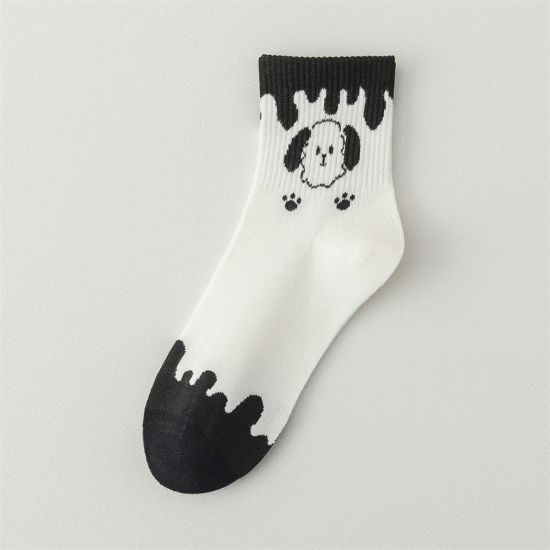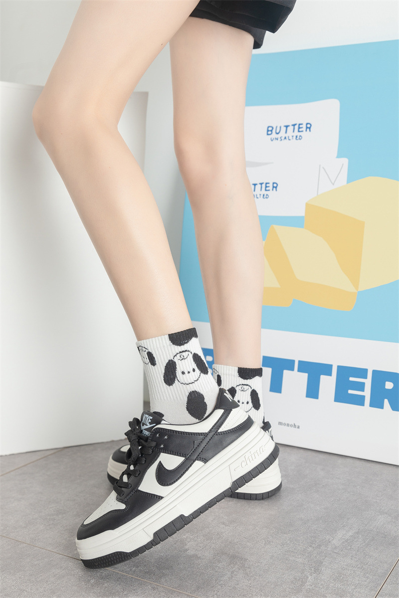 흑인과 백인 동물 강아지 양말 여자의 중간 면 순수 인 한국 귀여운 만화 일본 학생 거리 스타킹