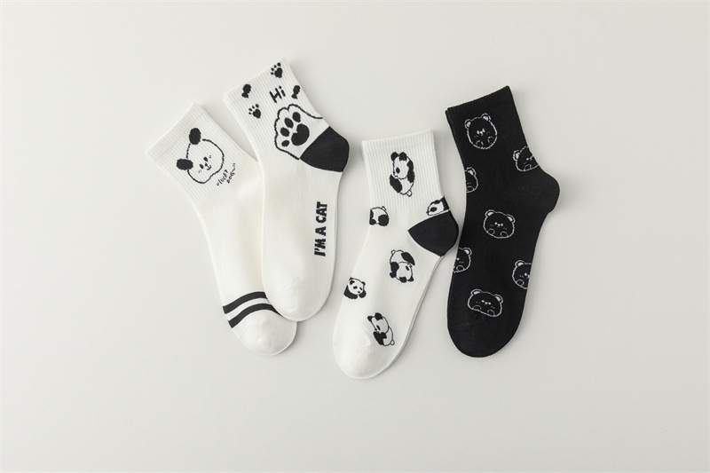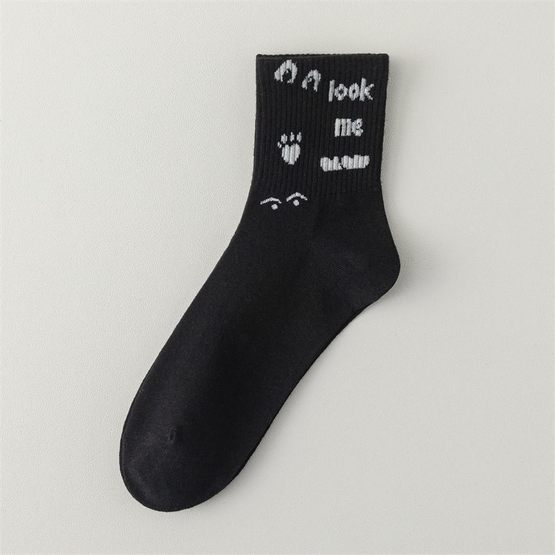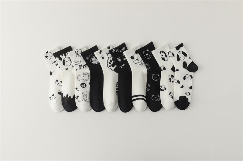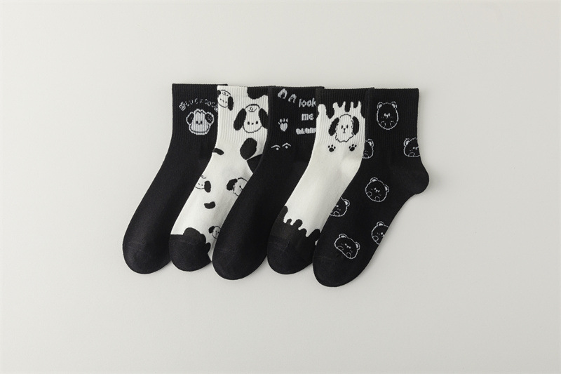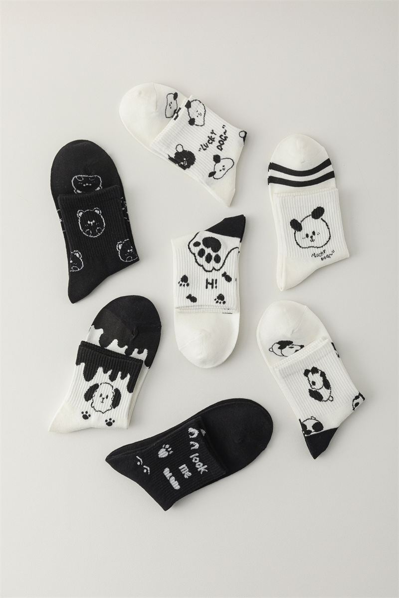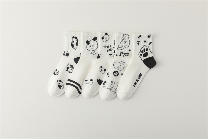 흑인과 백인 동물 강아지 양말 여자의 중간 면 순수 인 한국 귀여운 만화 일본 학생 거리 스타킹