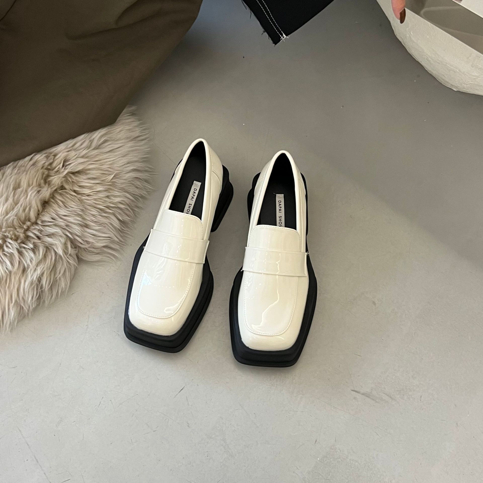 2025 영국 스타일 두꺼운 밑창 봄, 가을 스퀘어 토 복고풍 로퍼 여성용 프렌치 플랫폼 힐 슬립 온 여성용 작은 가죽 신발스토어 가기