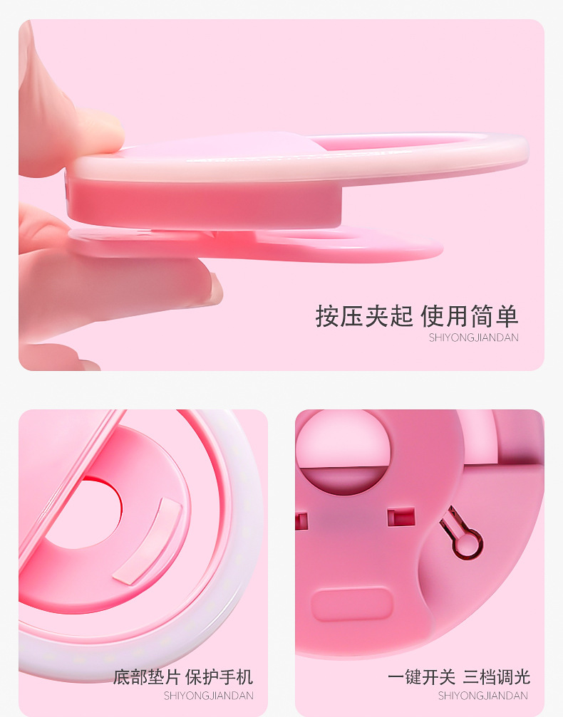 업그레이드된 Douyin 국경을 넘는 인기 원형 조명, 라이브 방송 셀카 뷰티 휴대폰 보조 조명, USB 충전식 휴대용 조명