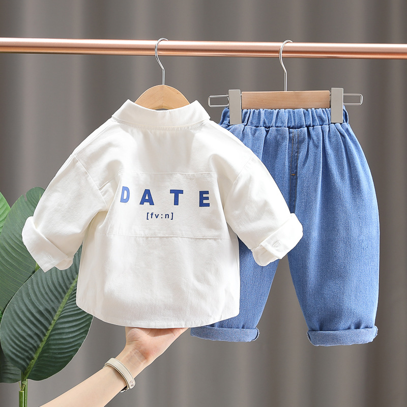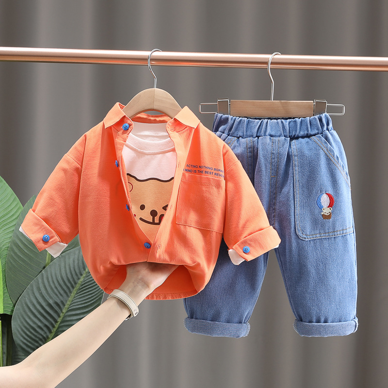 소년 '봄과 가을 원피스 영어 날짜 셔츠 3 종 세트 어린이 봄 원피스 만화 겉옷 긴 소매 아기 캐주얼 세트