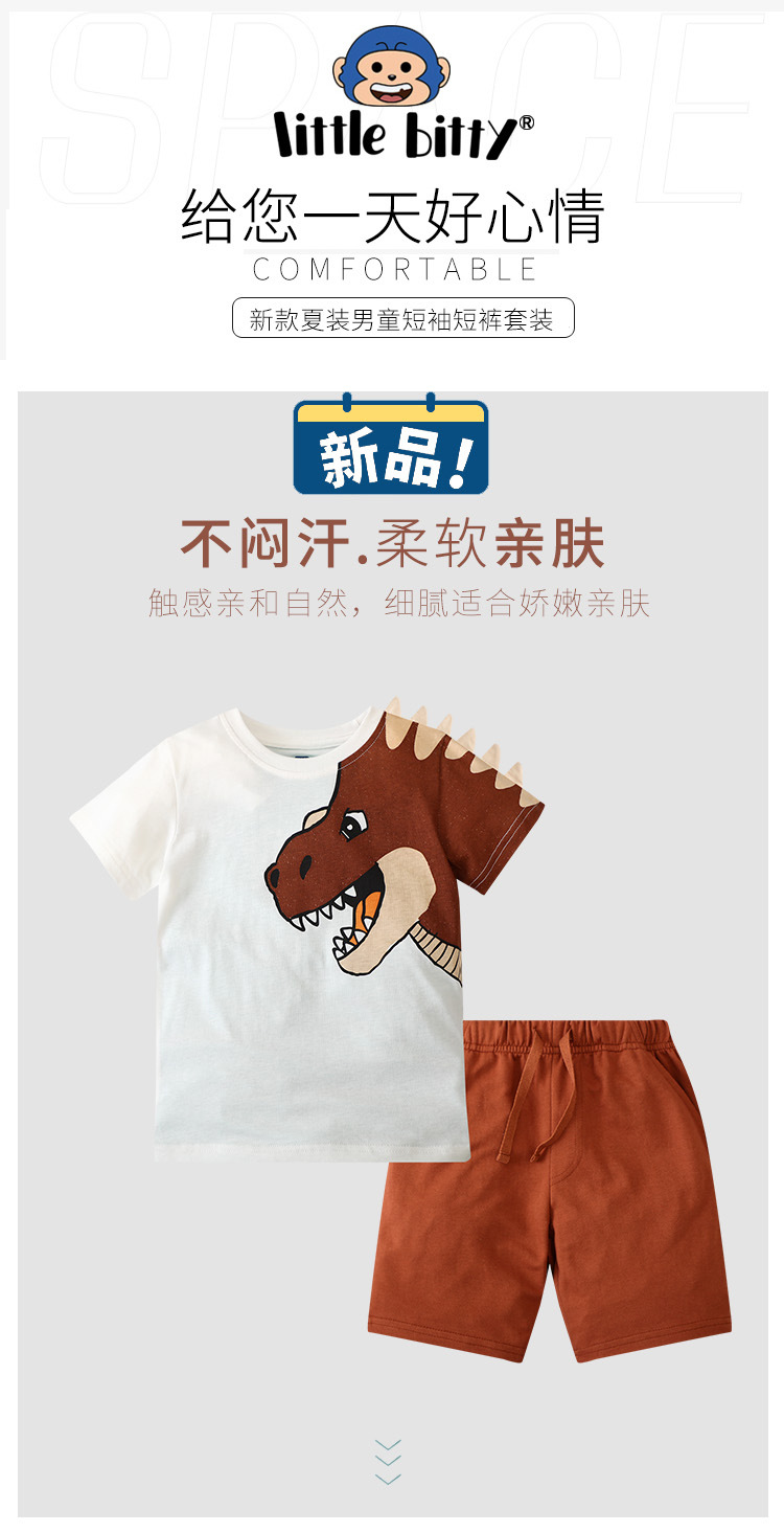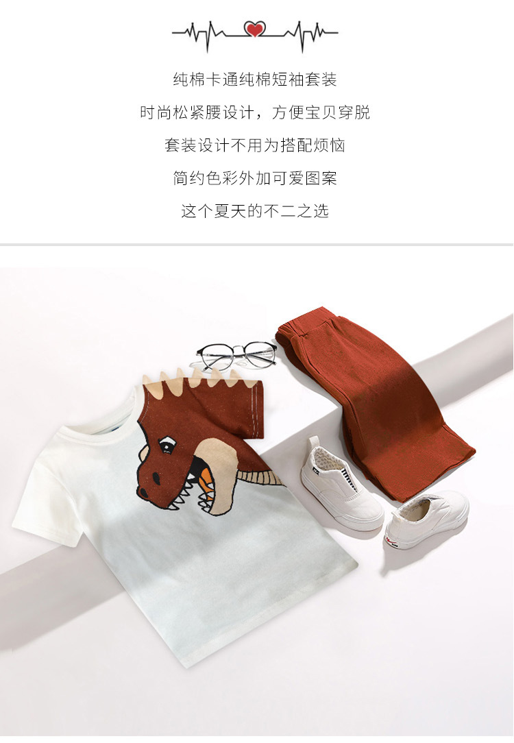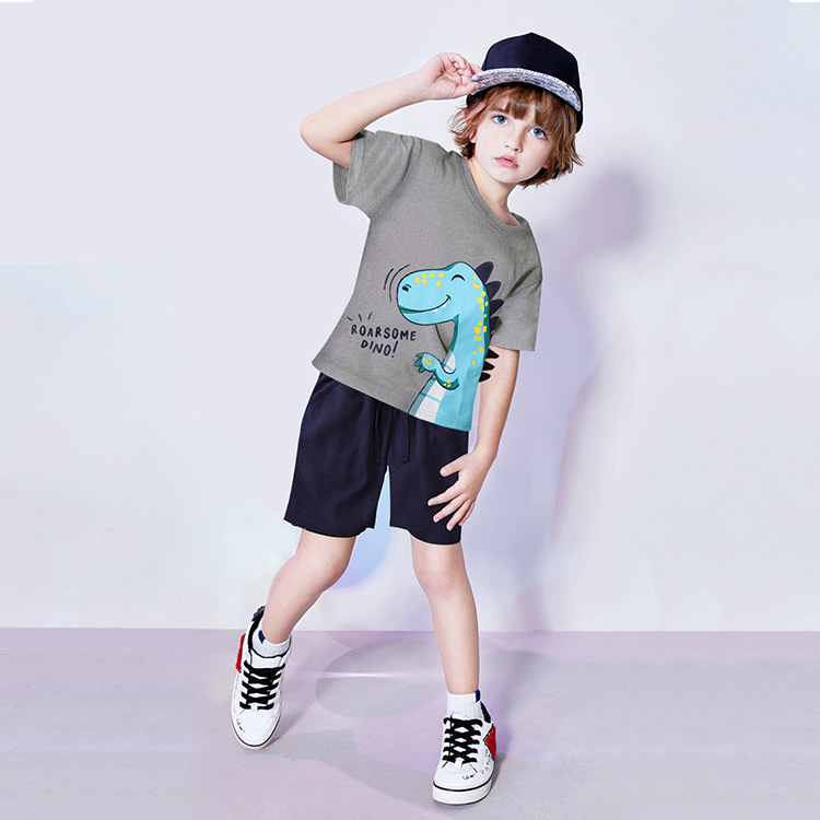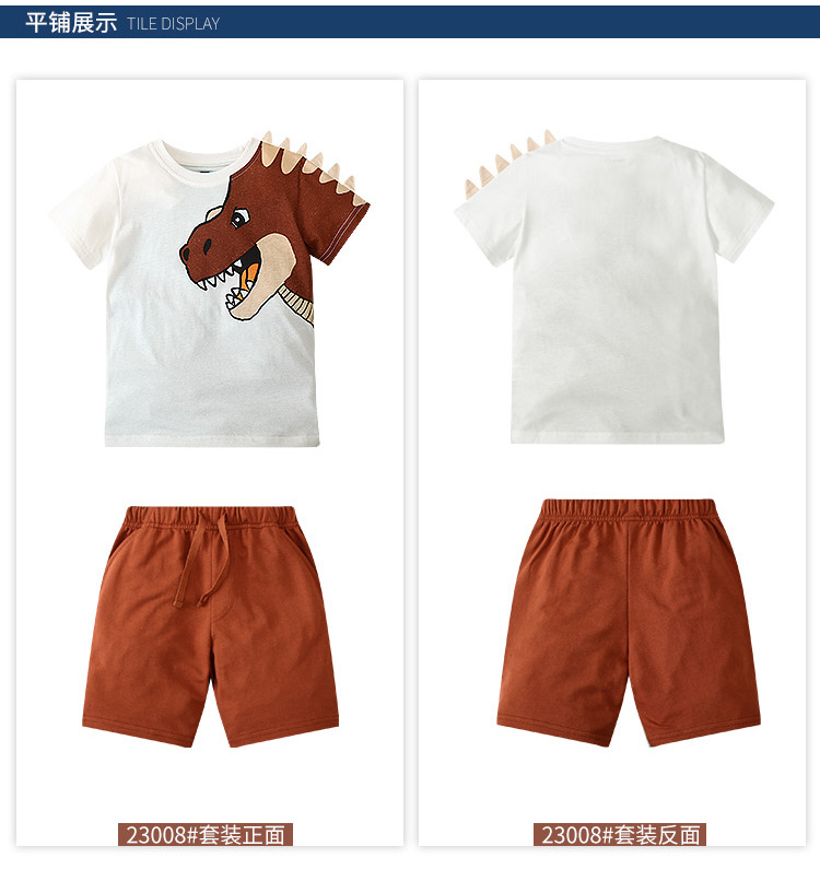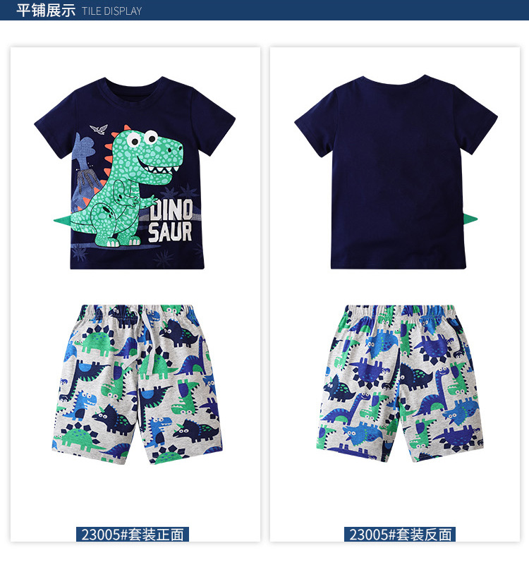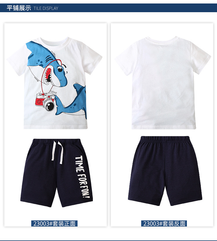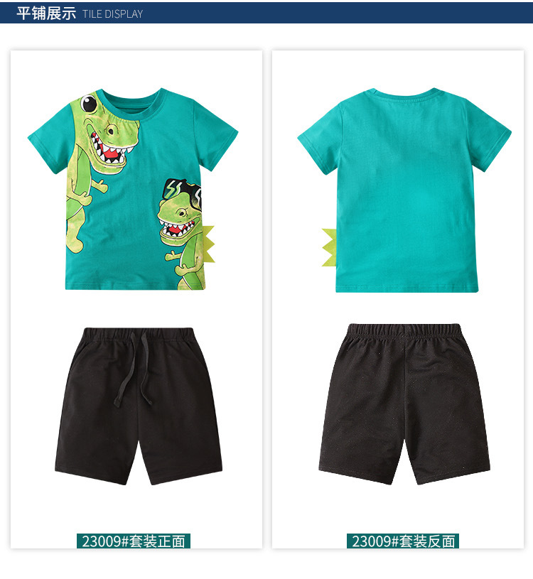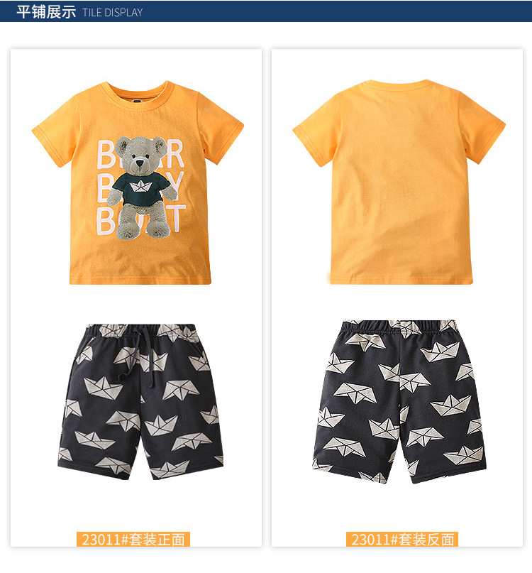 여름 남아 스포츠 티셔츠 투피스 세트 아동 유럽 및 미국 스타일 25 니트 반팔 반바지 세트 아동복 도매 귀여운