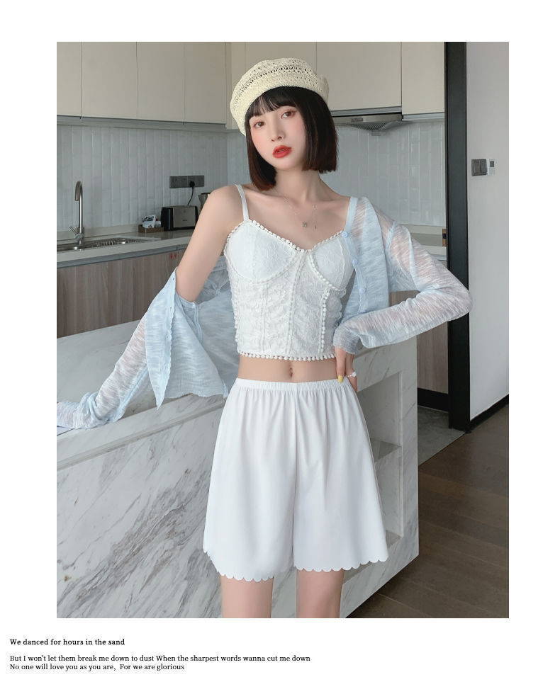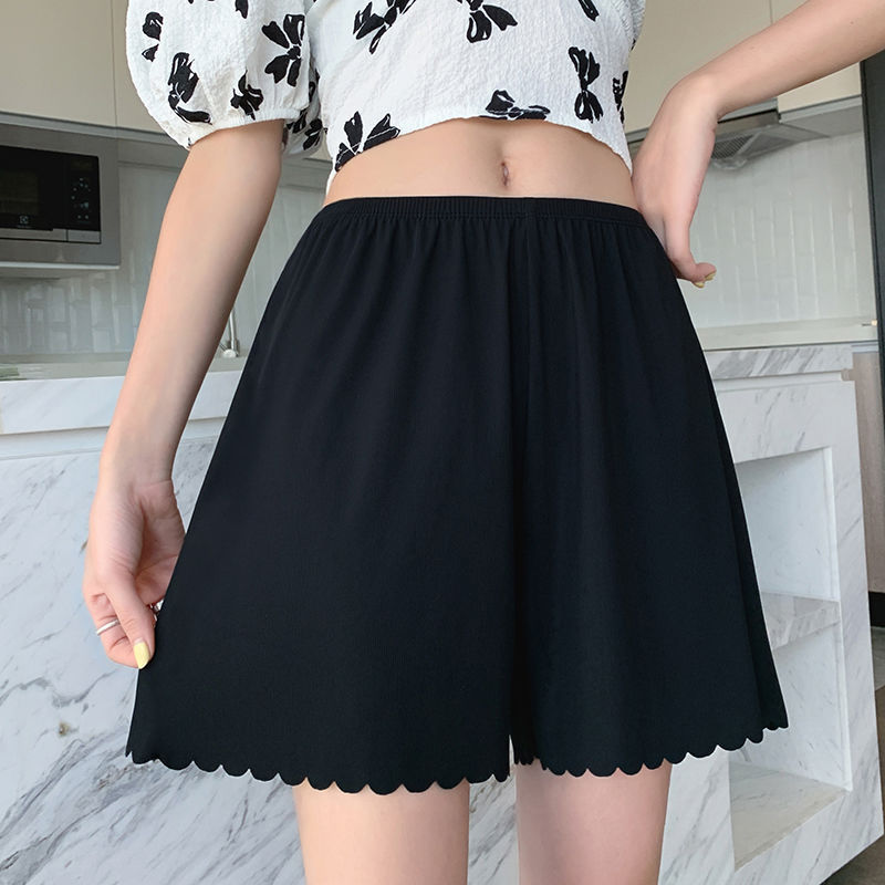 안전 바지 여자의 여름 얇은 눈부심 방지 레깅스 아이스 실크 원활한 비 컬링 느슨한 겉옷 플러스 사이즈 3 점 반바지