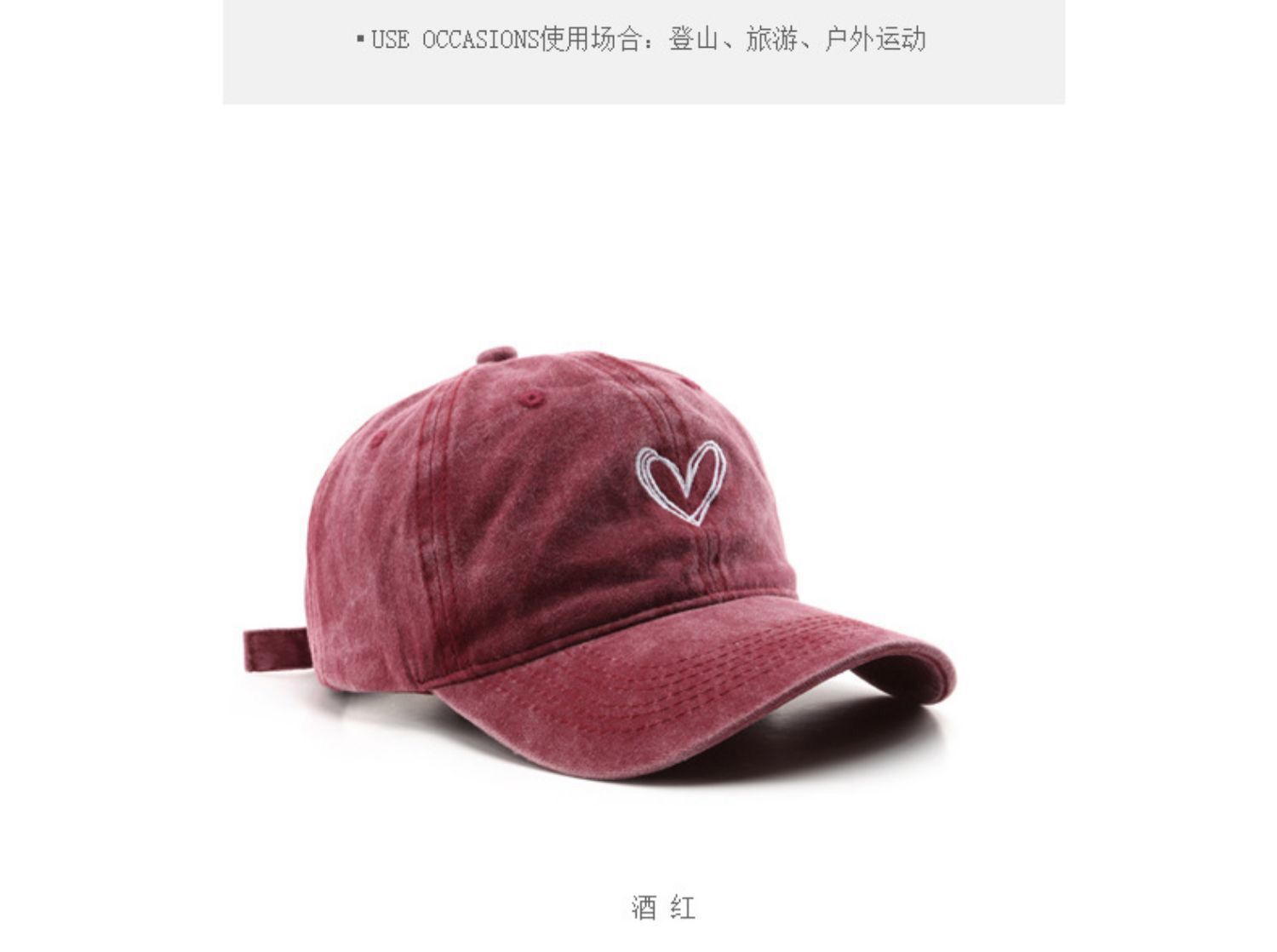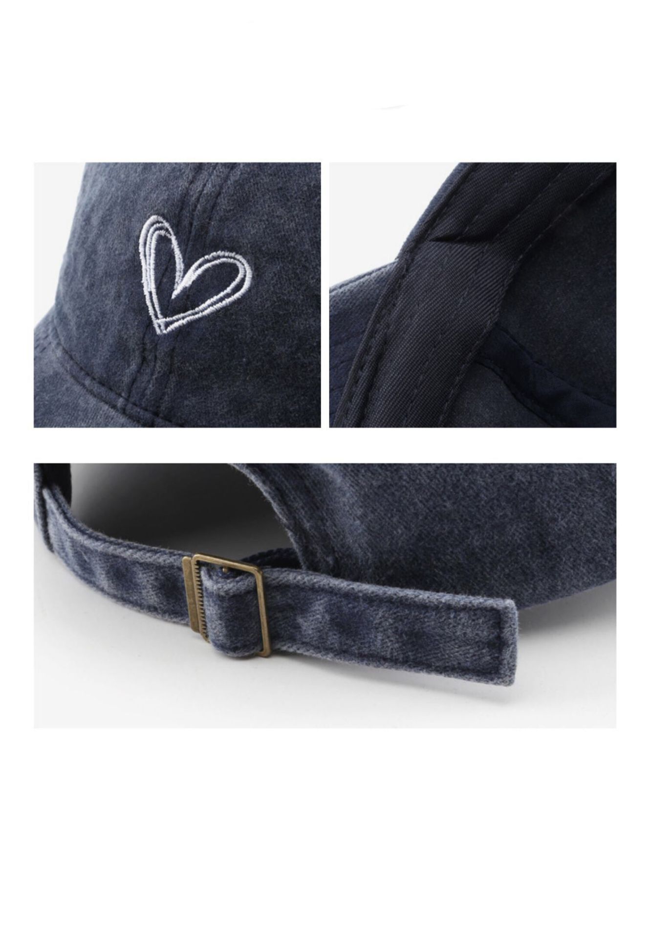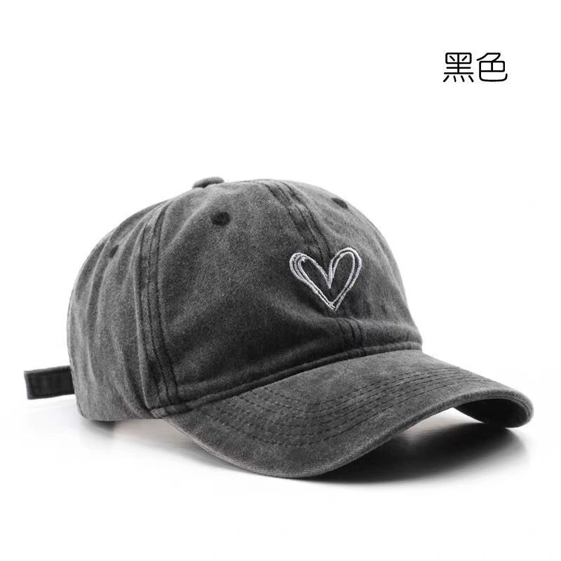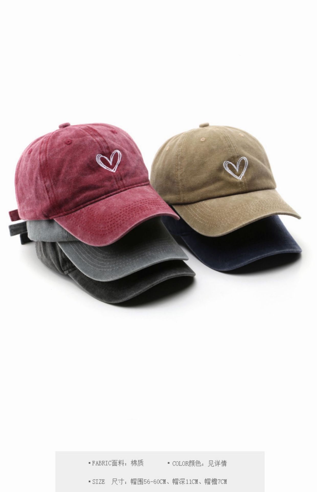 올 매치 하트 자수 워싱 올드 봄 여름 야구 모자 여성용 한국식 얇은 커플 소프트 탑 캡 남성용 트렌디스토어 가기