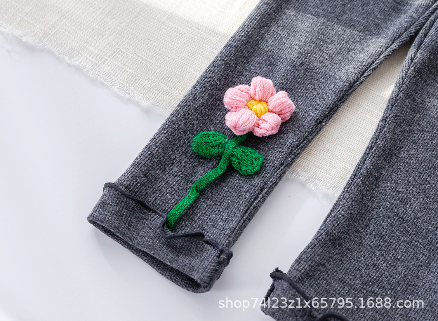 소녀의 봄 새로운 도착 2024 레깅스 3 차원 꽃 소녀 아기의 세련된 올 매치 바지스토어 가기