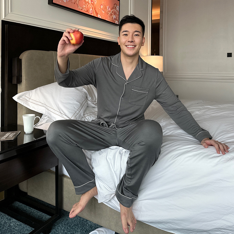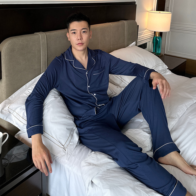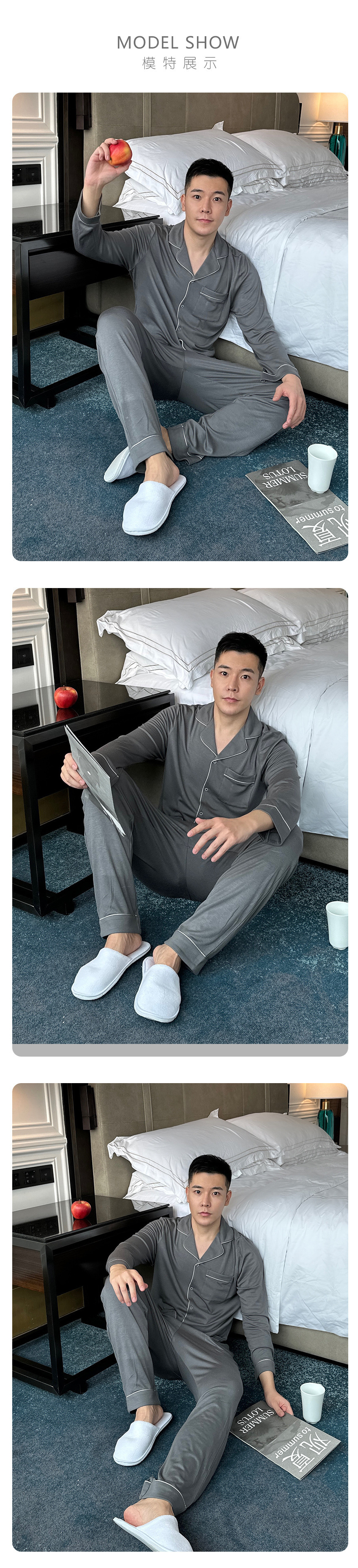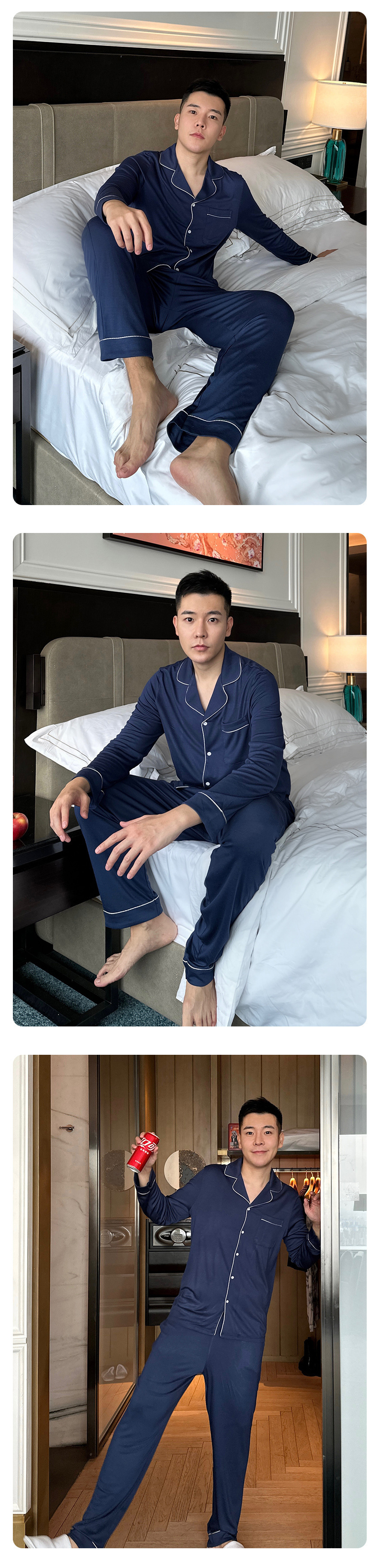 2023 새로운 남성 캐시미어 단백질 항균 슬리브 모달 긴 소매 바지 편안한 홈웨어 세트스토어 가기