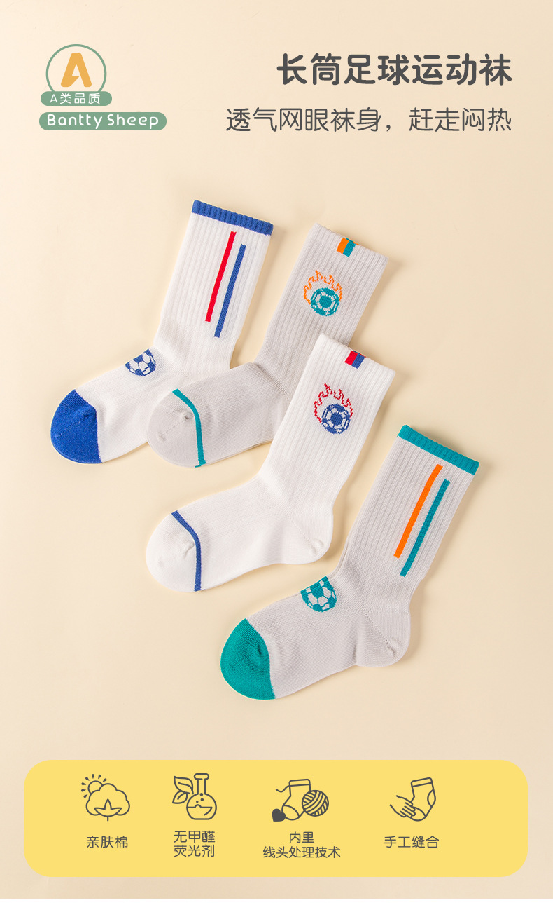 배티 램 어린이 양말 23 년 봄과 여름 긴 튜브 빗질 면 스포츠 양말 소년 땀 흡수 뼈없는 스포츠 양말