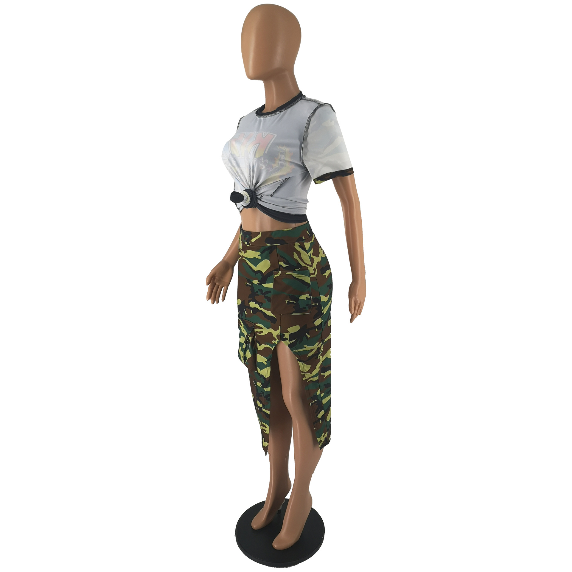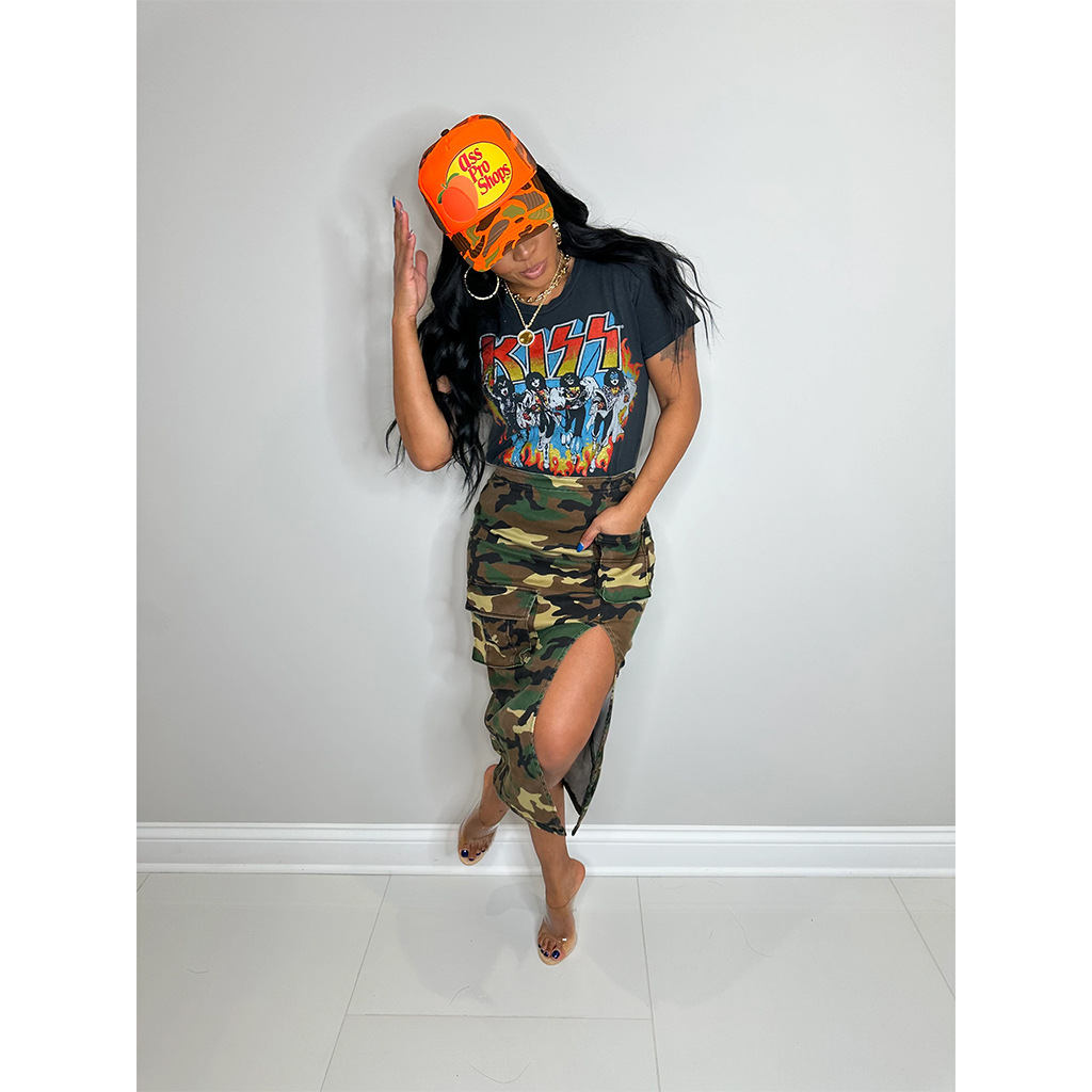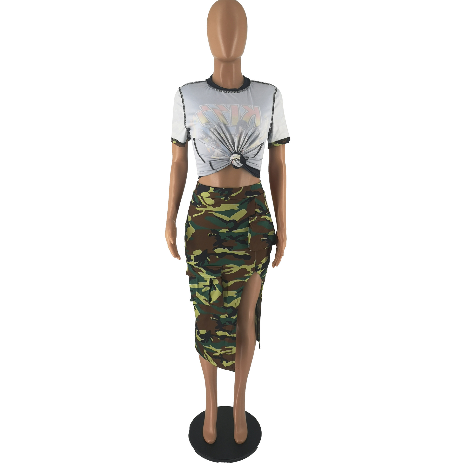 FA8331 유럽과 미국 스타일 크로스 보더 스트리트 트렌드 여성 위장 힙 미니 스커트