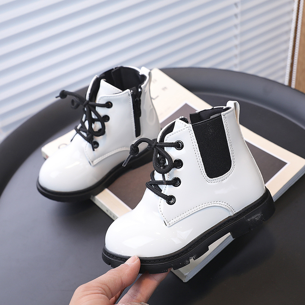 소년 마틴 부츠 PU 가죽 어린이 부츠 대외 무역 2025 봄, 가을 소녀 솔리드 컬러 블랙 부츠 드롭 배송