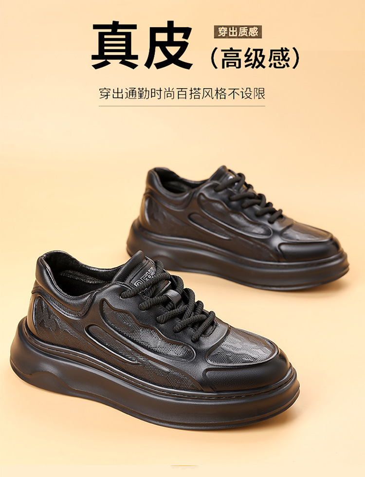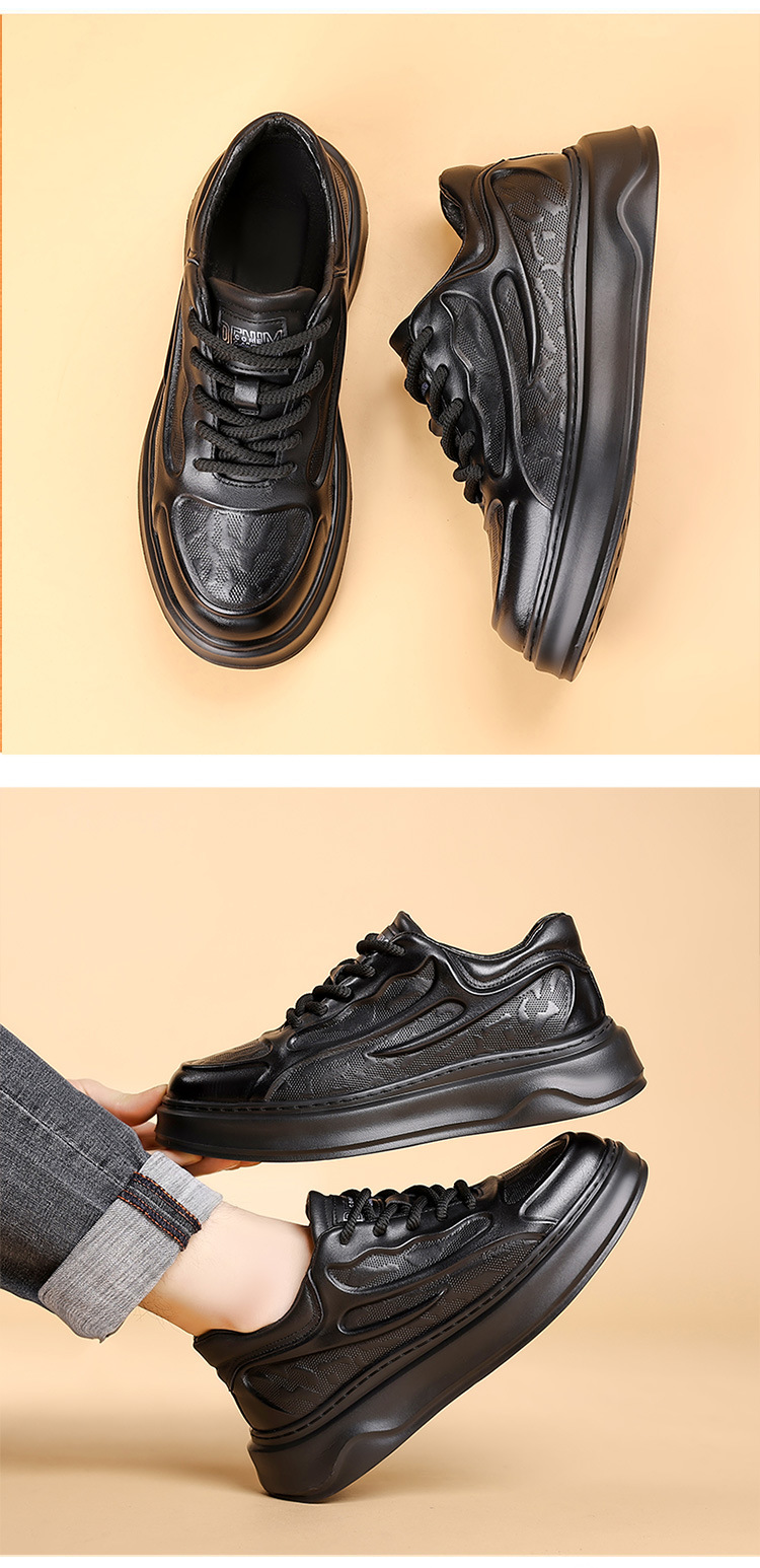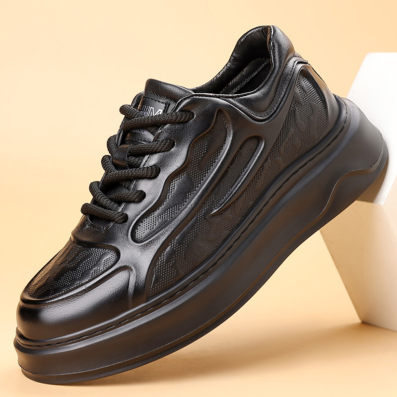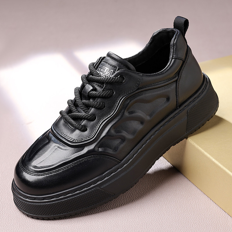 고품질 천연 가죽 엠보싱 남성 신발, 두꺼운 밑창 운동화, 가을 겨울 신상품, 가볍고 통기성이 좋은 부드러운 밑창 스포츠 캐주얼 신발스토어 가기