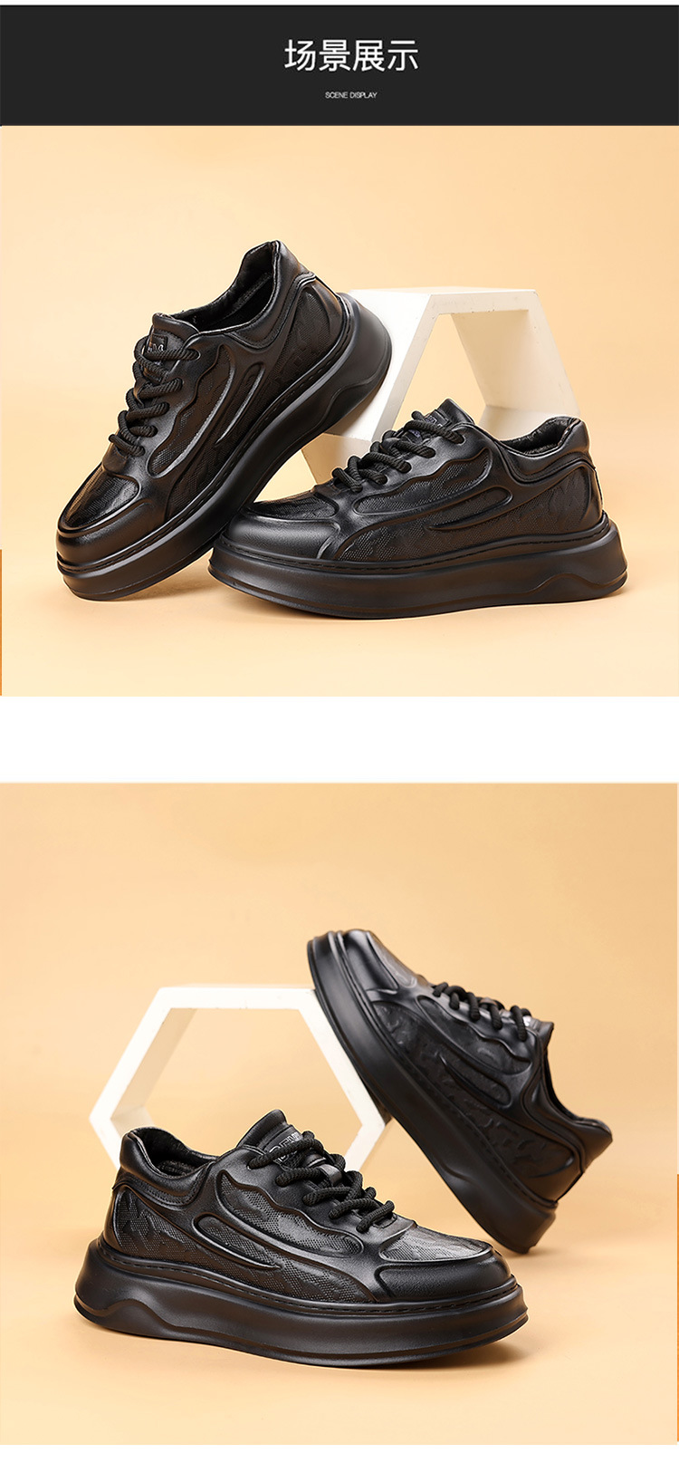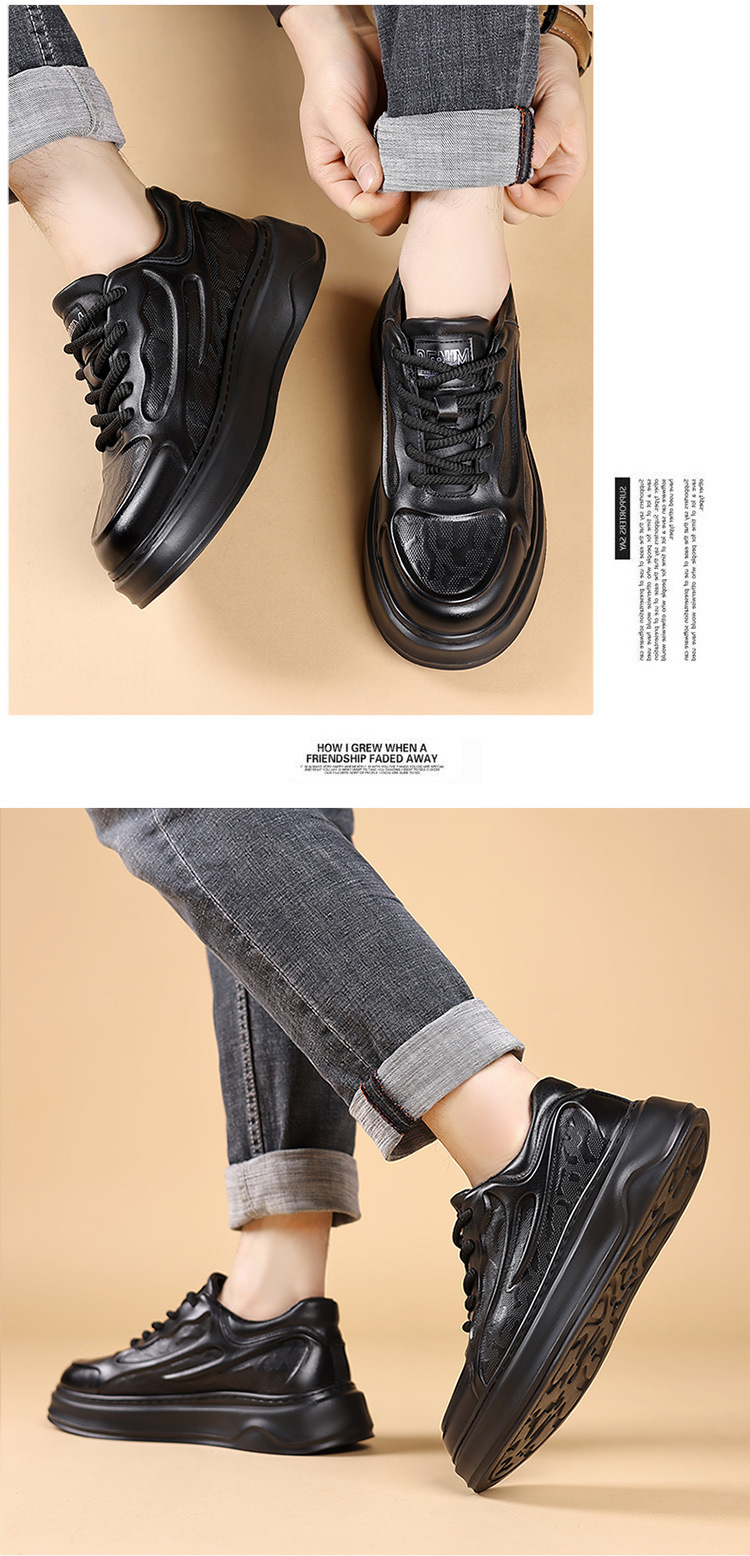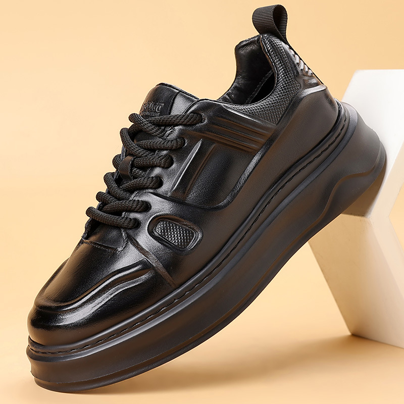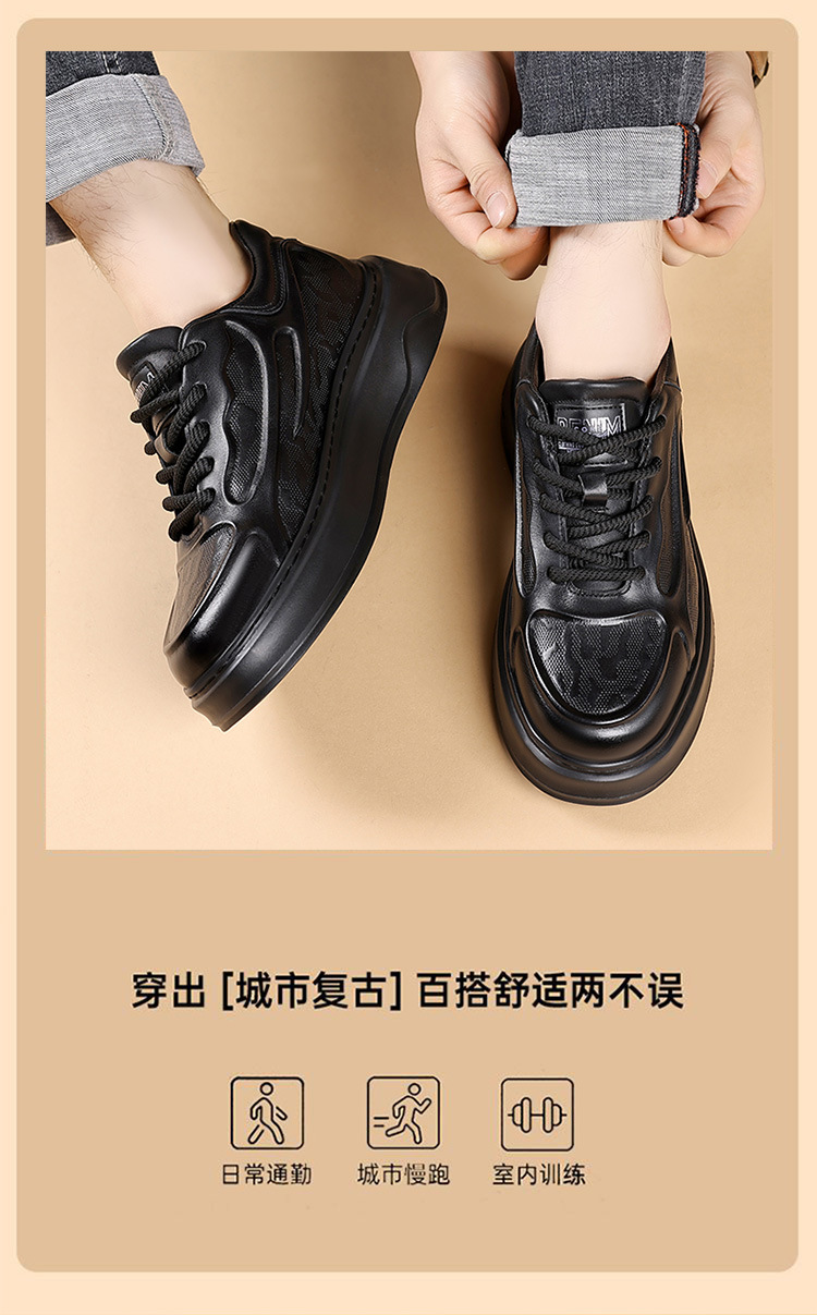 고품질 천연 가죽 엠보싱 남성 신발, 두꺼운 밑창 운동화, 가을 겨울 신상품, 가볍고 통기성이 좋은 부드러운 밑창 스포츠 캐주얼 신발스토어 가기