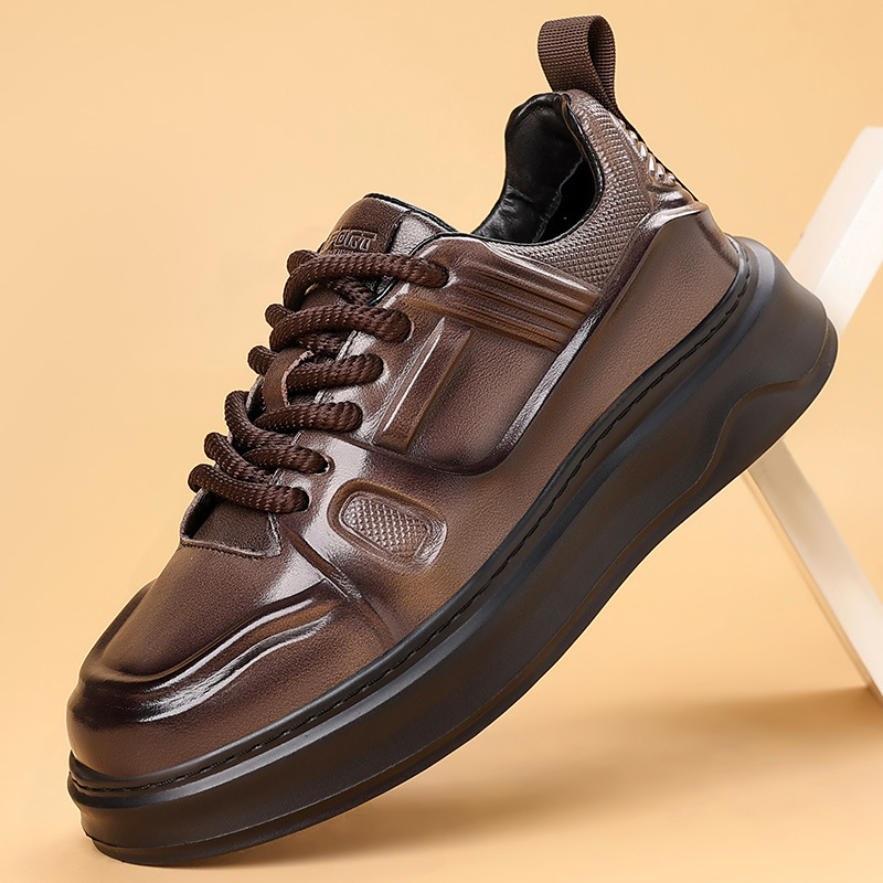 고품질 천연 가죽 엠보싱 남성 신발, 두꺼운 밑창 운동화, 가을 겨울 신상품, 가볍고 통기성이 좋은 부드러운 밑창 스포츠 캐주얼 신발