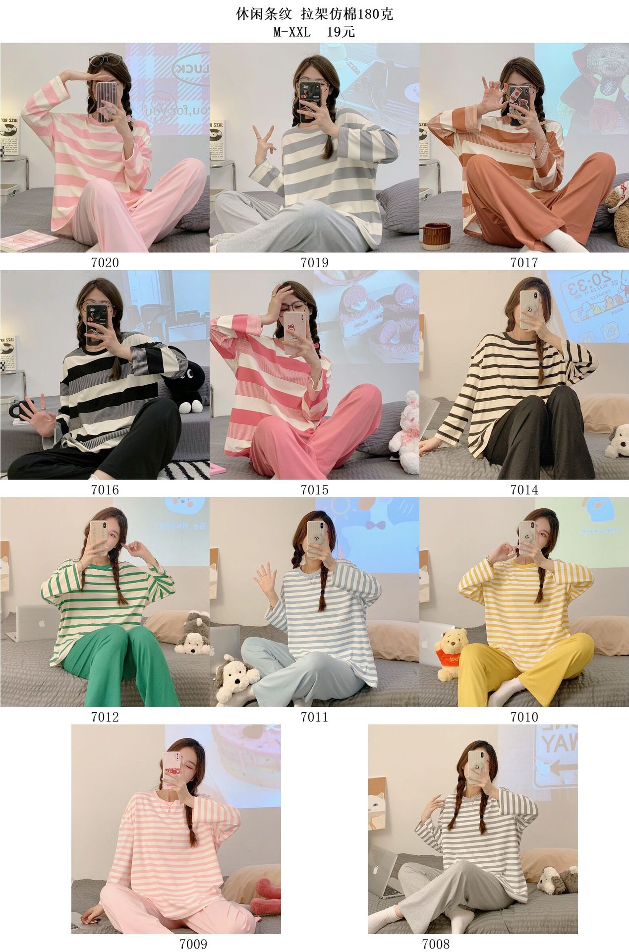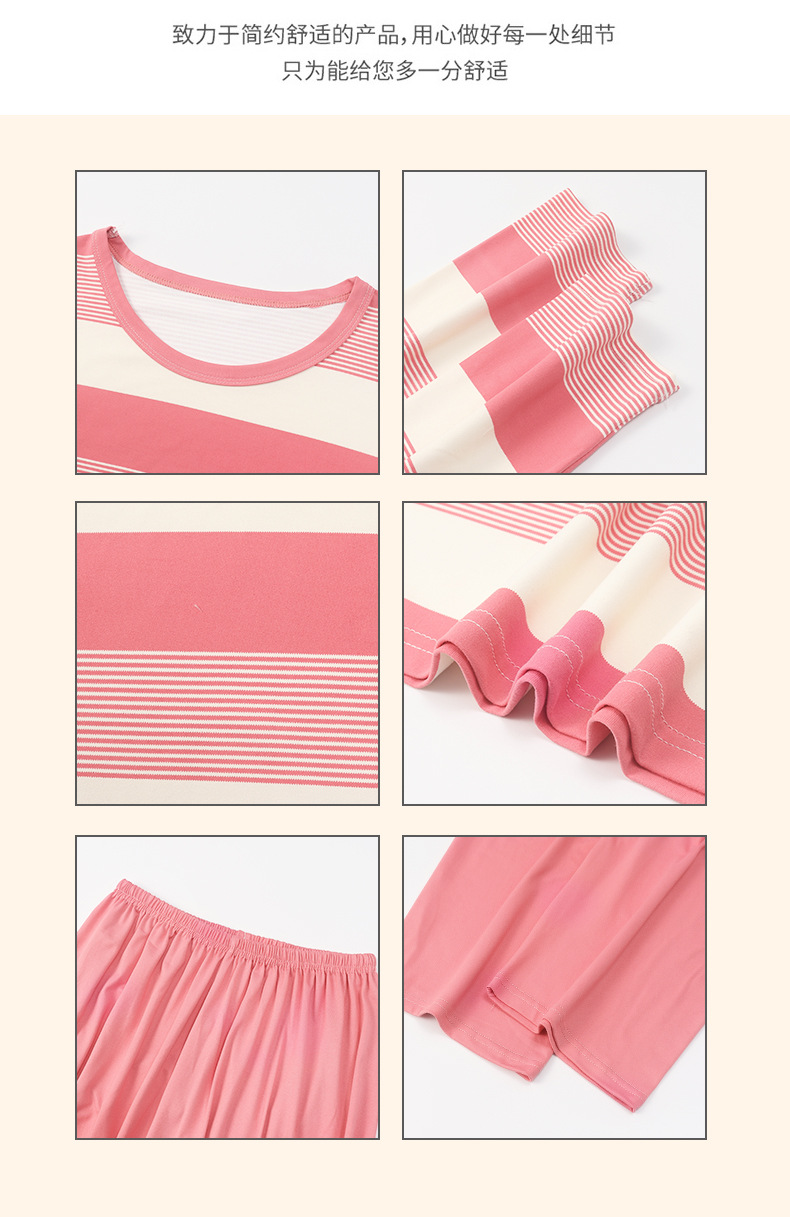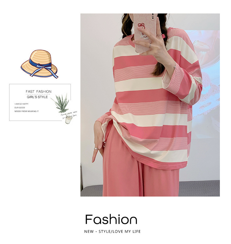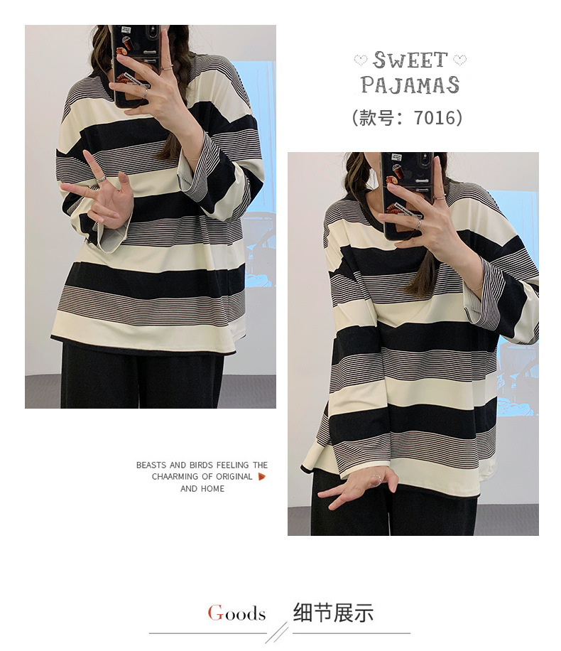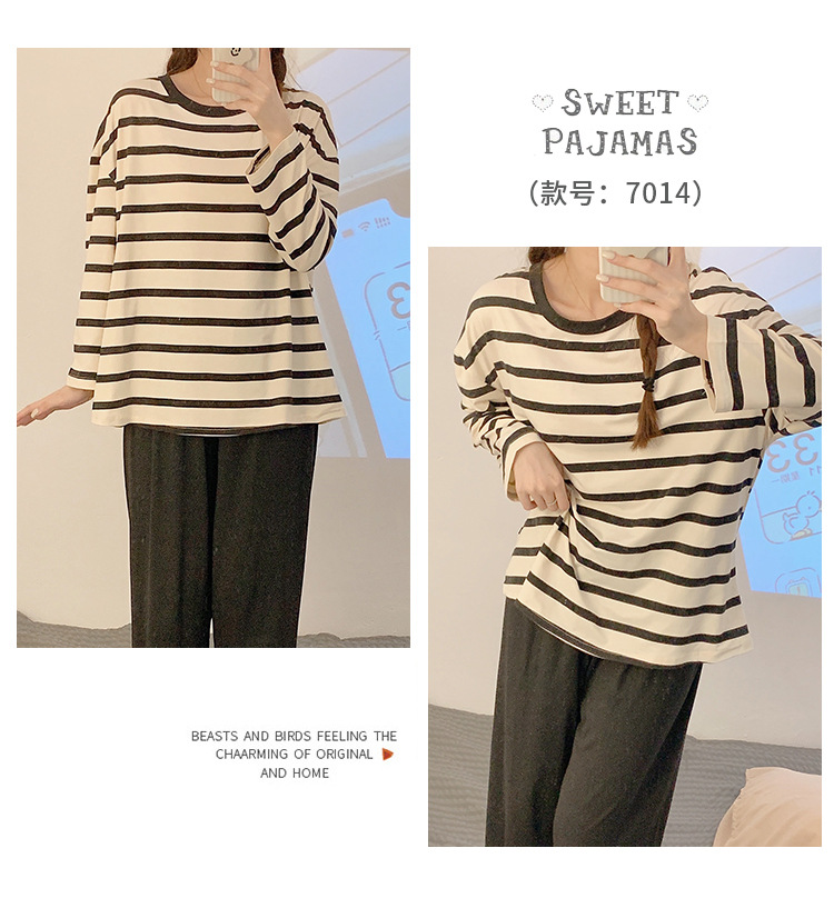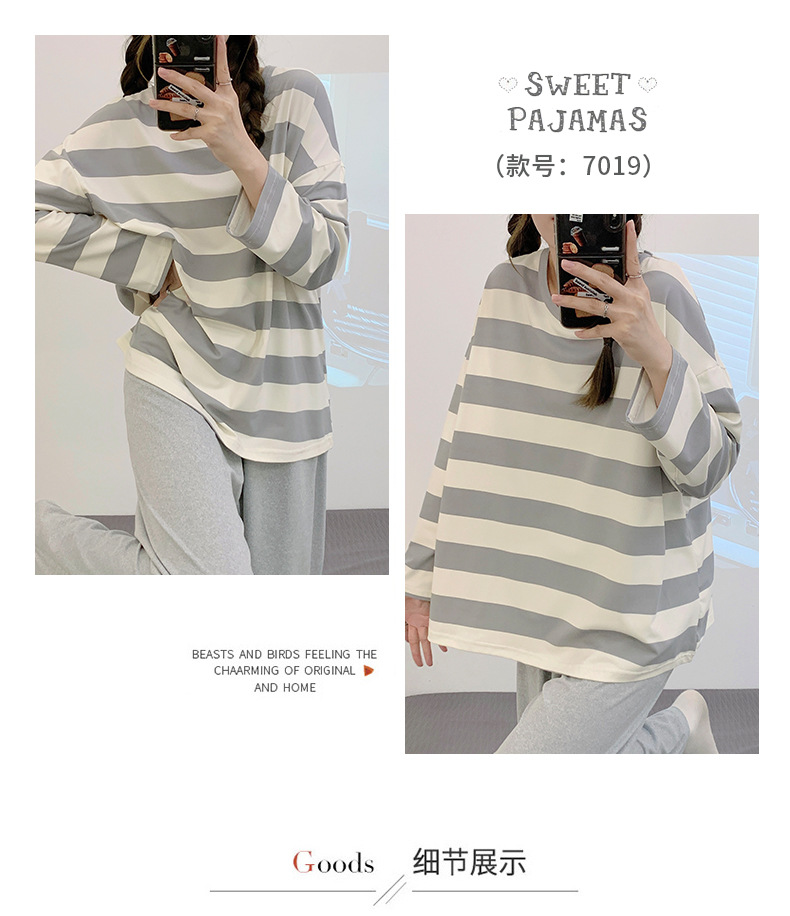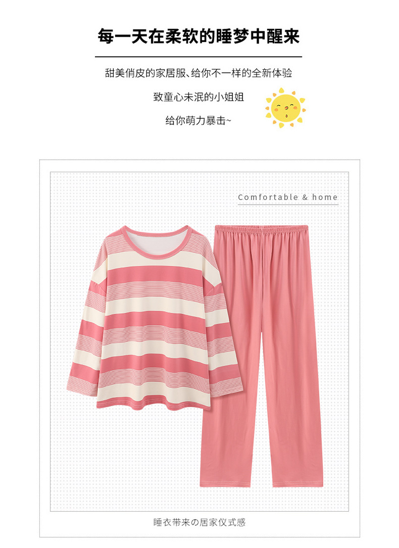 새로운 잠옷 여성용 긴팔 모조 면 봄과 가을 세트 느슨한 일본식 게으른 바지 가정복 스트라이프 캐주얼 투피스 세트스토어 가기