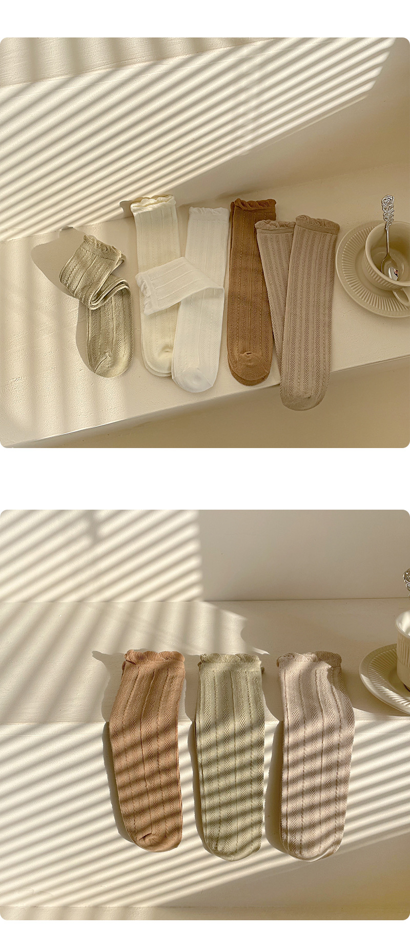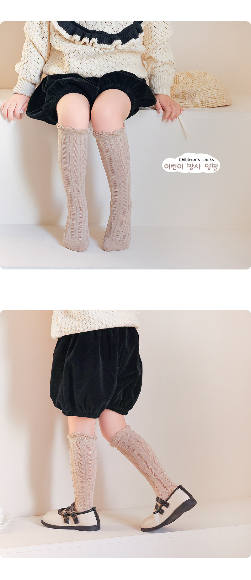 어린이 양말 느슨한 상단 파일 양말 2023 여름 새로운 메쉬 소녀 송아지 양말 단색 얇은 레이스 그물 배치스토어 가기