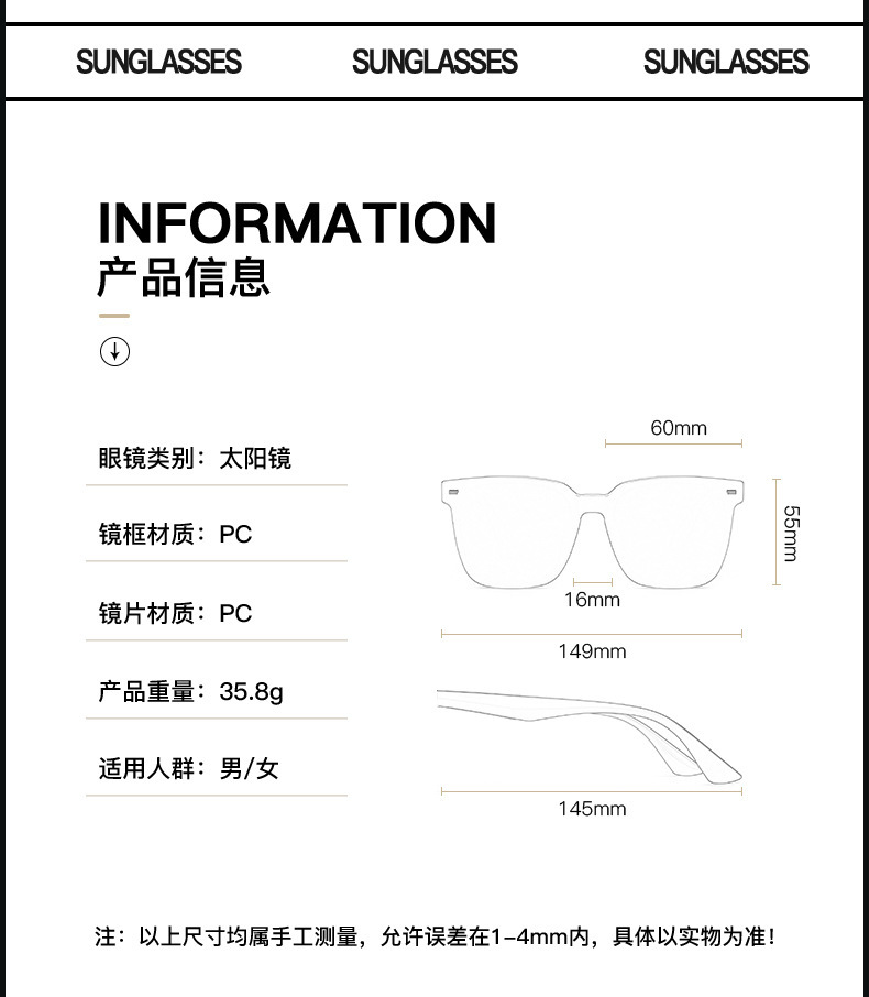 유럽과 미국 레트로 원피스 선글라스 여성용 새로운 자외선 차단 선글라스 GM 같은 스타일 원피스 안경 남성용 3051