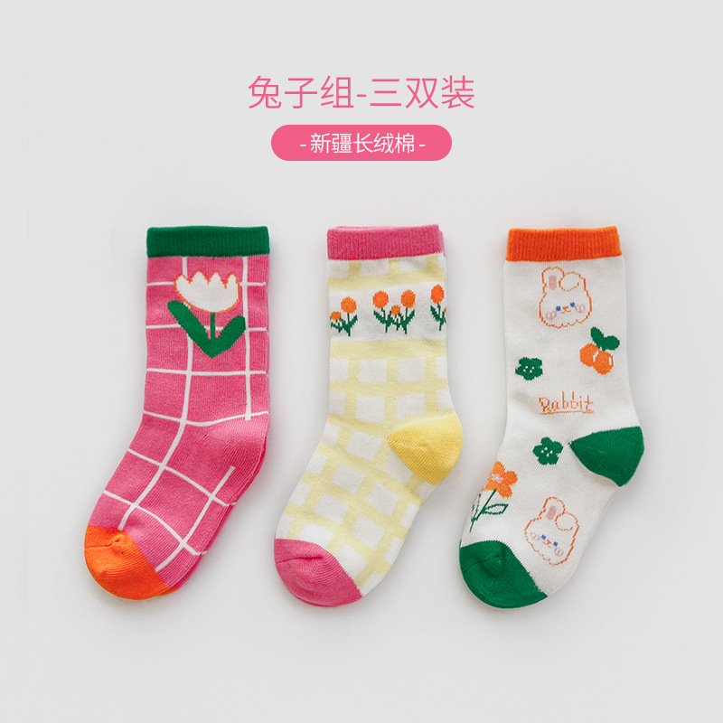 여아 양말 2023 어린이 양말 봄과 가을 중간 길이 양말 어린이 양말 어린 소녀 Qiubao 유행 양말스토어 가기
